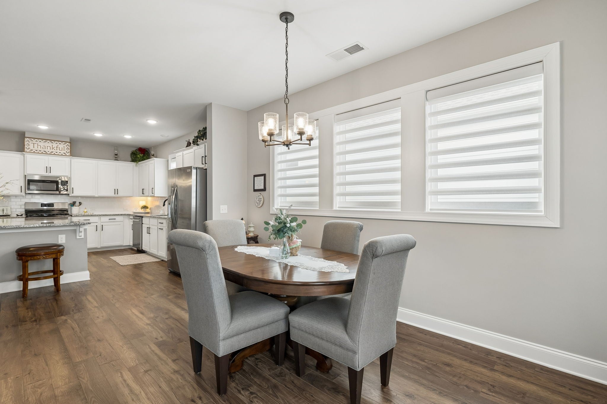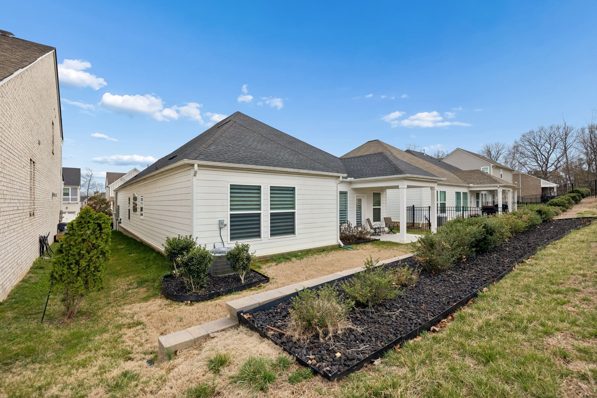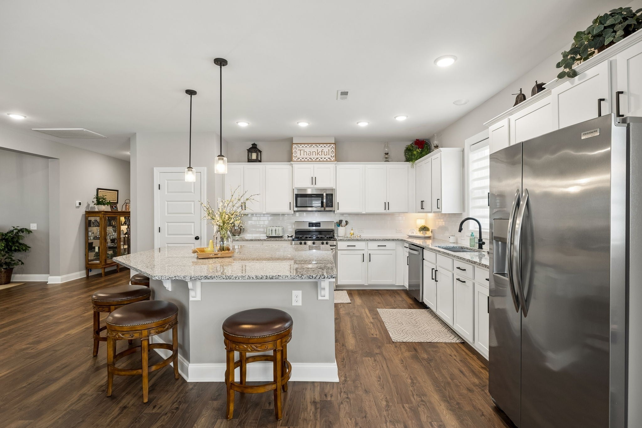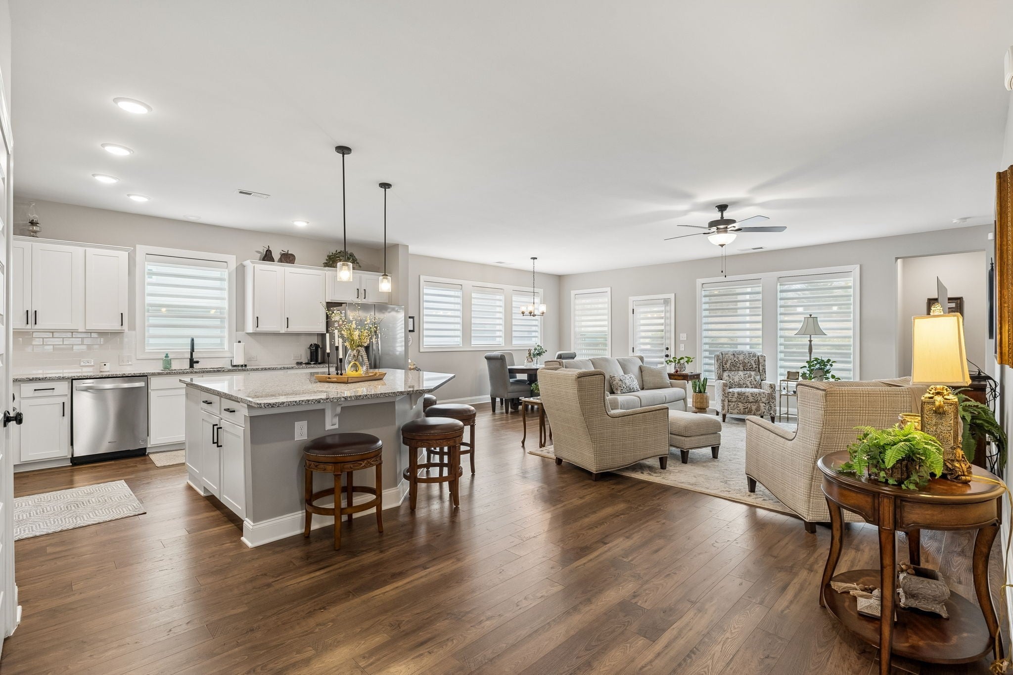 One Level Home on a quiet cul-de-sac in White House, TN (Reserve at Palmers Crossing) * 3 Bedrooms and 2 Full Bathrooms * Home is Immaculate * Split Bedroom Floorplan * Entry Foyer leads into a Spacious Kitchen/Dining/Living Area and Features the Chefs Kitchen with Recessed Lights, a Pantry, Granite Countertops, Tile Backsplash/White Cabinetry, Oversized Island, Pull Out Trashcan and adjoining Dining and Living Area with Hardwood Laminate Flooring, and Blinds on all Windows * Study in this home could be used as a Formal Dining Room * Primary Bedroom with Walk-In Closet and Private Bathroom (separate tub and shower and 2 sink vanity * Utility Room with Shelving * Blinds are throughout the home and are Hunter Douglas Blinds (motarization, pirouette) * Backpack Rack at Entry from Garage into House * 2 Car Garage, Garage Floor/Porches/Steps are sealed by Guardian Garage Floors * Driveway sealed by Forever Seal * Covered Porch on Front * Covered Patio on Back * Irrigation System in Front and Back Yards *