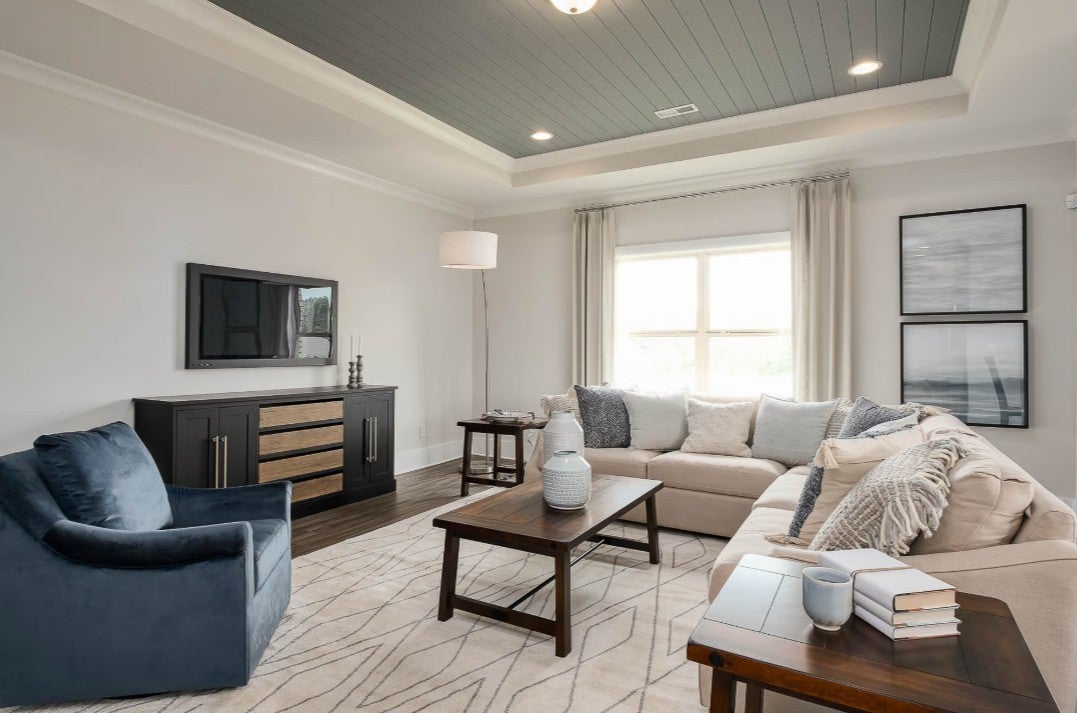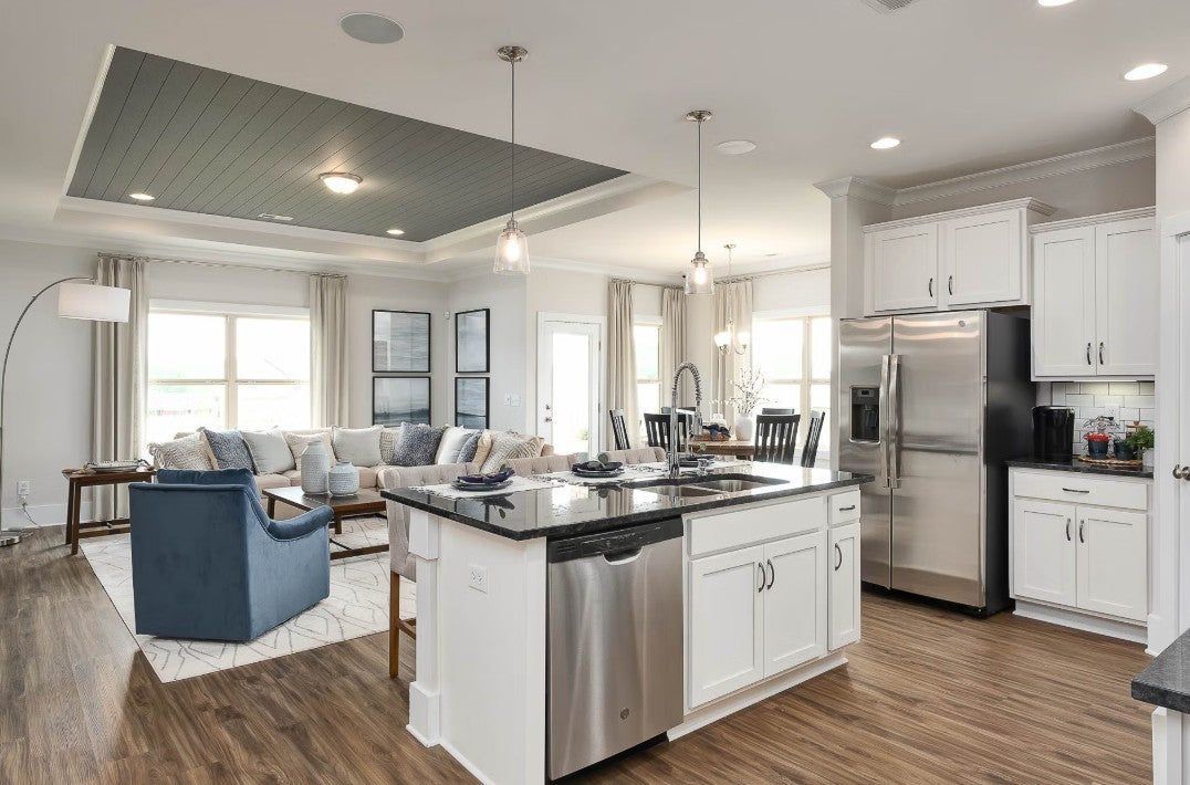 The Daphne Plan by Davidson Homes - A beautiful, all on one level, four - bedroom, three bath home with a flat lot and nine-foot ceilings. The open concept design features a chef's kitchen with a built-in microwave, stove and cooktop, along with a stylist kitchen hood and quartz countertops. Both the living room and primary suite boast tray ceilings, adding elegance to every corner. The spacious primary bath offers a large, tiled shower, and the homes is filled with recessed lighting. Nestle in a prime, central location, this home combines quality craftsmanship with modern elegance, this is truly a dream home!