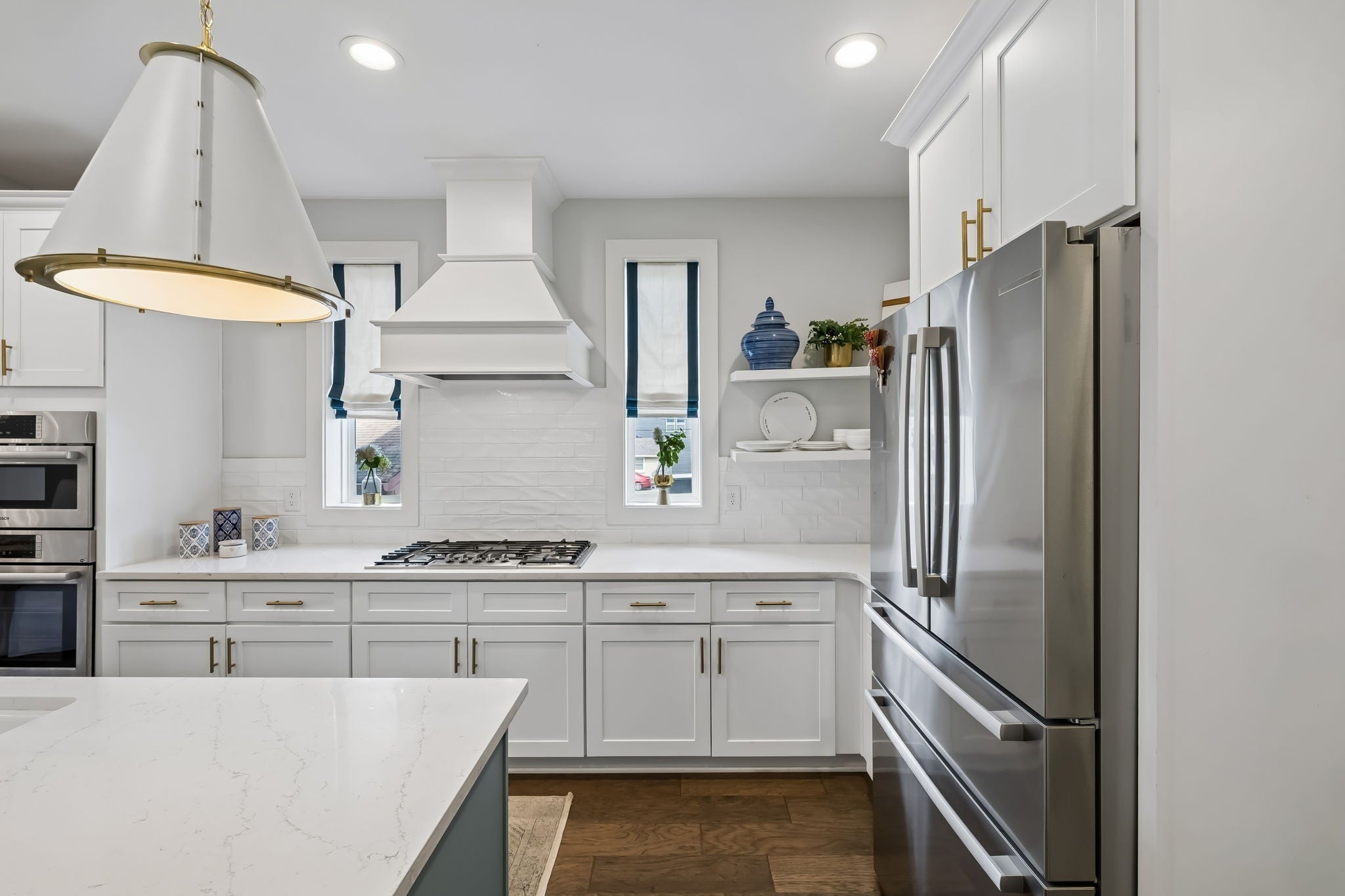 - Built-In Electric Oven, Gas Range, Dishwasher, Disposal, Dryer, Microwave, Refrigerator, Stainless Steel Appliance(s), Washer