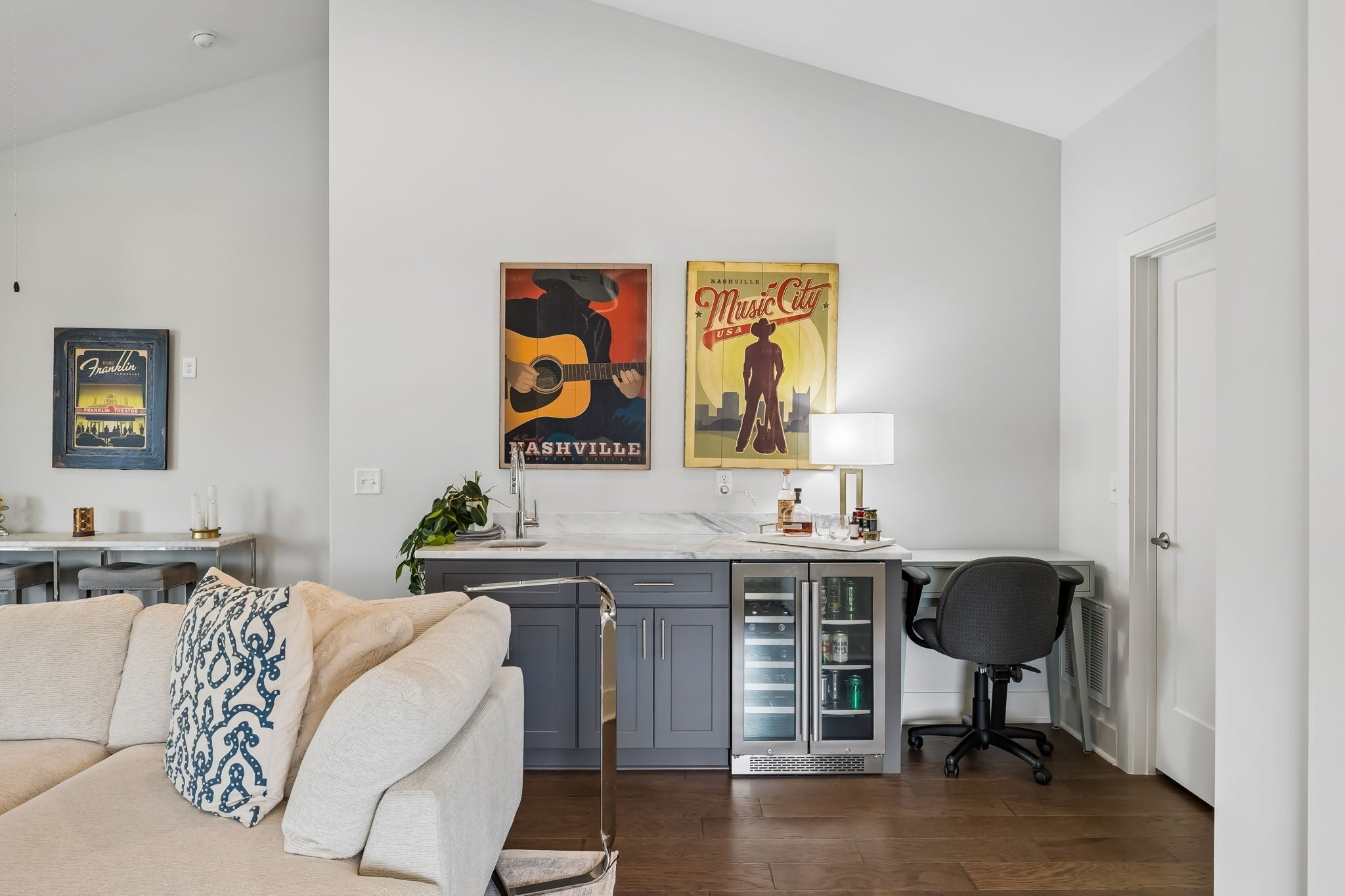 Discover the perfect blend of comfort, style, and location in this stunning 4-bedroom, 3.5-bath home in Nashville’s sought-after Edgehill community. Designed for modern living, this spacious residence features a 2-car attached garage equipped with a Tesla charger, additional storage space and additional parking space in driveway. Inside, you’ll find thoughtfully designed living spaces highlighted by high-end lighting, quartz countertops, stainless appliances, wood flooring throughout and a large pantry. Two beautiful fireplaces that create a warm, inviting atmosphere. The open layout flows effortlessly to two covered decks—perfect for relaxing, entertaining, or enjoying the Nashville skyline. The views are BREATHTAKING all year long! All three main bedrooms are located on the second level, along with a convenient laundry room. The primary suite offers a large bedroom, bath suite and walk in closet big enough for a cozy bench. All rooms have an abundance of natural light, with an airy feel, large closets, while the third bedroom also features impressive vaulted ceiling. The third floor includes a fourth bedroom/bonus a vaulted ceiling with a full bath, offering incredible flexibility—ideal as a home office, game room or media space. Situated in the heart of Edgehill, this home offers unbeatable walkability to Belmont University, downtown Nashville, 12 South, restaurants, shopping, and entertainment. Enjoy the convenience of city living while tucked inside one of Nashville’s most desirable neighborhoods. This is truly the perfect location to experience the best of Nashville living.