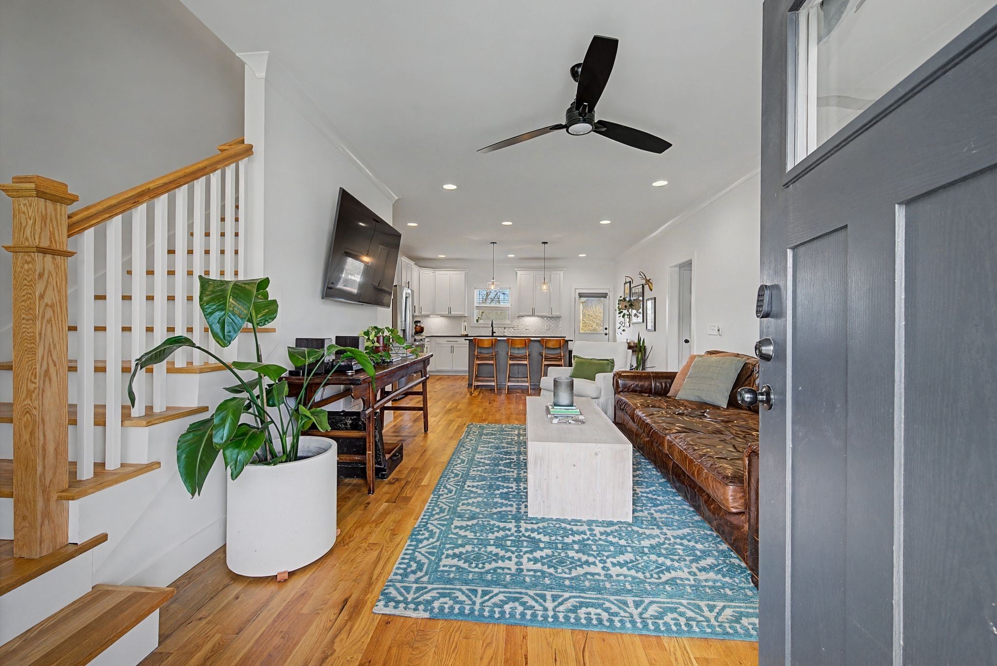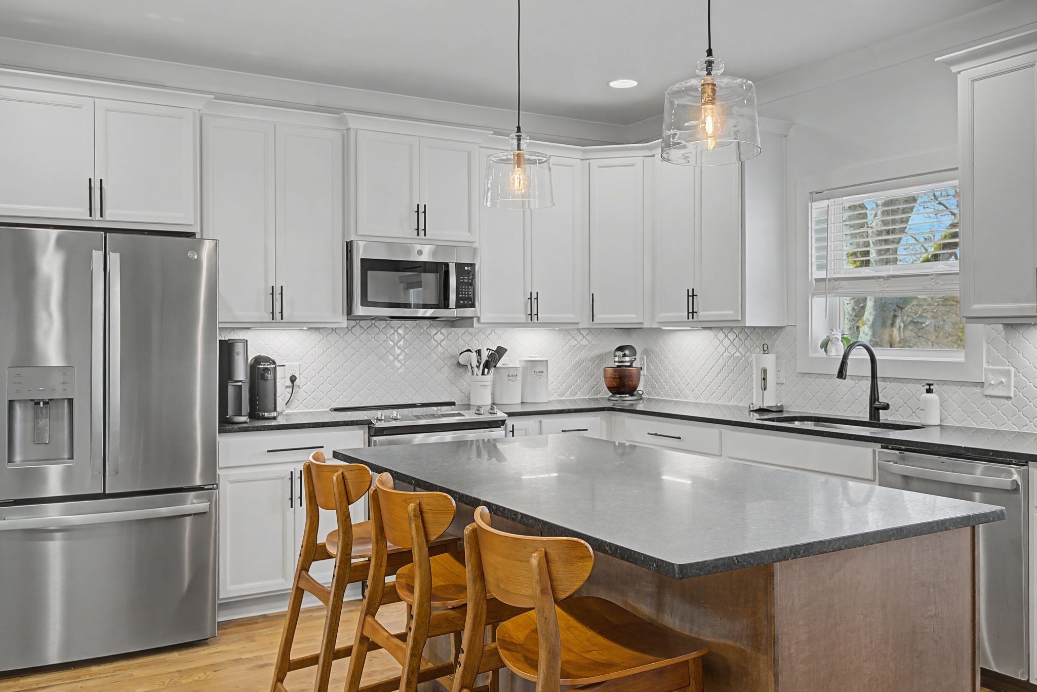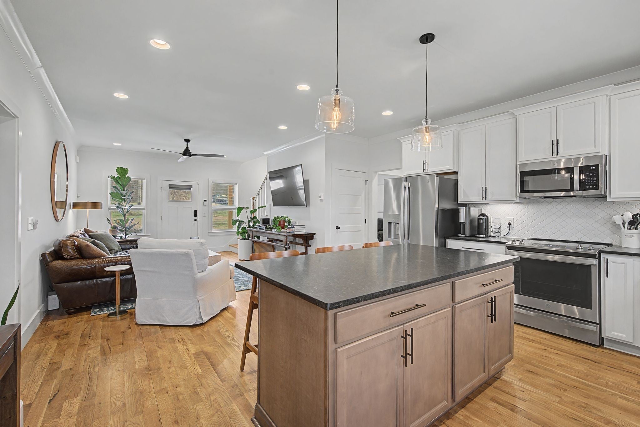 Discover the perfect harmony of modern sophistication and farmhouse charm in this stunning, two-year-old residence situated on an approximately .44-acre lot. Located less than 10 miles from the vibrant energy of downtown Nashville, this home offers a relaxed lifestyle with seamless access to Briley Parkway and the scenic beauty of the Whites Creek corridor. From the moment you pull up to the expansive parking area and step onto the inviting covered front porch, the quality of construction is evident, capped by a sleek and durable metal roof. The interior is a masterclass in clean, contemporary design, featuring sand & finish hardwood and tile flooring throughout, offering a completely carpet-free environment. Details like elegant crown moulding and custom 2" blinds enhance every room, while the designer eat-in kitchen serves as the home's true centerpiece. Here, quartz countertops and a classic ceramic tile backsplash complement a premium stainless steel appliance package. The main level is thoughtfully designed for longevity, anchored by a luxurious primary suite that rivals a high-end spa. You’ll enjoy a deep soaking tub, a separate custom tile shower, double vanities, and a massive custom walk-in closet. Uniquely, the main floor also hosts a second bedroom with direct access to a full bath, providing an ideal layout for guests. Upstairs, the footprint expands to include two additional spacious bedrooms and a versatile bonus room. Outside, your private oasis awaits. The full privacy-fenced backyard and deck offer the ultimate setting for entertaining. While you’ll feel worlds away from the city bustle, you are just minutes from local treasures like the Fontanel grounds and the hiking trails of Beaman Park. This is a rare opportunity to own a turnkey, high-condition home that captures the very best of Middle Tennessee living.