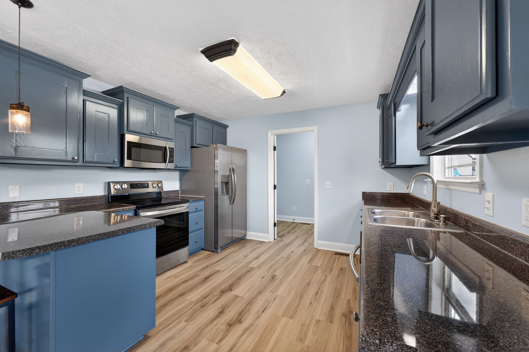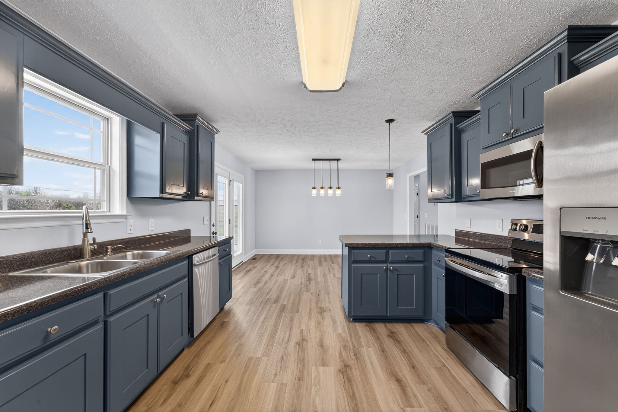 - Built-In Electric Oven, Built-In Electric Range, Dishwasher, Microwave, Refrigerator, Stainless Steel Appliance(s)