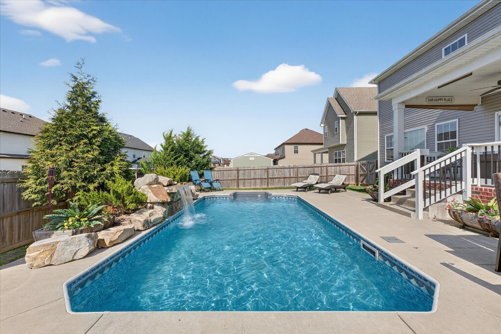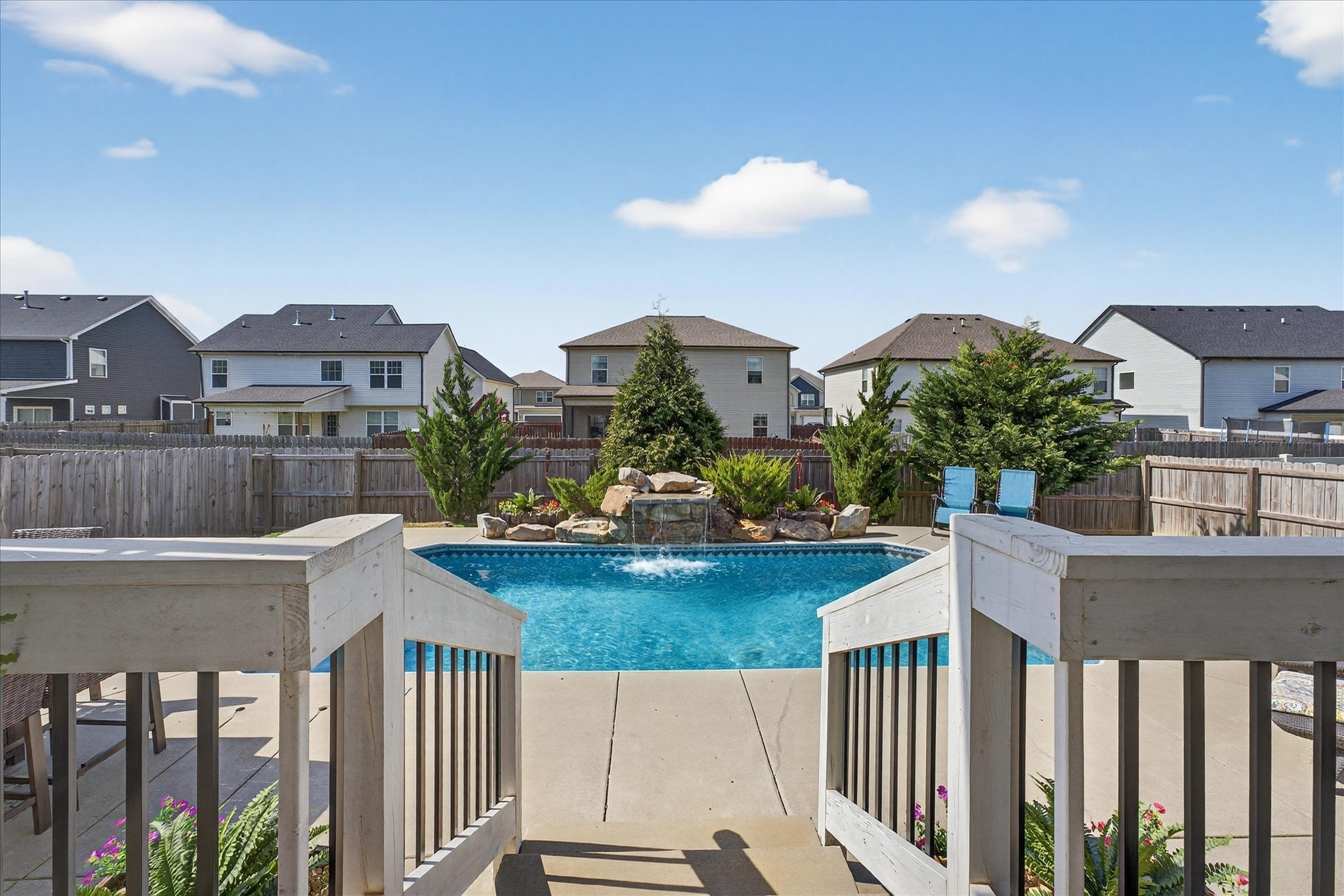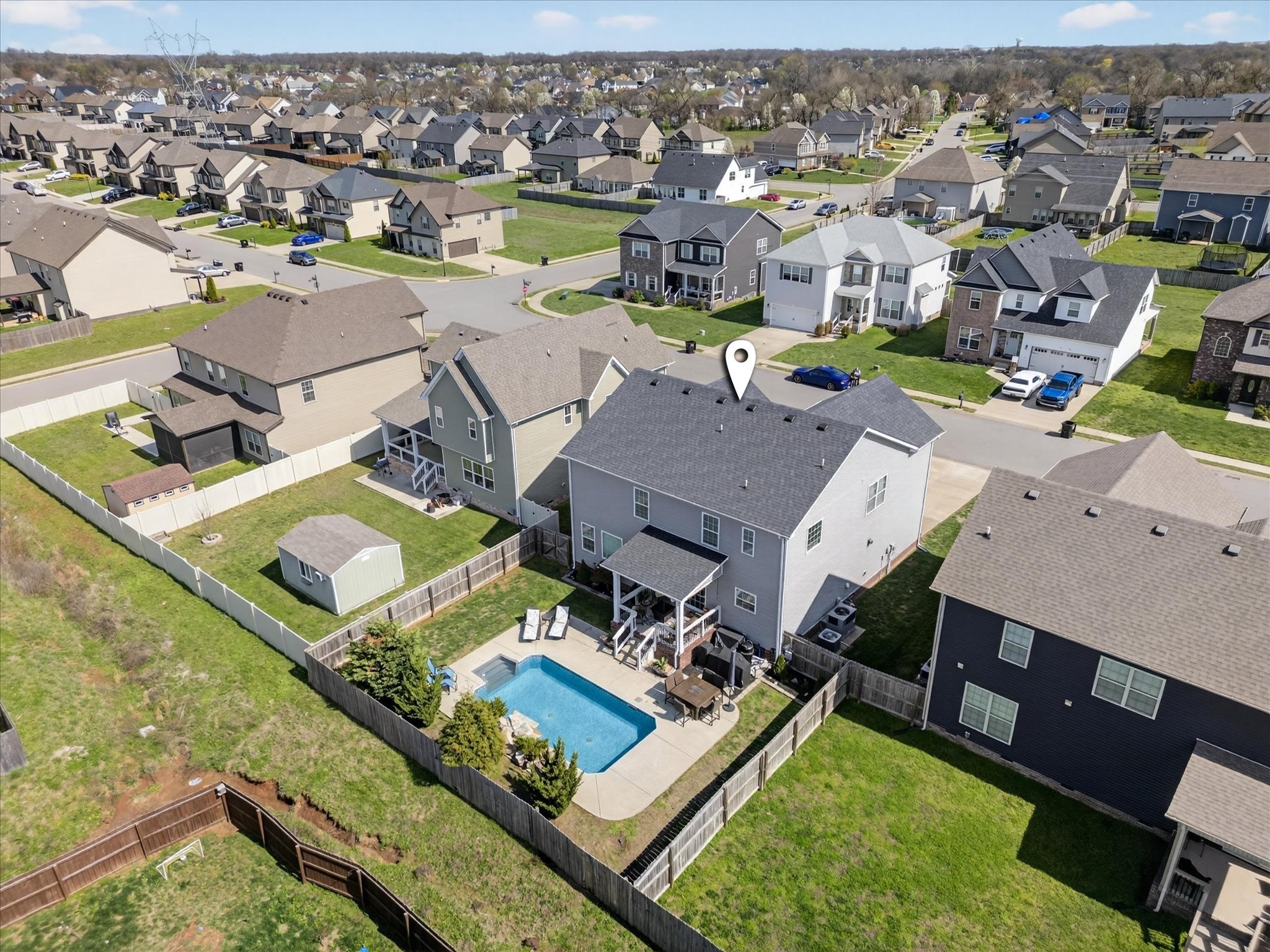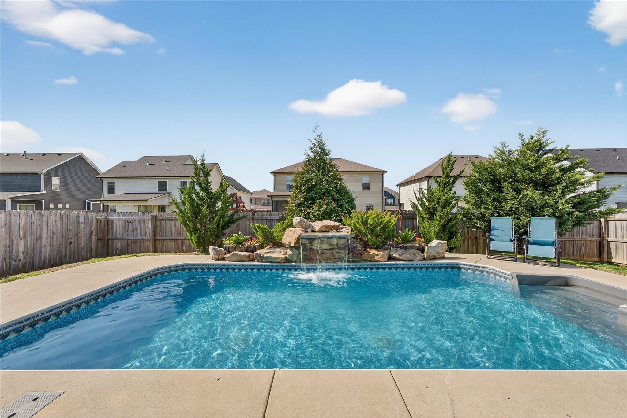 An immaculate 4-bedroom, 2.5-bath home that has been meticulously maintained and thoughtfully styled throughout. The open-concept layout offers comfortable everyday living and effortless entertaining. The kitchen features granite countertops, ample cabinetry, and a pantry, flowing seamlessly into the main living space. A versatile flex room on the main level provides the perfect setting for a formal dining room, home office, or additional sitting area, along with a mud room and walk-in utility room for added convenience. Upstairs, you’ll find a spacious bonus area and generously sized bedrooms—each with walk-in closets. The primary suite offers a peaceful retreat with dual walk-in closets, double vanities, and a separate tiled shower and soaking tub. Custom blinds throughout the home carry a lifetime warranty. Step outside to a covered patio overlooking a privacy-fenced backyard with an in-ground pool and custom-built waterfall feature—perfect for relaxing or entertaining. Located just minutes from Interstate 24, shopping, entertainment and other amenities. VA to VA assumable at 2.75% interest rate. Home warranty included and will transfer to the new homeowner at closing.