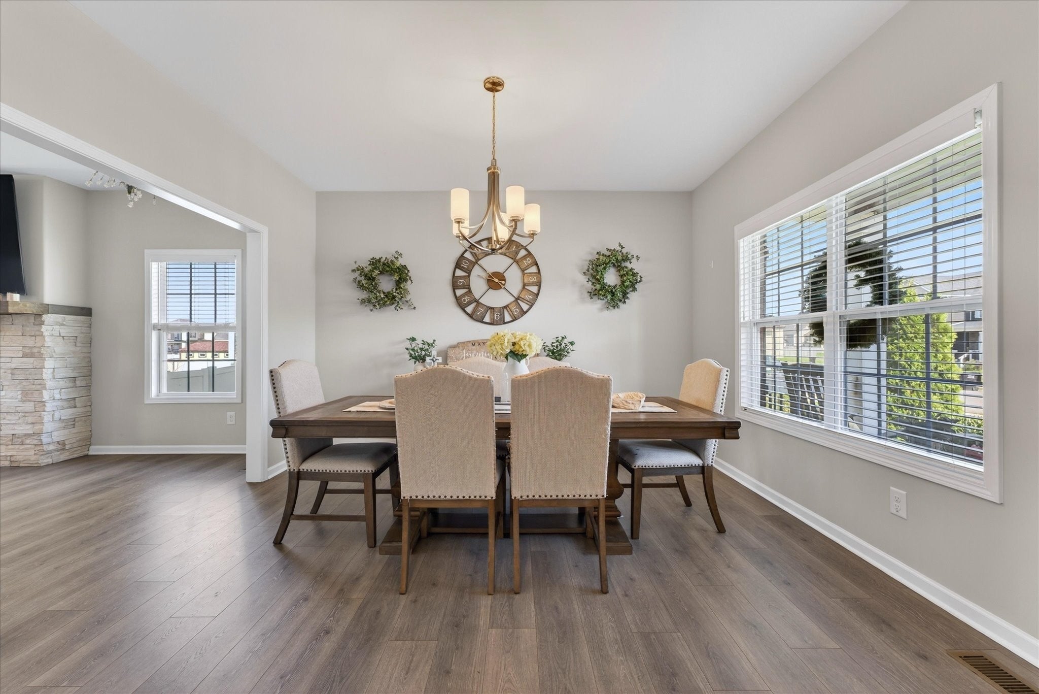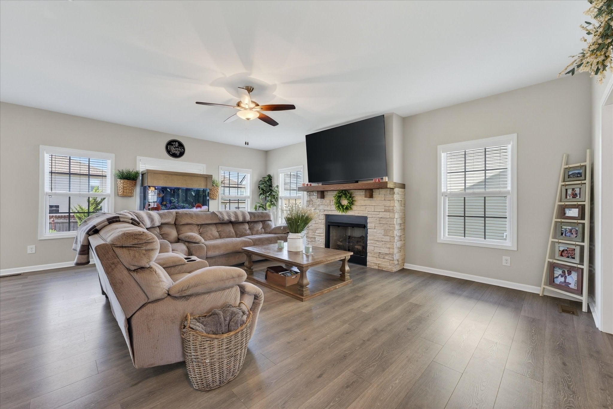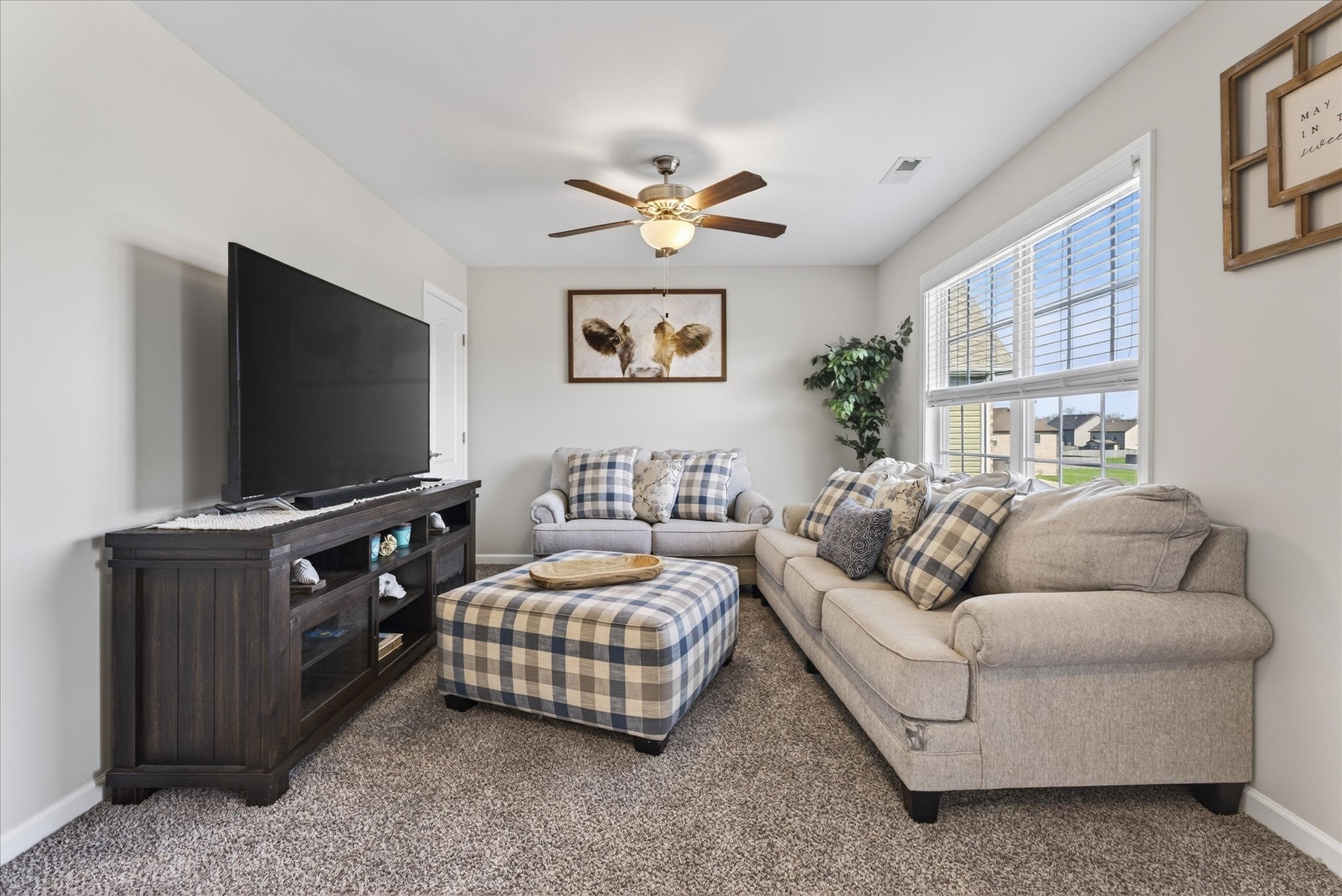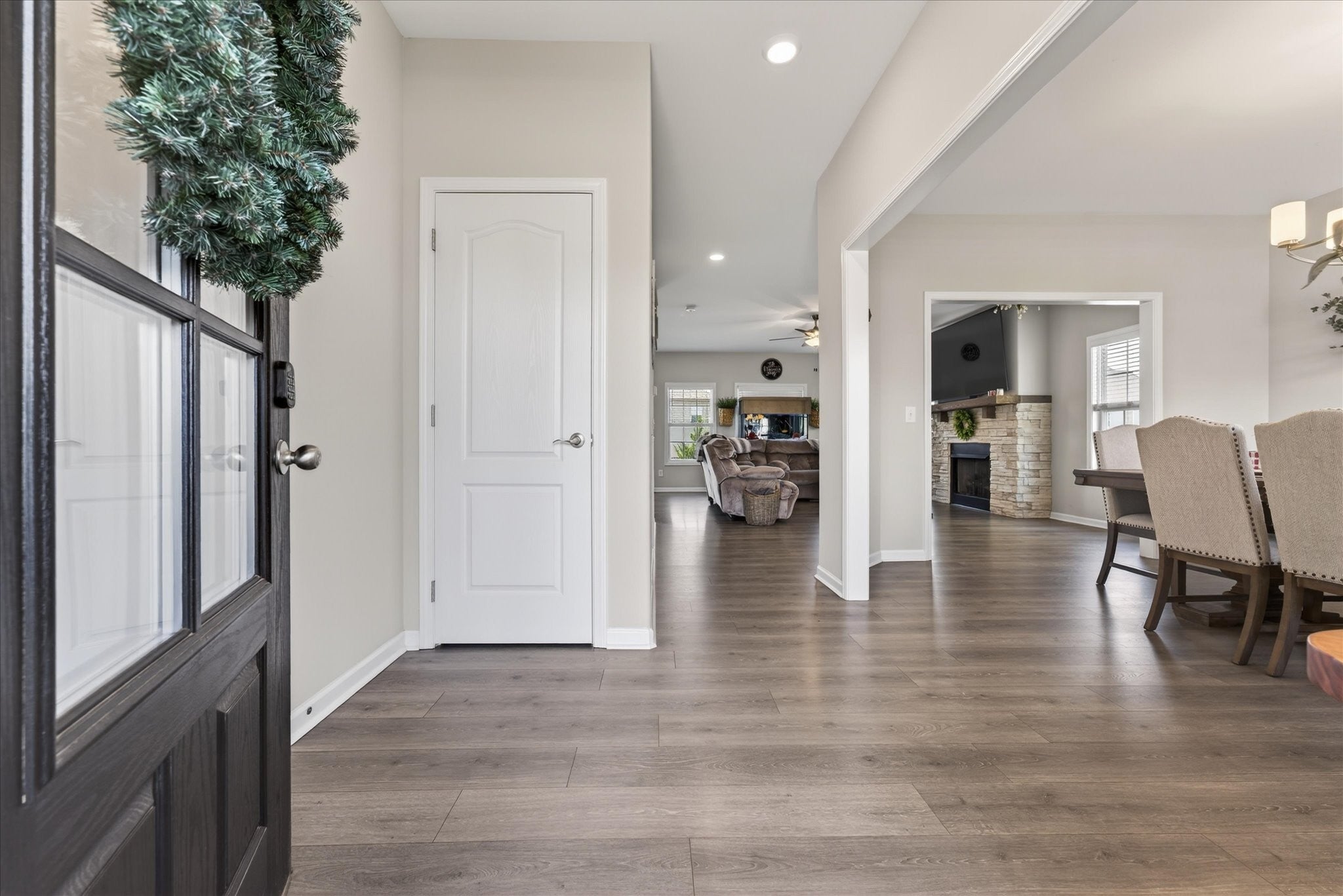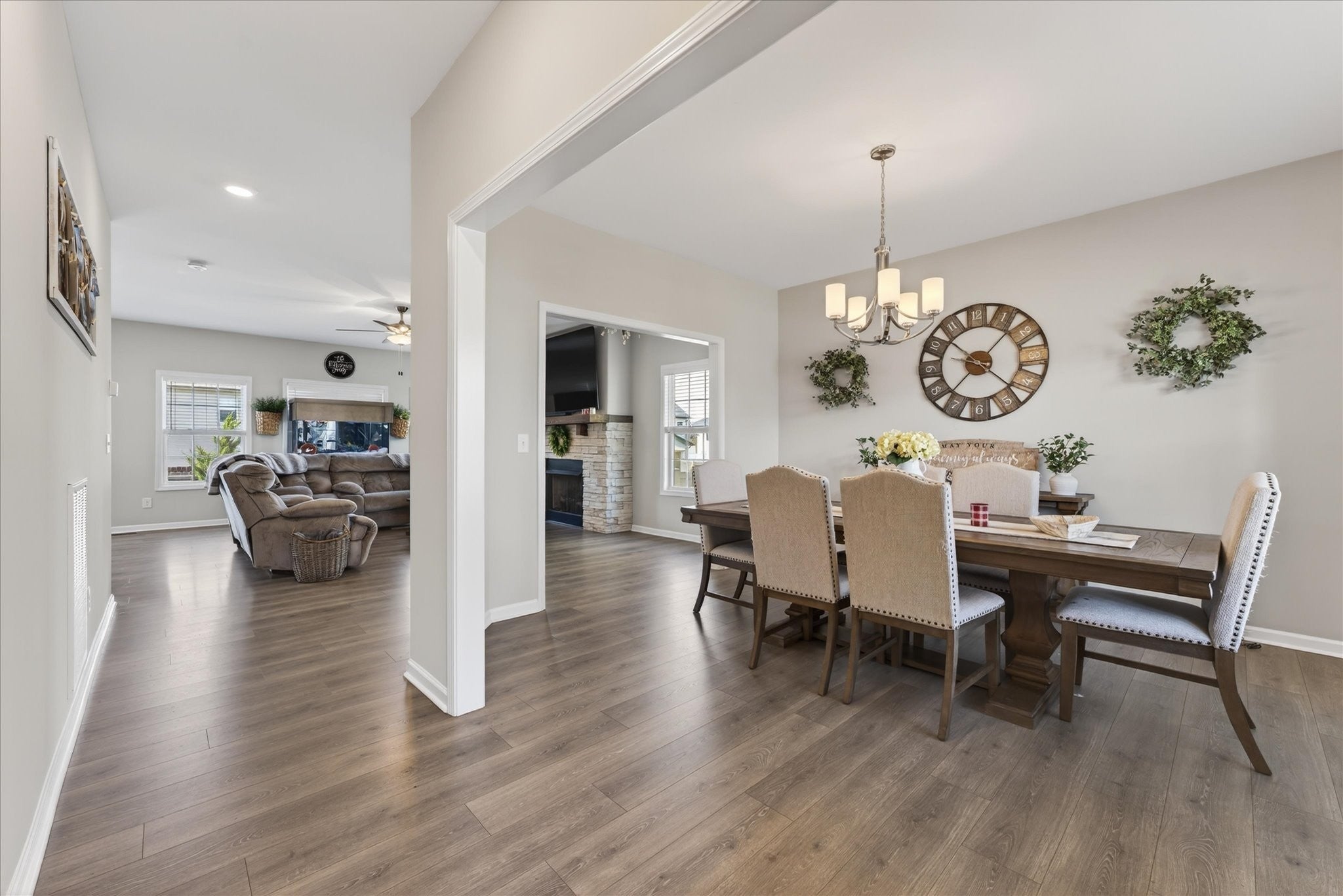 An immaculate 4-bedroom, 2.5-bath home that has been meticulously maintained and thoughtfully styled throughout. The open-concept layout offers comfortable everyday living and effortless entertaining. The kitchen features granite countertops, ample cabinetry, and a pantry, flowing seamlessly into the main living space. A versatile flex room on the main level provides the perfect setting for a formal dining room, home office, or additional sitting area, along with a mud room and walk-in utility room for added convenience. Upstairs, you’ll find a spacious bonus area and generously sized bedrooms—each with walk-in closets. The primary suite offers a peaceful retreat with dual walk-in closets, double vanities, and a separate tiled shower and soaking tub. Custom blinds throughout the home carry a lifetime warranty. Step outside to a covered patio overlooking a privacy-fenced backyard with an in-ground pool and custom-built waterfall feature—perfect for relaxing or entertaining. Located just minutes from Interstate 24, shopping, entertainment and other amenities. VA to VA assumable at 2.75% interest rate. Home warranty included and will transfer to the new homeowner at closing.