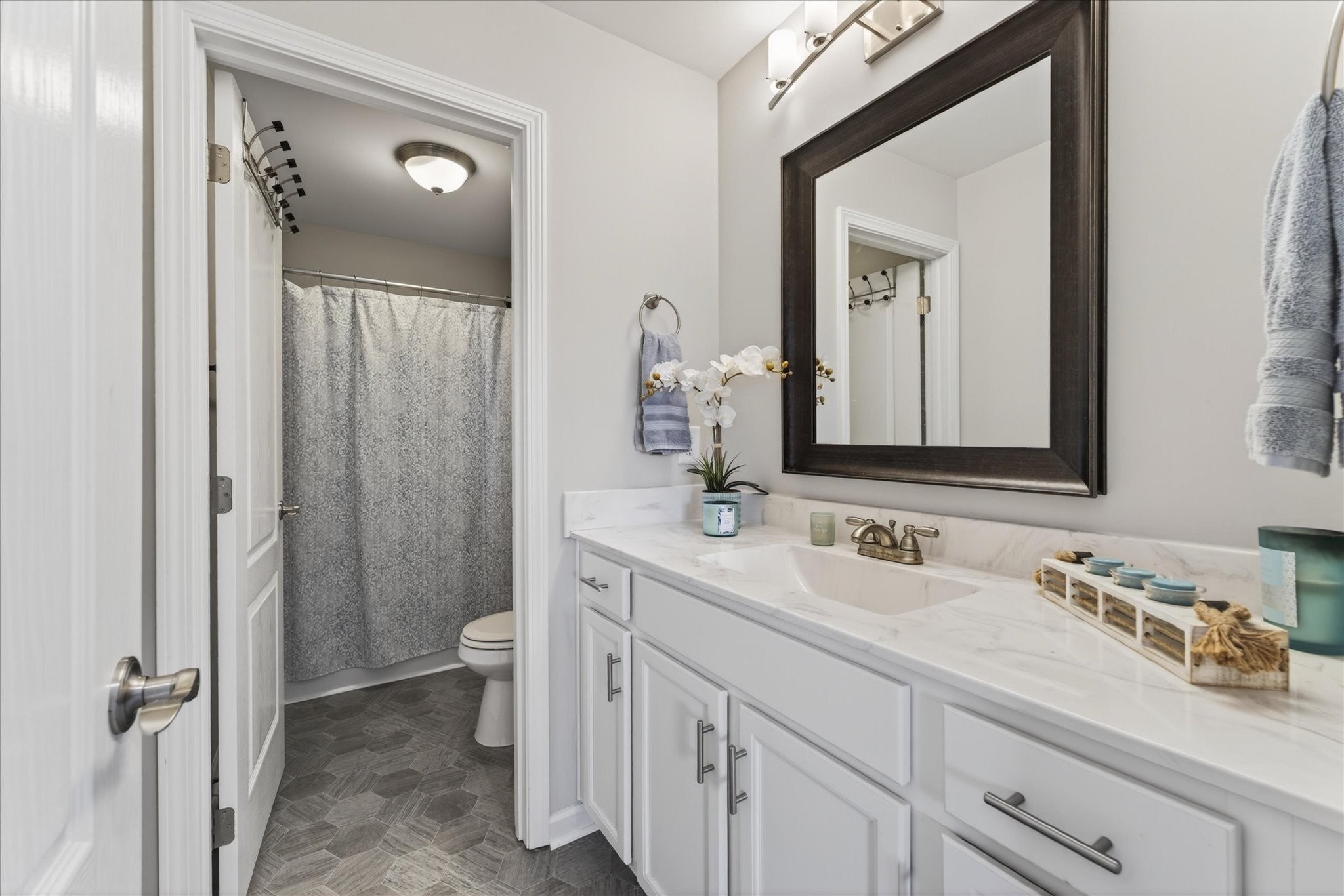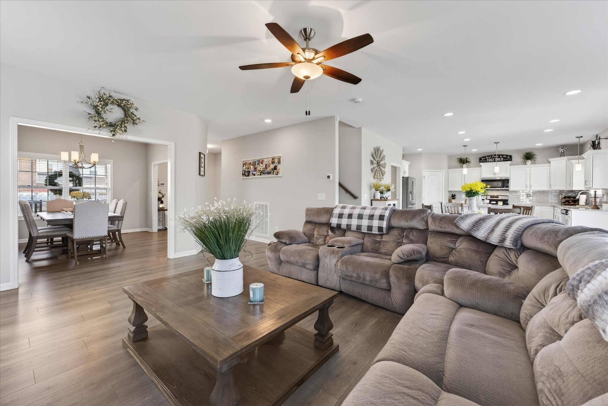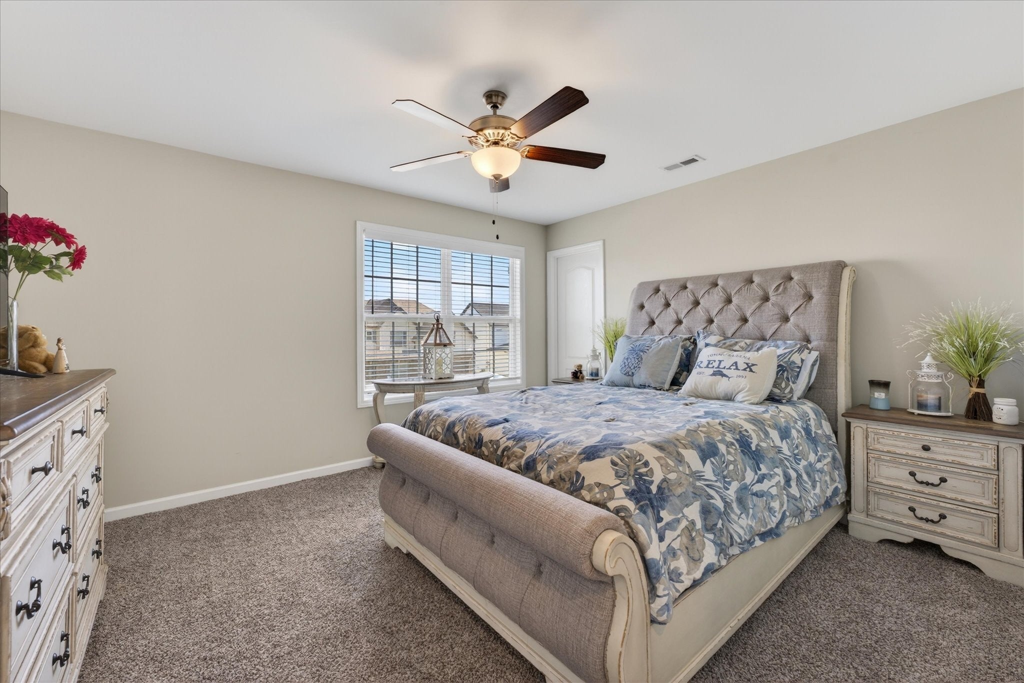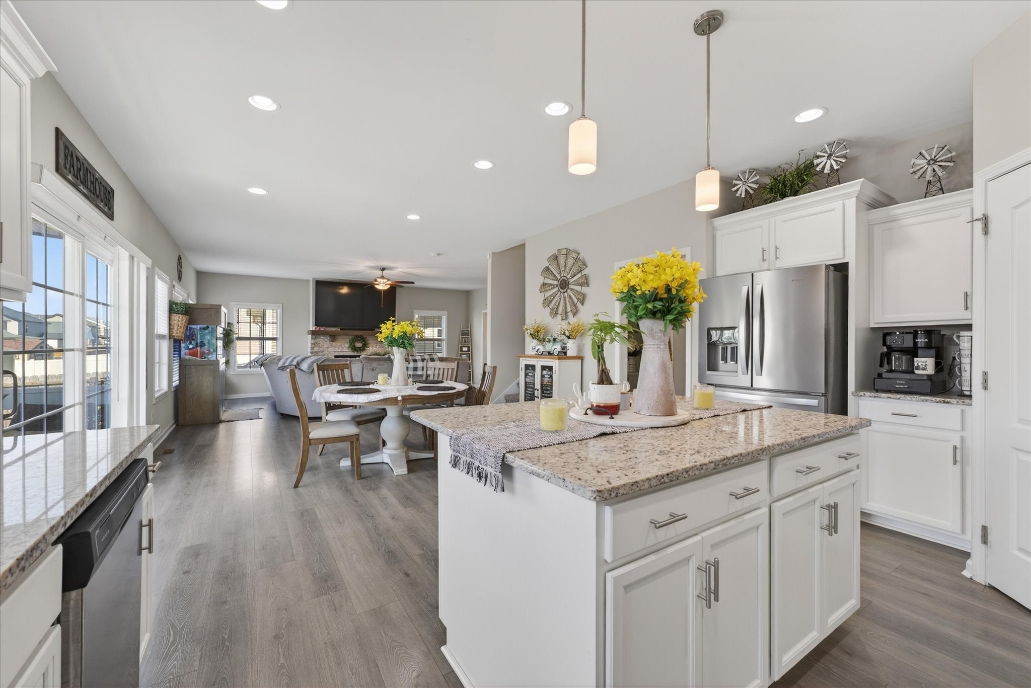 An immaculate 4-bedroom, 2.5-bath home that has been meticulously maintained and thoughtfully styled throughout. The open-concept layout offers comfortable everyday living and effortless entertaining. The kitchen features granite countertops, ample cabinetry, and a pantry, flowing seamlessly into the main living space. A versatile flex room on the main level provides the perfect setting for a formal dining room, home office, or additional sitting area, along with a mud room and walk-in utility room for added convenience. Upstairs, you’ll find a spacious bonus area and generously sized bedrooms—each with walk-in closets. The primary suite offers a peaceful retreat with dual walk-in closets, double vanities, and a separate tiled shower and soaking tub. Custom blinds throughout the home carry a lifetime warranty. Step outside to a covered patio overlooking a privacy-fenced backyard with an in-ground pool and custom-built waterfall feature—perfect for relaxing or entertaining. Located just minutes from Interstate 24, shopping, entertainment and other amenities. VA to VA assumable at 2.75% interest rate. Home warranty included and will transfer to the new homeowner at closing.