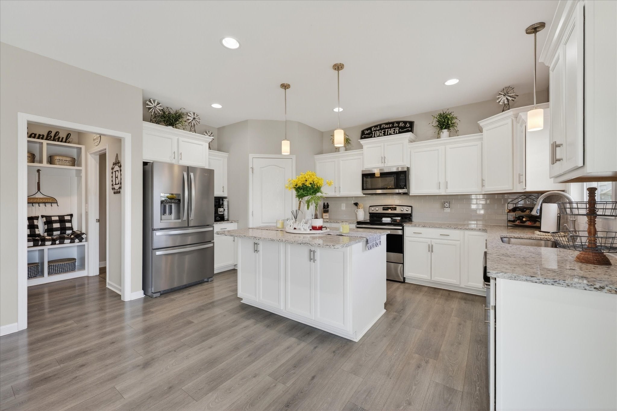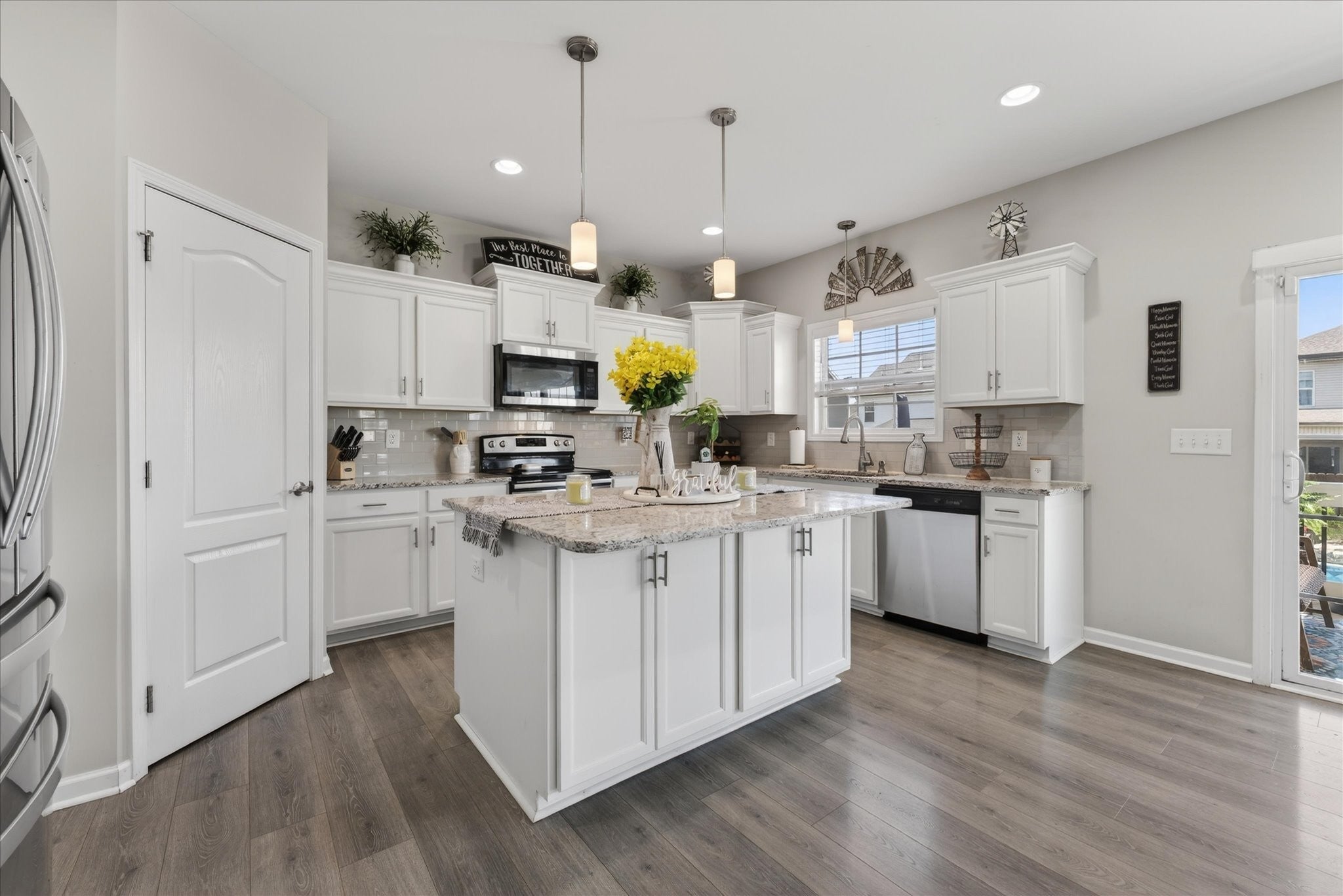 - Electric Oven, Cooktop, Dishwasher, Disposal, Microwave, Refrigerator, Stainless Steel Appliance(s)