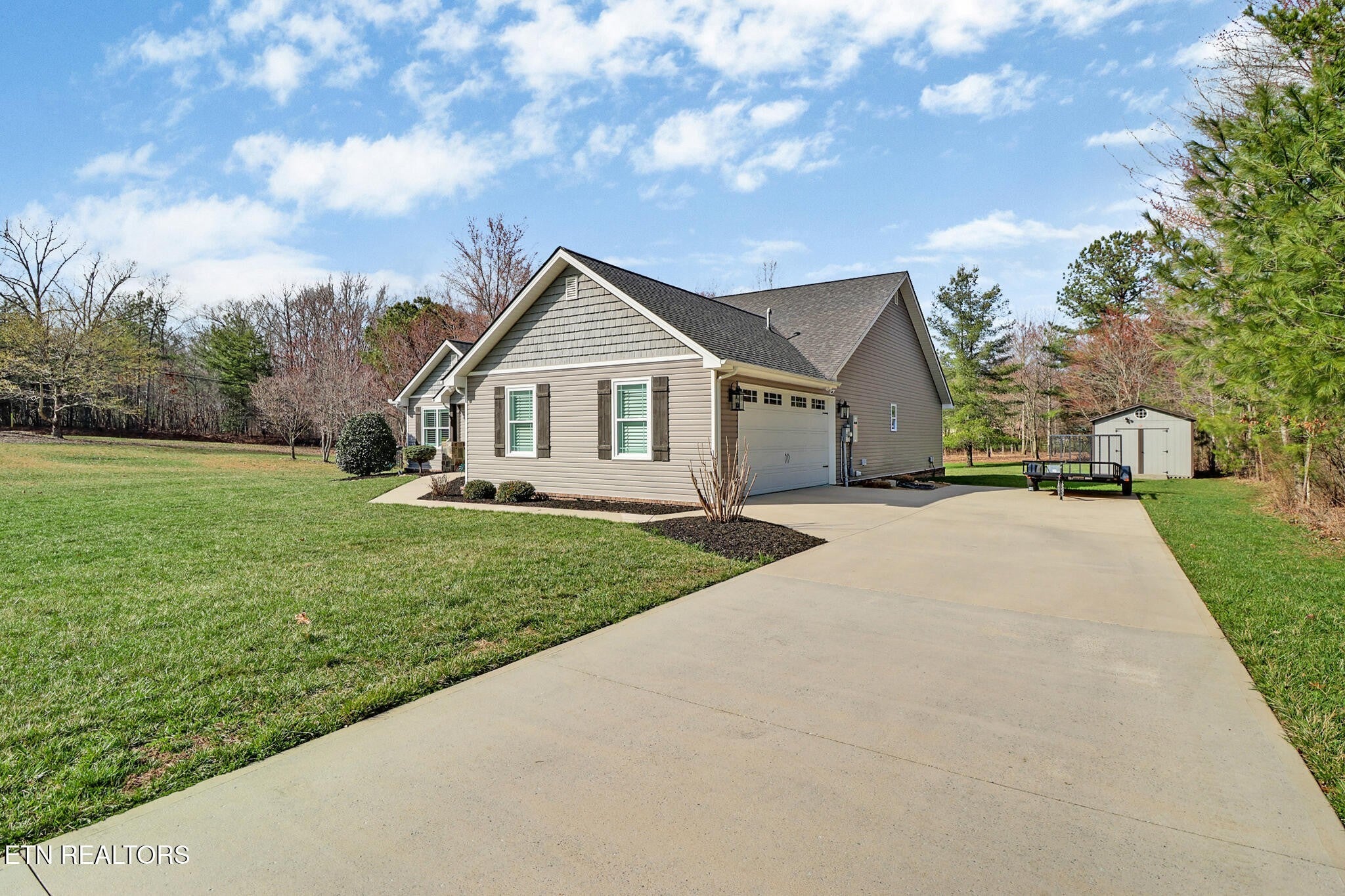 Beautiful home in great location! This well-maintained 3-bedroom, 2-bath property sits on a spacious double lot totaling approximately 2 acres and offers numerous upgrades, including hardwood and tile flooring throughout, Andersen windows, Trane HVAC, a tankless water heater, encapsulated crawl space, whole-home Generac generator, and a water purification system for added comfort and peace of mind. The open-concept kitchen and great room feature vaulted ceilings, a beautiful stone fireplace with gas logs, white shaker cabinetry, quartzite countertops, Maytag stainless steel appliances, two oversized pantries, and a spacious breakfast area. The master suite offers plenty of room to relax and includes tray ceilings, dual vanities, a large walk-in tile shower, and an expansive walk-in closet with abundant storage. The two additional bedrooms are generously sized at 12x14 and both feature walk-in closets. Just off the foyer, a versatile 14x12 flex room can serve as a formal dining room or a spacious home office. The laundry room also provides ample space along with cabinets for additional storage. Additional highlights include an oversized attached garage, covered porch and deck, concrete driveway and sidewalks, and an outbuilding that offers extra storage or workspace. This exceptional property in the desirable West Creek community is a must see! (Buyer to verify all information before making an informed offer.)