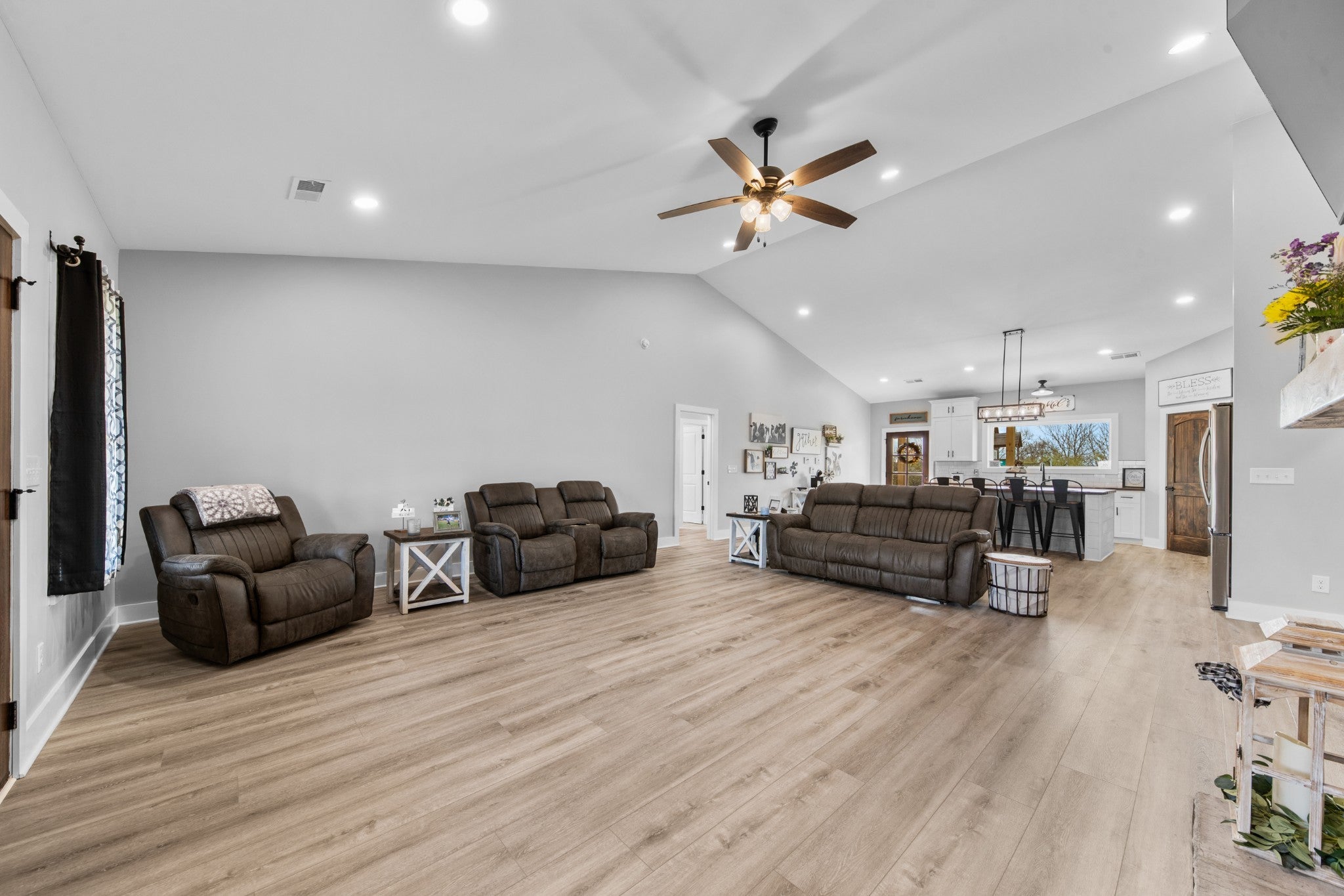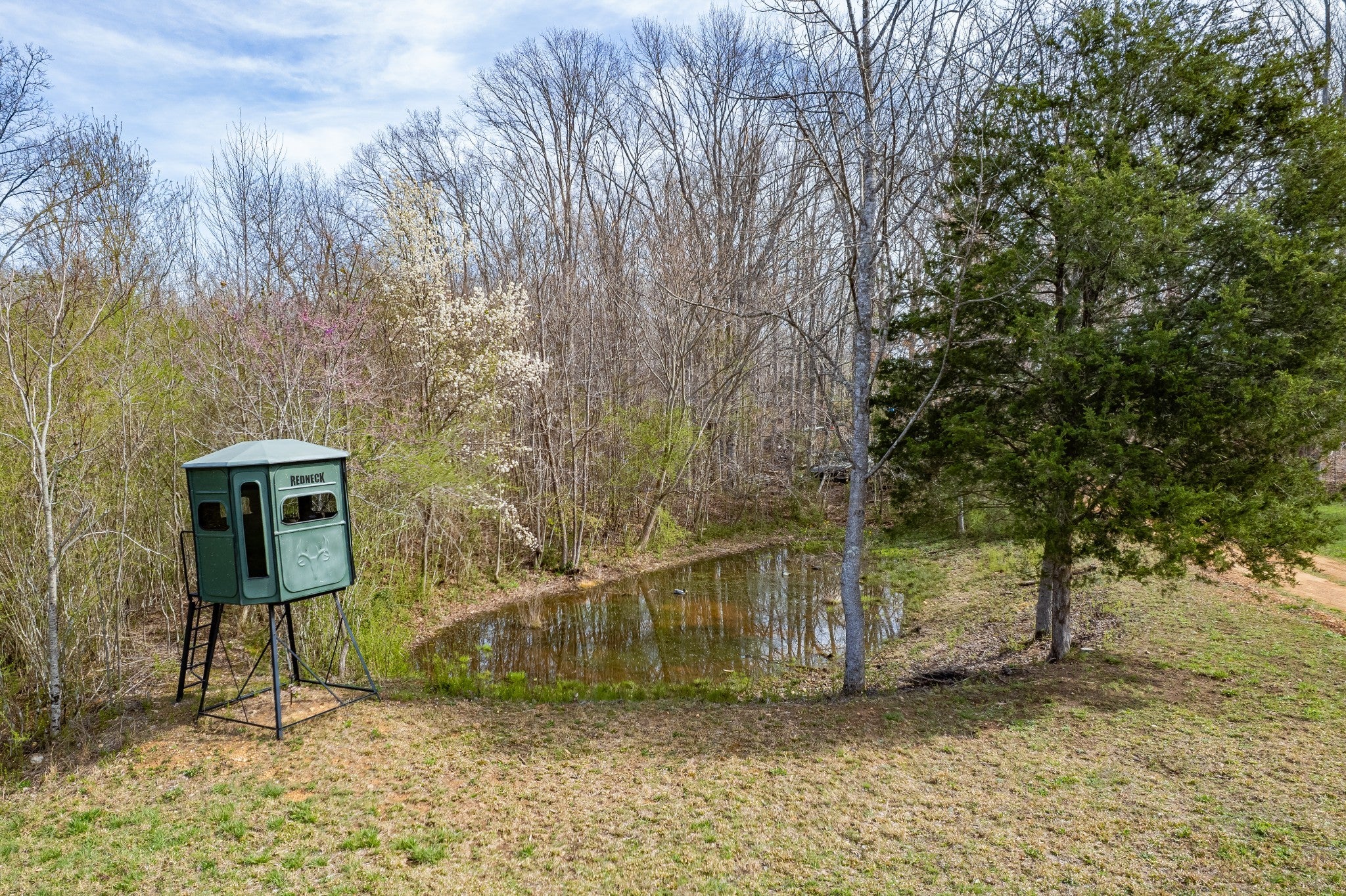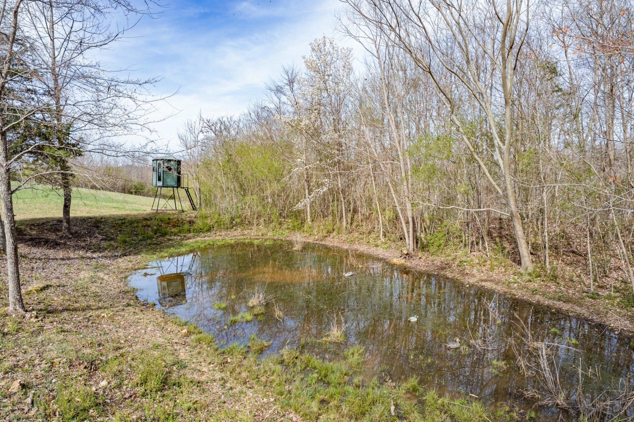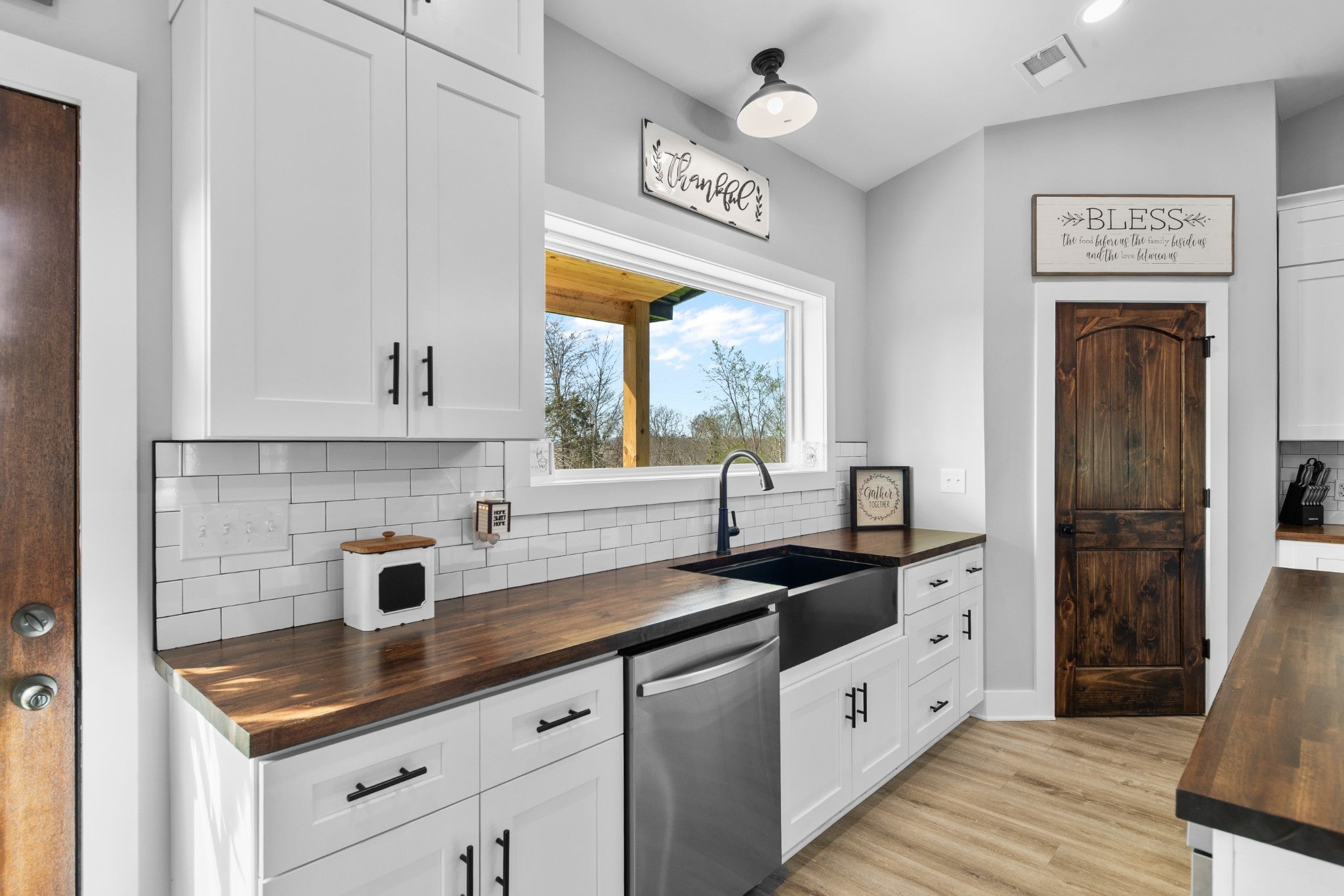 Scenic & Secluded Sanctuary overlooking Centerville! Welcome Home to this beautifully built 2,000 sq ft Farmhouse style 3bdrm/2bath BARNDO on 45.23 Acres w/Detached Garage. This home blends rustic charm with laid-back country living. Perched high above the scenic Duck River and overlooking the timeless Town of Centerville, TN. This tract offers Plenty of Open Field for Farming or Furbabies, yet surrounded by Heavily Wooded Rolling Terrain. Imagine winding past the pond, and down the driveway to your Perfect Getaway called “HOME”! Step into the open great room with vaulted ceilings and a stunning shiplap and stone fireplace wrapped in a heavy beam mantle. The kitchen is straight out of a farmhouse dream with shaker-style white cabinetry, butcher block countertops, subway tile backsplash, Stainless Steel Appliances, a bold black built-in range hood, and a shiplap-accented island. A walk-in pantry with a stained pine door adds warmth and character. The spacious primary suite offers a walk-in closet and a beautifully tiled shower with subway tile walls and glass door. Granite countertops, shaker cabinetry, and durable LVP flooring throughout the home keep things both stylish and practical. Outside is where this one really shines…Enjoy a 500 sq ft covered front porch with tongue-and-groove ceiling, gorgeous stone accents, a spacious covered back porch, and a wide-open concrete patio breezeway connecting to the 1,200 sq ft detached 2-car garage. This property allows you room to spread out and enjoy true country living.
