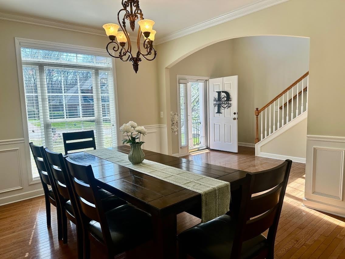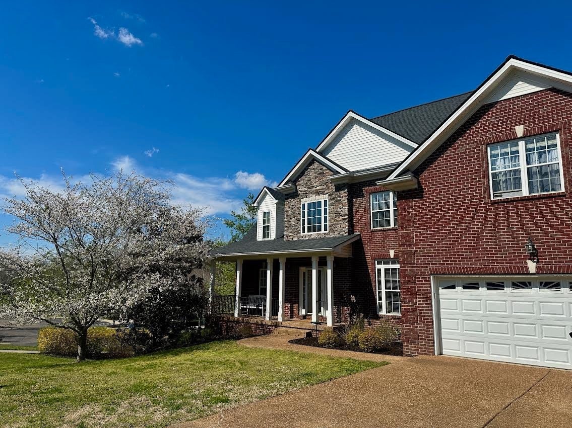 Rare find!! Beautiful Home in sought-after Mansker Farms. Open design, 5 bedrooms with master and guest bdrm on main level. Two family rooms...20' high ceilings..Appox 2,000 of unfinished daylight basement with windows (Could be in-law apt) already plumbed for future bath....huge deck overlooking the woods...patio...lg. garage with wheel chair entrance...covered porch....separate dining room....beautiful hardwoods....Clubhouse next door with all the amenities.