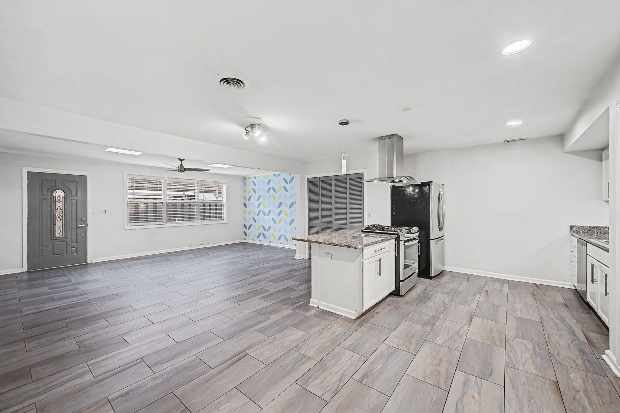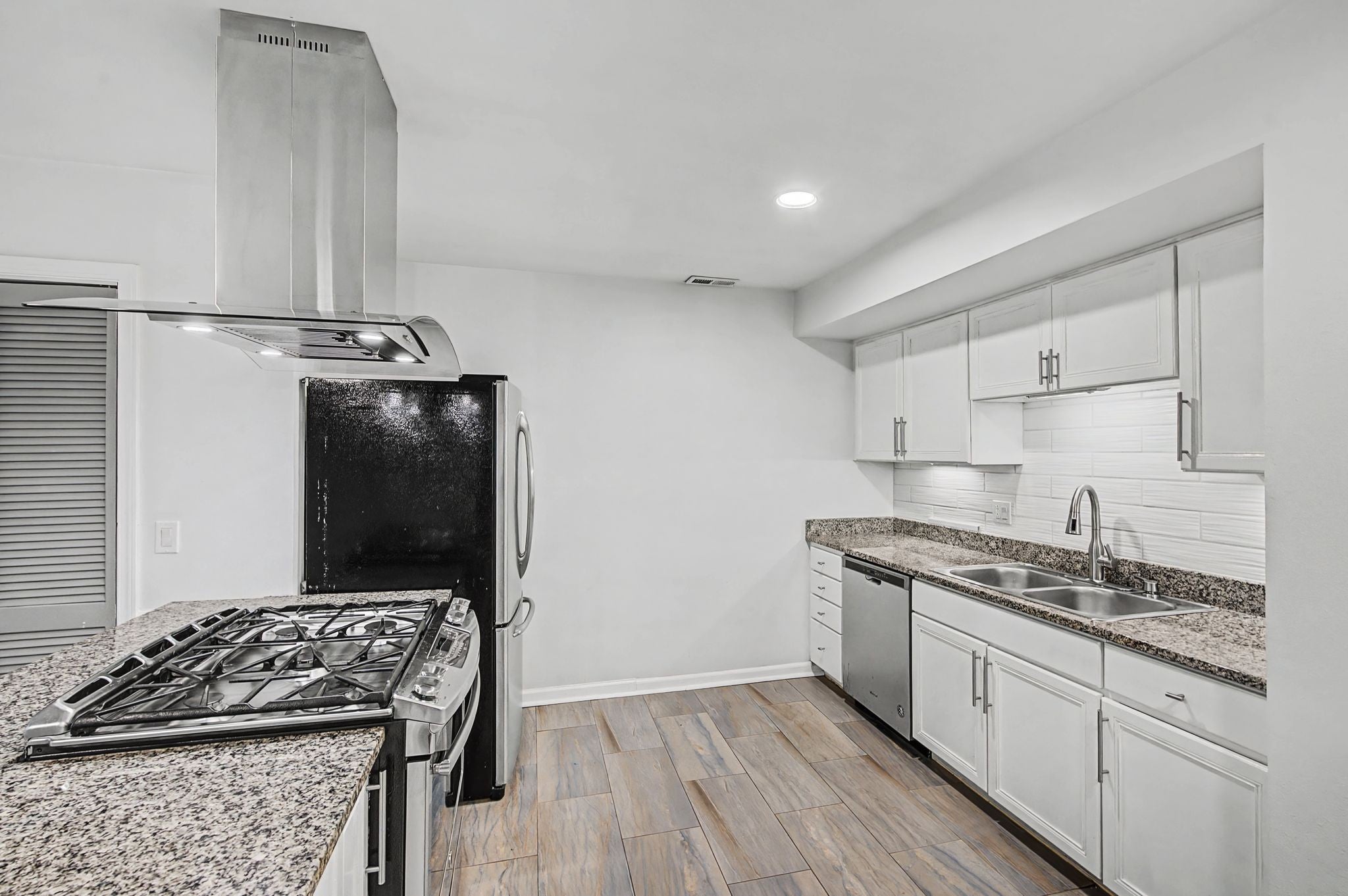 - Gas Range, Dishwasher, Refrigerator, Stainless Steel Appliance(s)