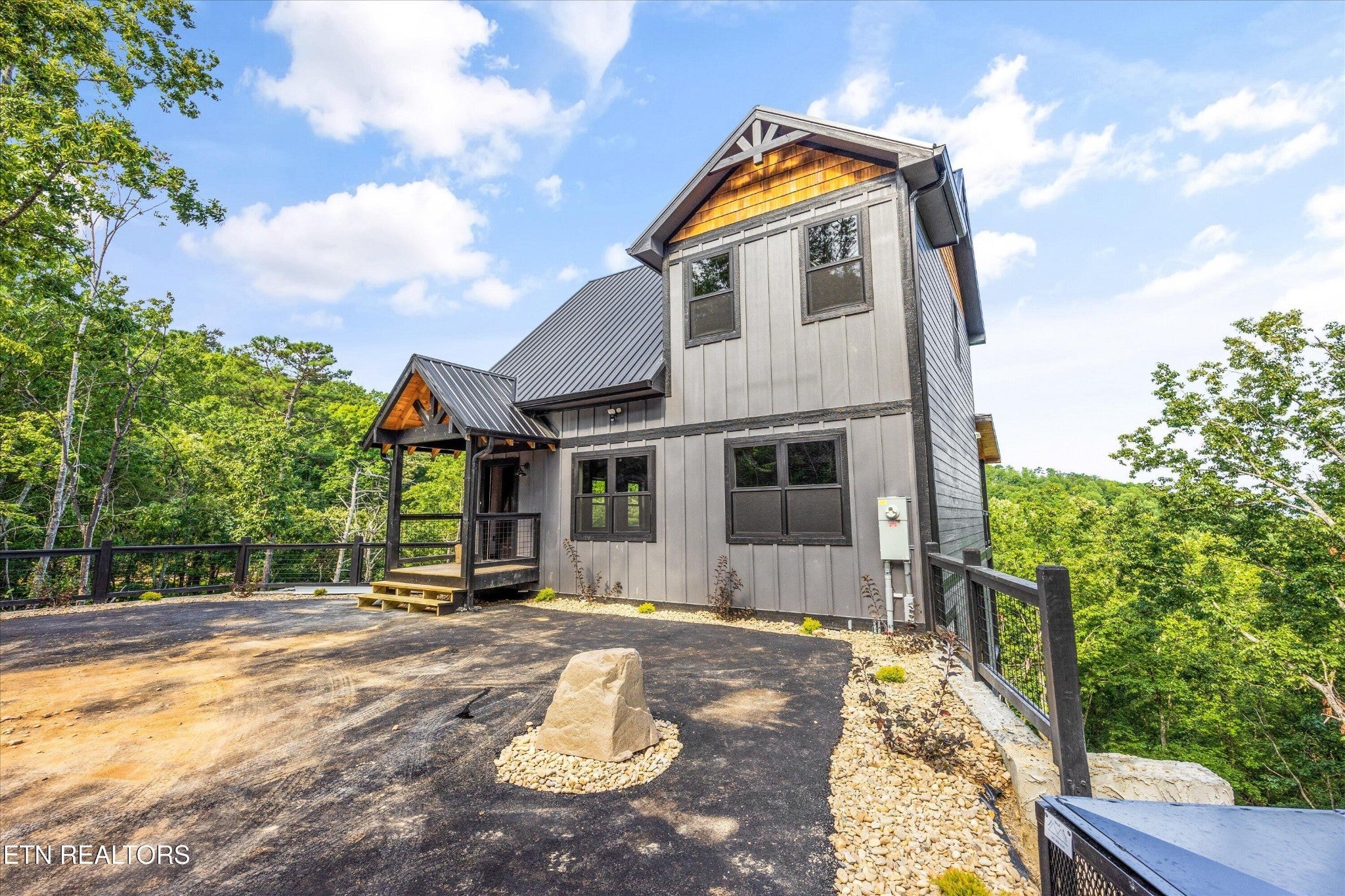 Brand-new and beautifully designed, this modern three-story cabin in the gated Shagbark community offers both style and comfort with stunning mountain views as your backdrop. Each floor of this thoughtfully planned cabin features its own private bedroom, creating the perfect layout for guests to spread out while still enjoying shared spaces together. The open-concept living area is warm and inviting, with modern finishes that complement the natural surroundings. Floor-to-ceiling windows frame the mountain views, filling the cabin with natural light. Set in Shagbark, one of the Smokies' most sought-after communities, this property blends privacy, security, and convenience. The gated entrance, serene wooded setting, and breathtaking vistas make it an ideal retreat. To make the property completely turnkey, the sellers are offering a $25,000 allowance for you to furnish the cabin to your style and needs. This gives you the flexibility to create the perfect retreat, whether for personal use or short-term rental guests. Whether you're looking for a private mountain getaway or an investment property with strong rental appeal, this brand-new modern cabin checks every box. With its three levels of living space, private bedrooms, unforgettable mountain views, and furnishing allowance, it's a rare opportunity to own a fresh piece of the Smokies.