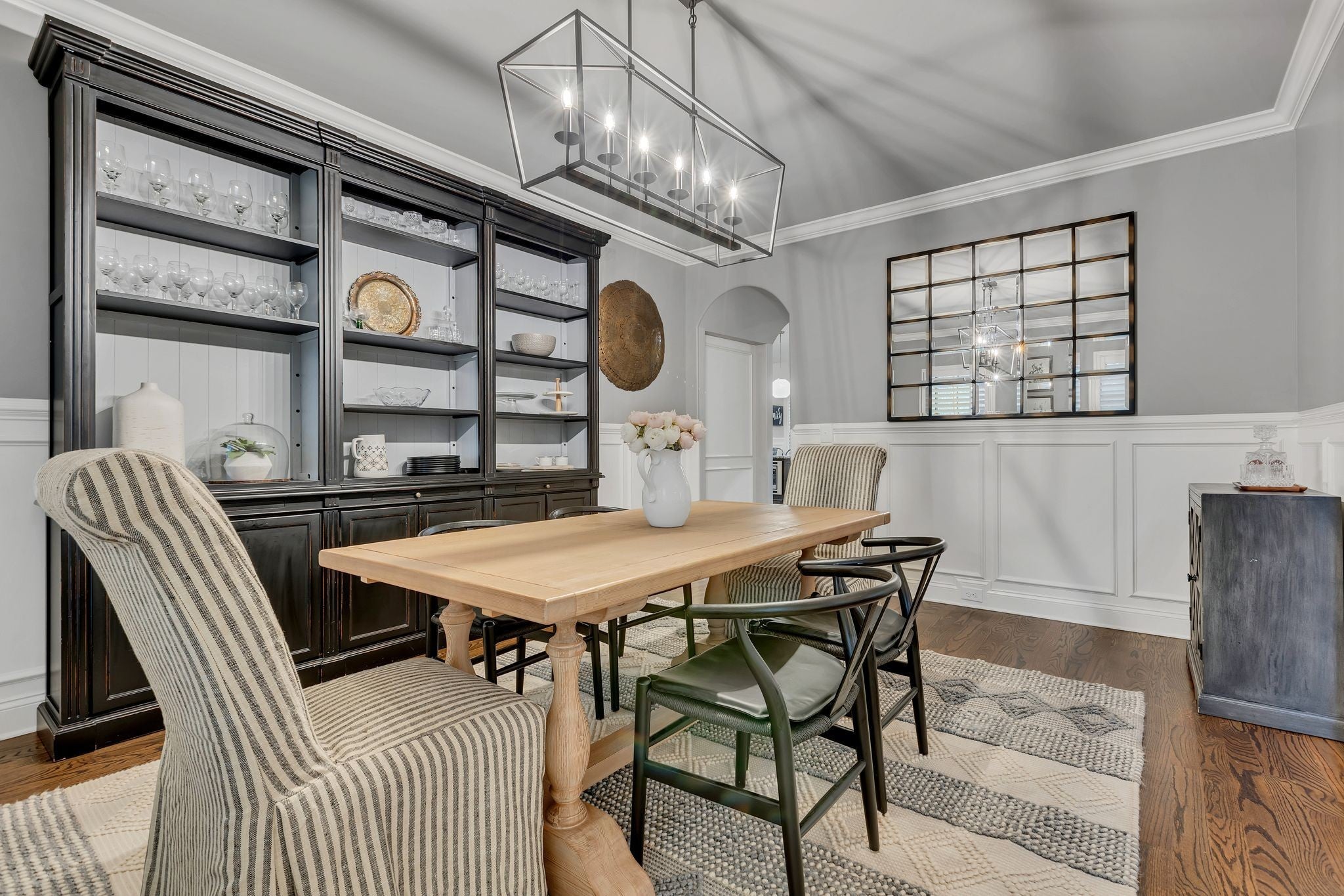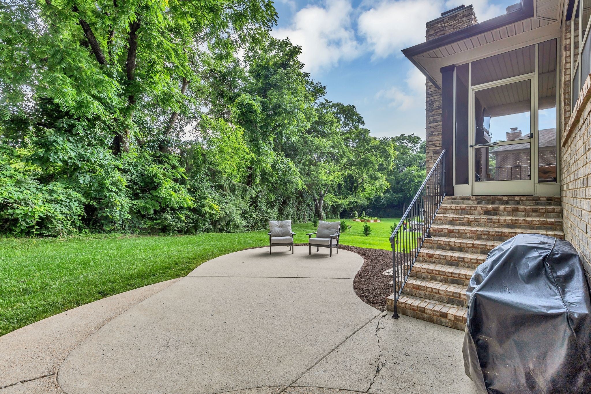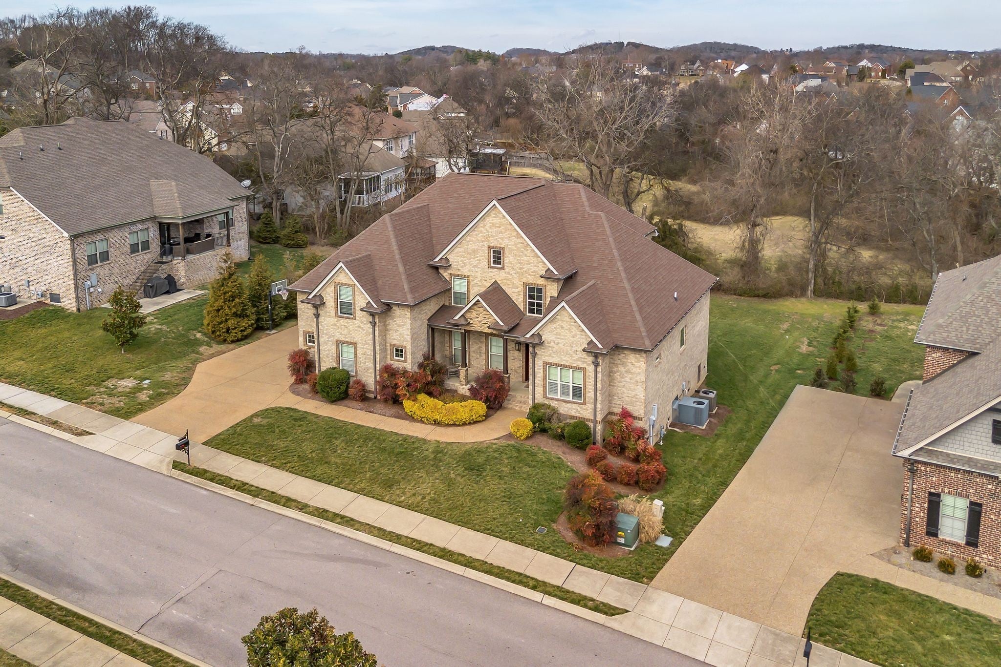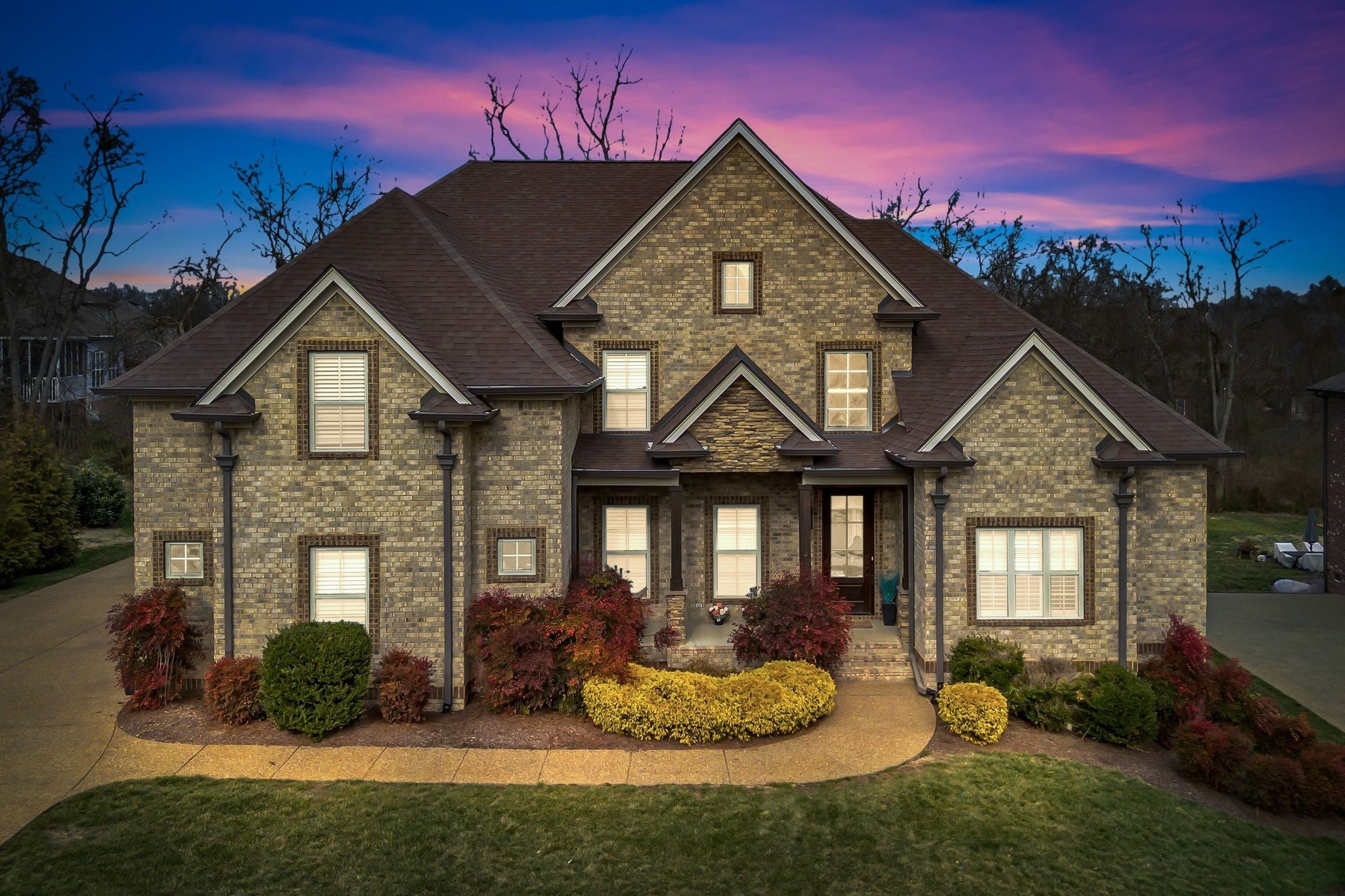 Refined Traditional Living located in the sought-after Cherry Grove community, this all-brick home offers 5 bedrooms, 4.5 bathrooms, and over 4,100 square feet of thoughtfully designed living space. Built in 2013 and positioned on one of the neighborhood’s premier lots, the home features 10-foot ceilings, newly installed hardwood floors on the main level, and an open-concept layout ideal for everyday living and entertaining. The custom kitchen includes double islands, a pot filler, extensive cabinetry, and a vaulted breakfast nook with exposed beams that flows seamlessly into the great room with coffered ceiling, built-in bookcases, and gas fireplace. The primary suite and dedicated office are located on the main level. Upstairs offers spacious secondary bedrooms, a large bonus room, and a versatile 16-by-16 flex room ideal for a media room, exercise space, or additional bedroom. Outdoor living features a covered and screened porch with wood-burning fireplace. Additional highlights include a three-car garage, new roof, and community pool access. Buyer and Buyer's agent to verify all pertinent information. ________________________________________