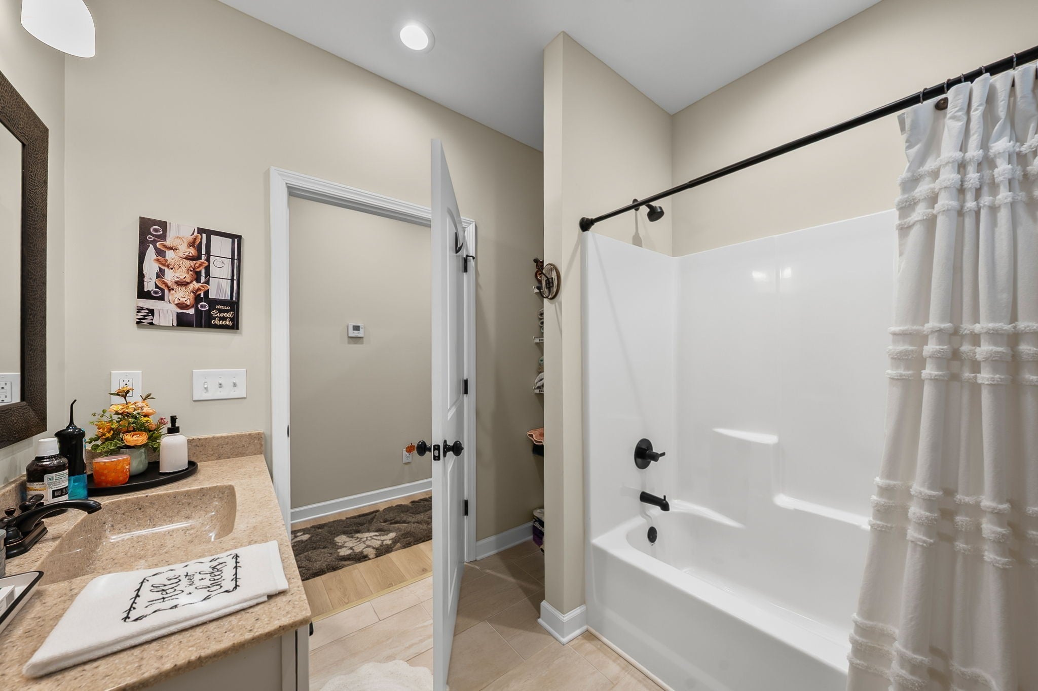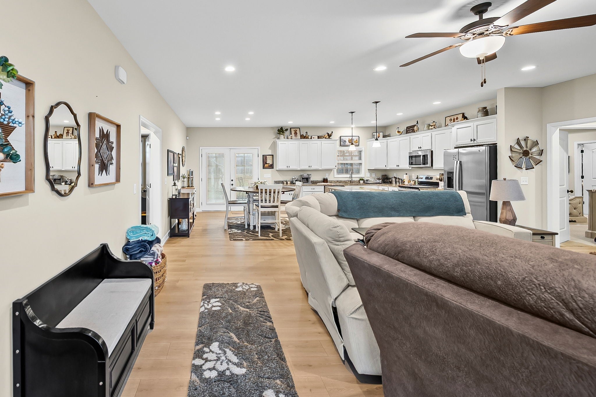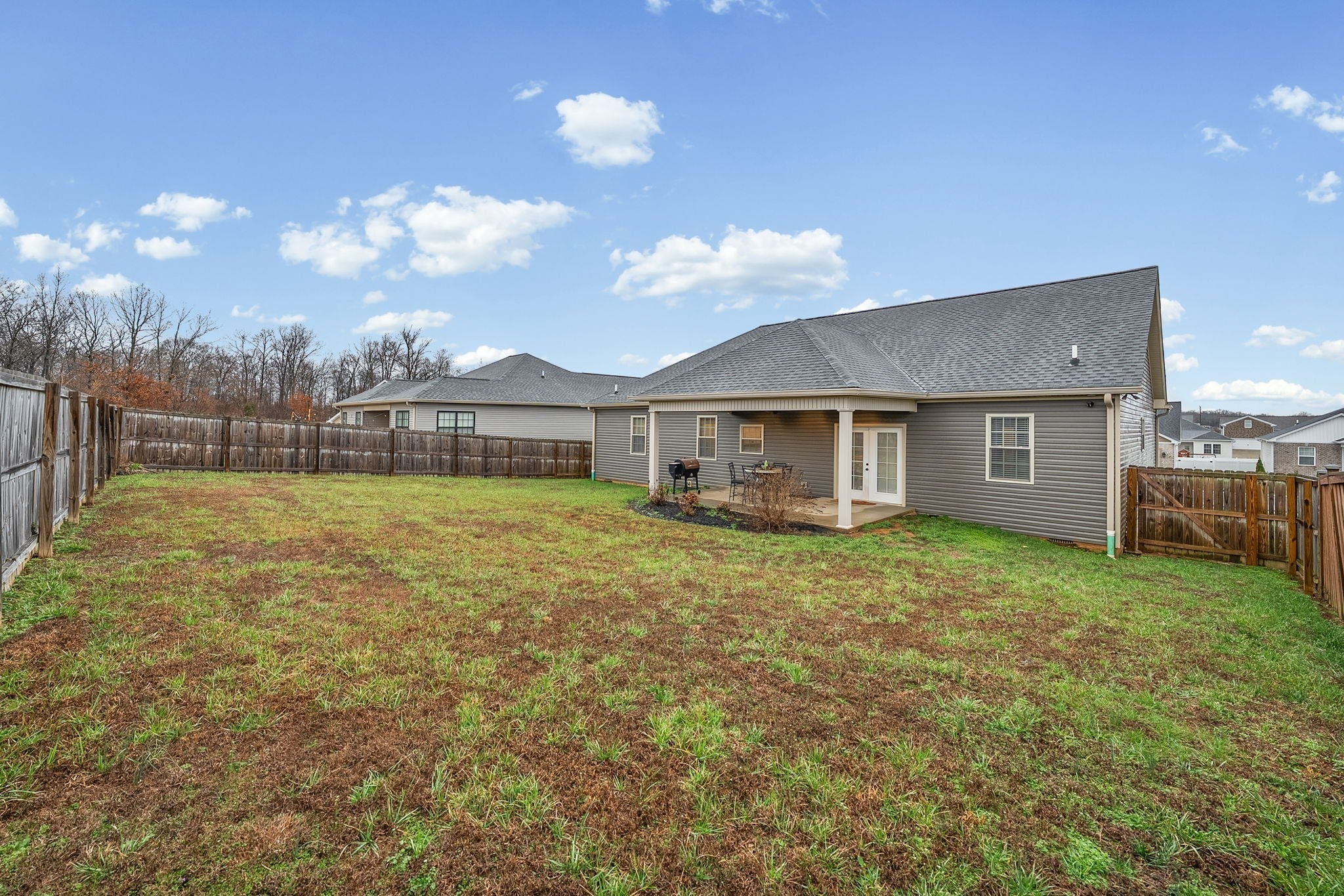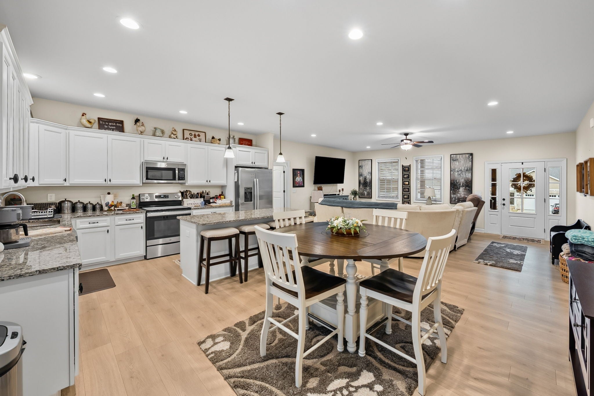 Welcome home to this beautiful 3 bedroom, 2 bath ranch located in the desirable Concord Villas subdivision in Hopkinsville. This well-maintained home features an open floor plan design that seamlessly connects the living room and kitchen, creating a bright and inviting space perfect for everyday living and entertaining. The kitchen is highlighted by stylish granite countertops and ample cabinet space. The spacious primary suite offers dual sinks and a beautifully tiled walk-in shower, creating a comfortable retreat at the end of the day. Two additional bedrooms provide plenty of space for family, guests, or a home office. Step outside to enjoy the covered rear porch overlooking a fully fenced backyard—perfect for relaxing, entertaining, or letting pets play safely. Conveniently located just minutes from Interstate 169, this home also offers a quick commute to Fort Campbell while still being close to local shopping, dining, and amenities in Hopkinsville. This move-in ready home is one you won’t want to miss!