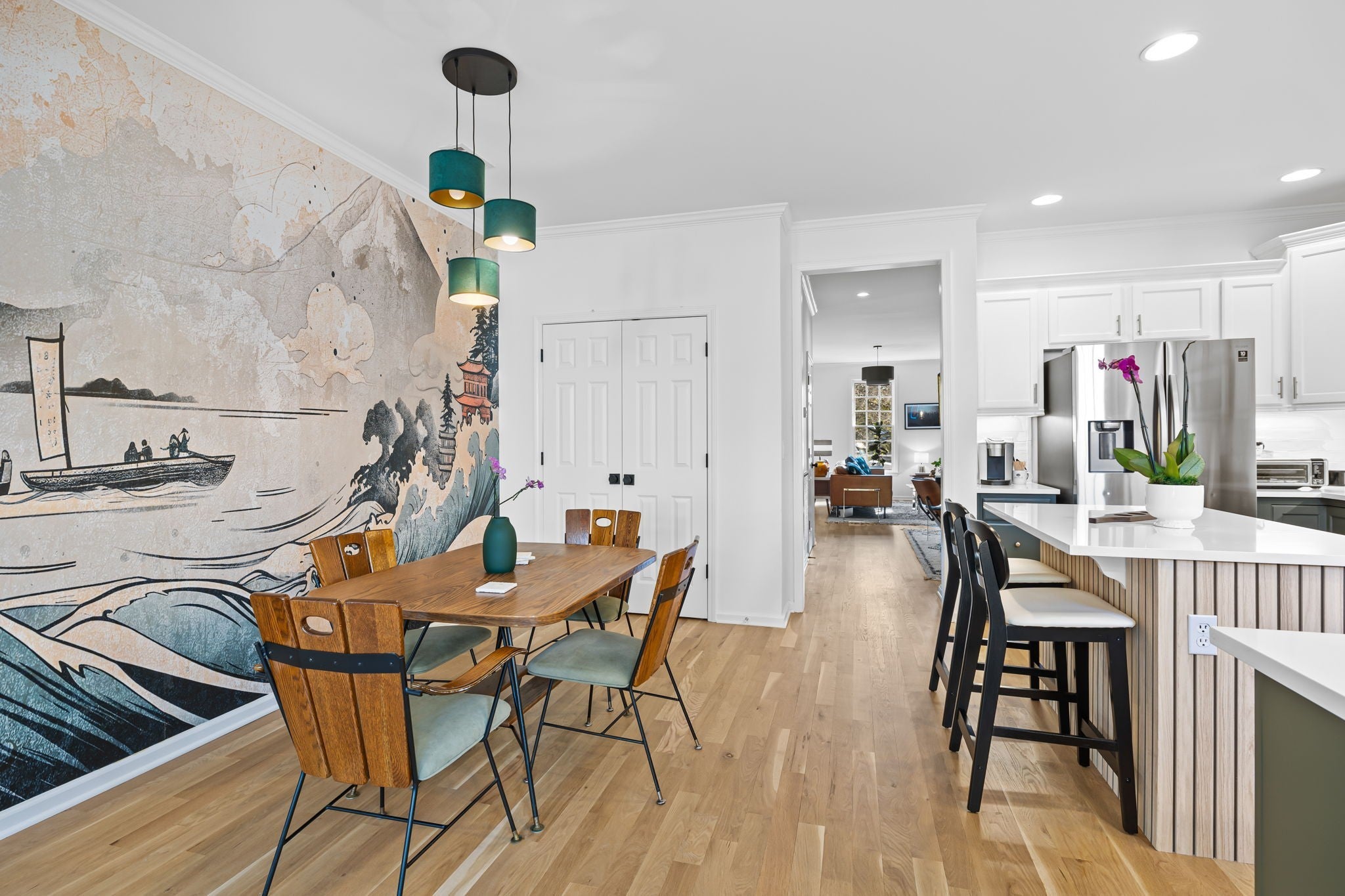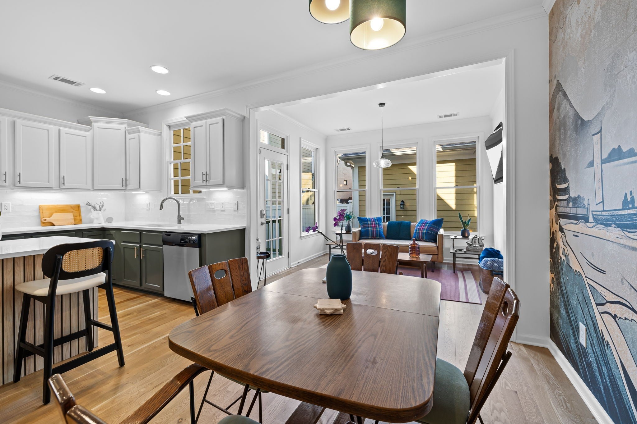 If you’ve walked through Westhaven before, you know the look. This isn’t that. 617 Cheltenham is a design-forward take on a classic floor plan—where warm woods, bold color, and curated details replace builder-grade predictability. The kitchen blends custom cabinetry, updated finishes, and clean lines that open seamlessly into light-filled living spaces. A statement mural anchors the dining room—equal parts conversation piece and design moment. Upstairs, the primary suite delivers a true escape. The fully renovated bath feels more boutique hotel than townhome, with a spa-style walk-in shower, dual heads, and premium finishes throughout. A third-floor flex space adds versatility—ideal for a home office, creative studio, or guest retreat—while the sunlit nook off the primary brings in character you won’t find elsewhere in the neighborhood. And outside your door? Everything Westhaven is known for—golf, pools, tennis, restaurants, and a walkable village lifestyle. But inside… it’s something entirely different.