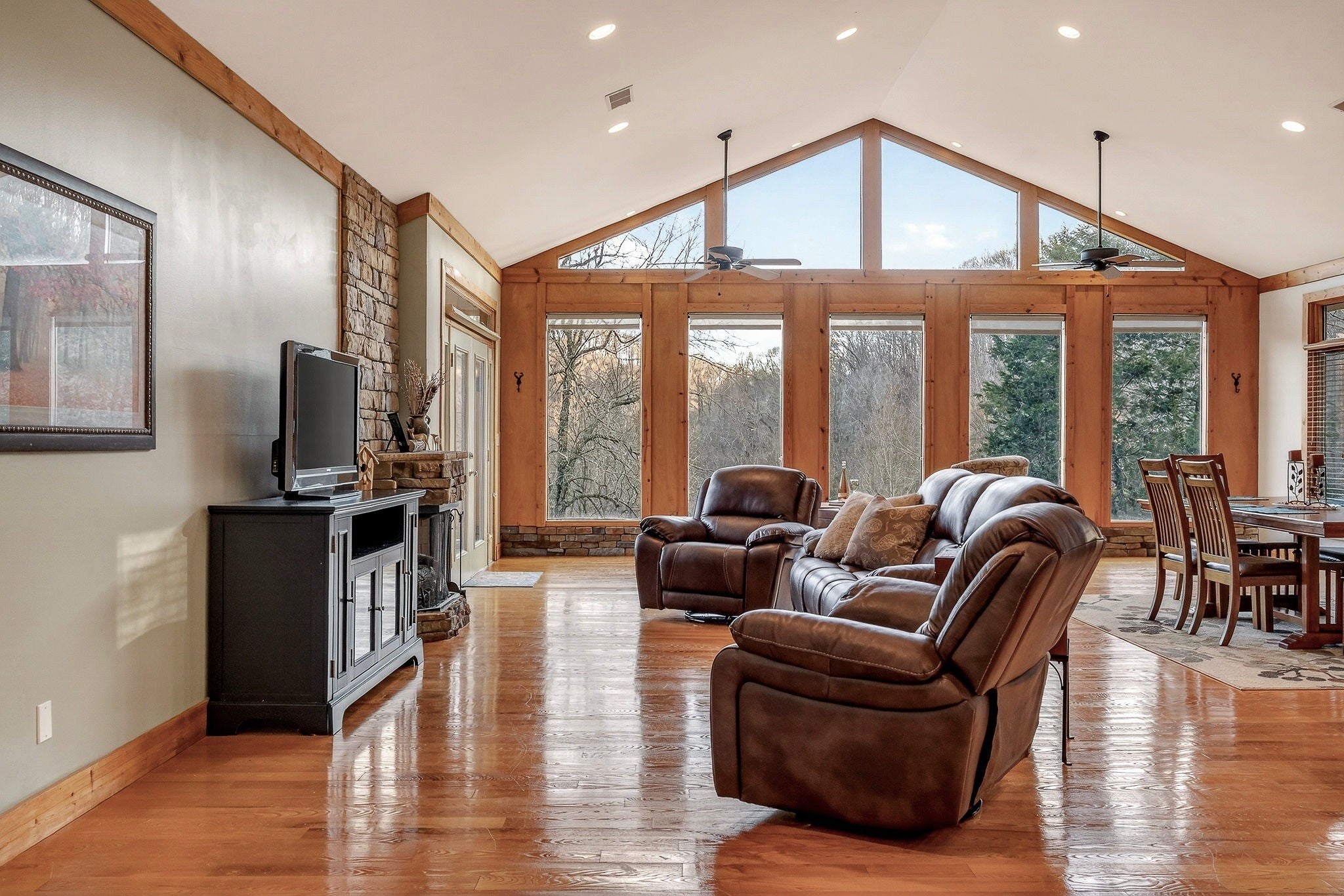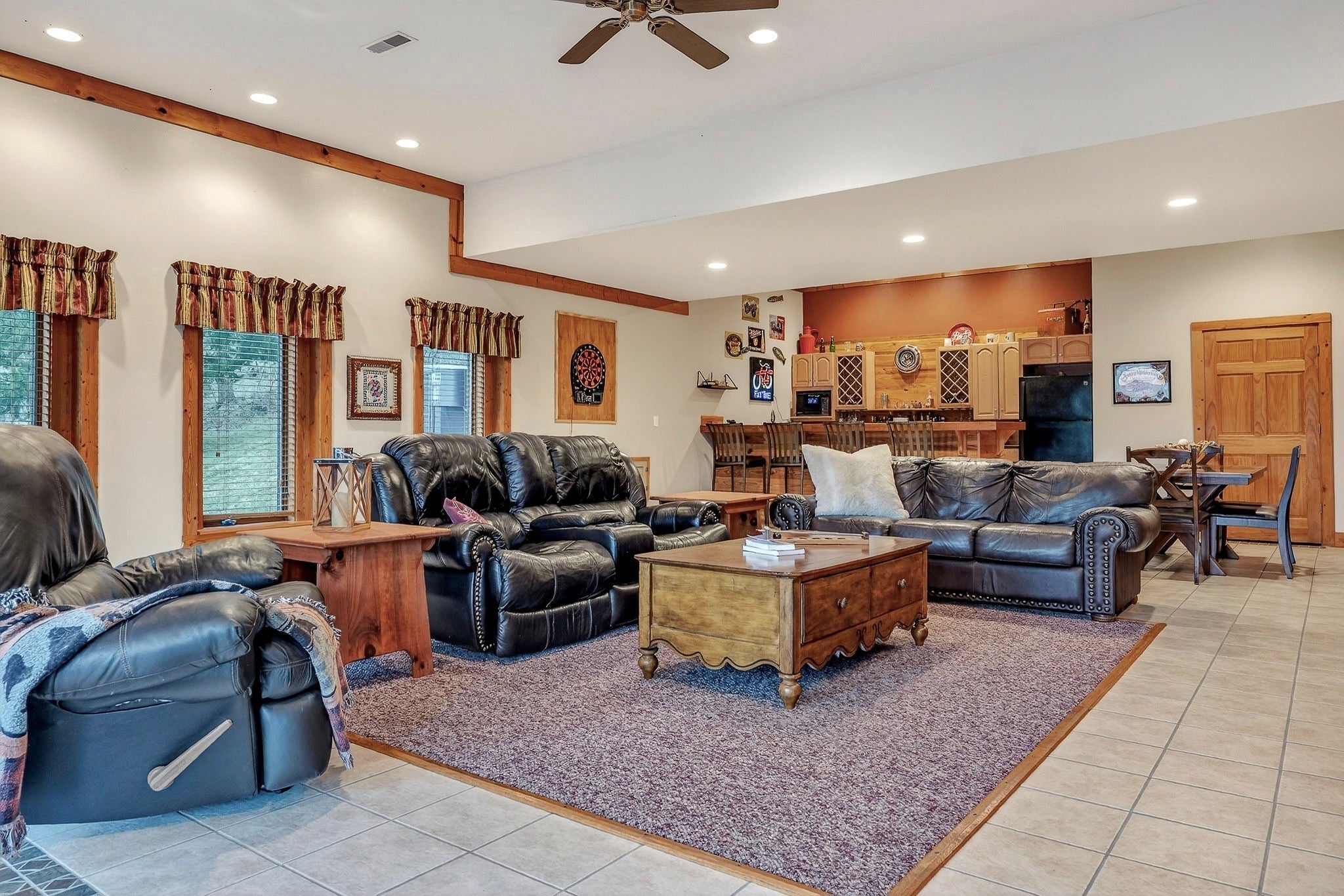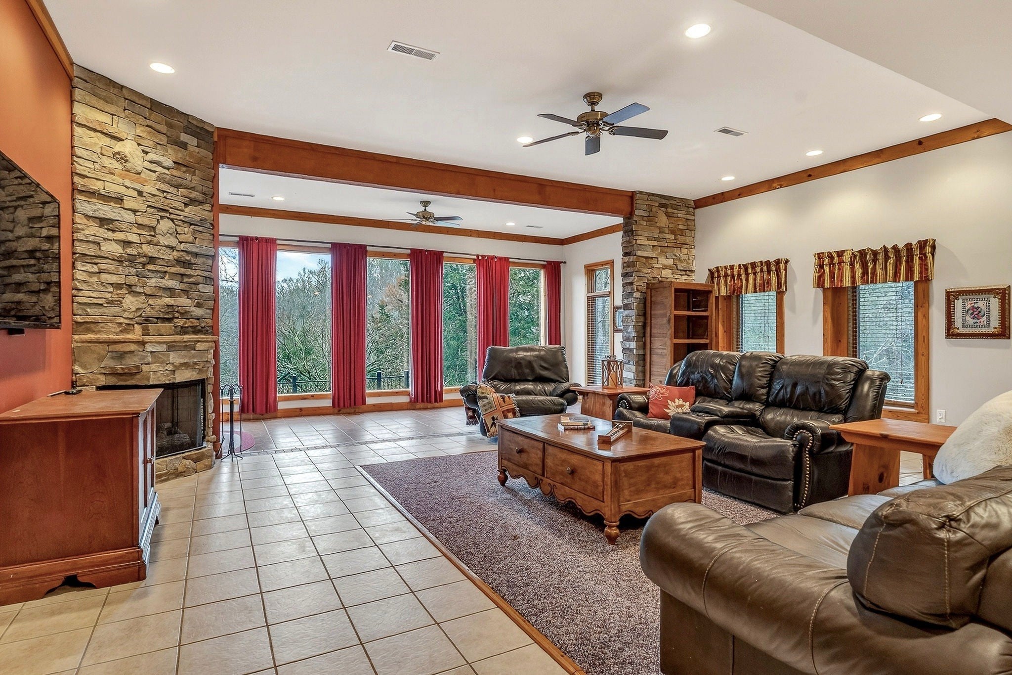 Escape to Center Hill at this gorgeous, fully furnished home in the gated Cove Hollow Bay community on Center Hill Lake. Designed for gathering and relaxing, this home features huge upper and lower living rooms, three gas fireplaces, and multiple flex rooms that provide extra sleeping space for guests. A finished walkout daylight basement expands the living and entertaining options with a large recreation room, a second kitchen, and a custom bar. Outdoor living is a highlight with two levels of decking plus a screened porch, offering plenty of space to unwind after a day on the water. A garage with workshop provides room for lake gear, tools, and storage. Located less than five minutes from Center Hill Marina, you will enjoy quick access to Center Hill Lake’s clear, deep waters and miles of shoreline that make it a premier destination for boating, fishing, paddling, and swimming. Cove Hollow Bay also offers a community boat dock for added convenience. Nearby Edgar Evins State Park adds even more to love, with hiking trails, scenic overlooks, and year-round recreation just a short drive away. For even more adventure, the close proximity to Caney Fork River offers exceptional trout fishing, kayaking, and guided float trips.
