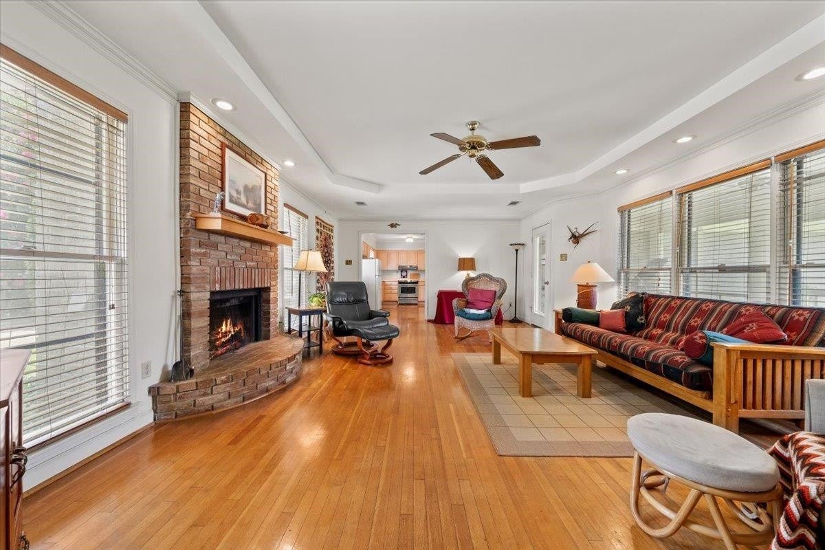 Do not miss this awesome, big, one story home in a prime east Memphis location that is convenient to downtown or out East. 1 story homes this size are rare in this prime area. Award winning White Station Schools. The home features 3 good size bedrooms, 3 full baths, a 20' living room, formal dining room, sunroom, huge den (22x16), and a workshop/studio. This a rare larger 1 story, featuring hardwoods throughout almost all of the home. 2 fireplaces. All appliances can stay including washer/dryer/fridge. Outside was painted in 2024 and roof and hvac have been updated in the past several years. A rear load garage gives the home nice curb appeal. The yard is fenced and has a wonderful screened porch to enjoy the outdoors and gorgeous landscaping.