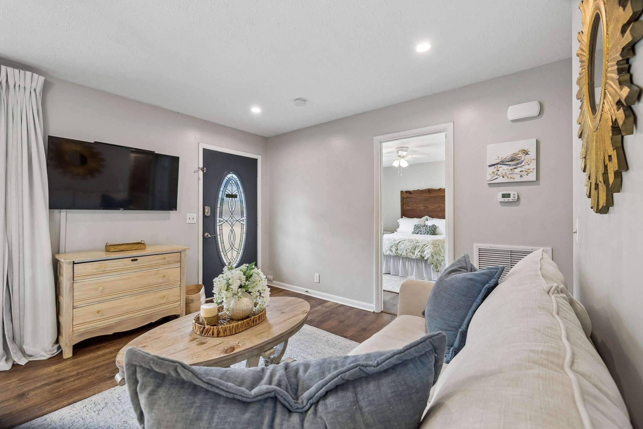 Enjoy peaceful country living in this charming, updated cottage set on a beautiful .65-acre flat lot surrounded by mature trees. With no HOA, this property is perfect for those dreaming of a little homestead lifestyle — raise chickens, garden, and enjoy the quiet of rural living. This one-level home features two bedrooms, one bathroom, a cozy eat-in kitchen, and a convenient laundry room with washer and dryer included. The former garage has been thoughtfully converted into a bonus room and being used as a third bedroom. It could also be used as an office, den, or playroom, offering flexible space to suit your needs. The kitchen includes stainless steel appliances, a pantry with a charming barn door, and opens to a warm, inviting living space with laminate plank flooring, fresh paint, and LED lighting throughout. The updated bathroom adds to the home’s move-in ready appeal. Step outside to a fully fenced backyard with a side deck perfect for entertaining, plus a large storage building and a hobby shed with electrical and durable Hardie plank exterior—ideal for projects, tools, or extra storage. Additional features include a durable metal roof and move-in ready condition, making this property a great option for homeowners or investors alike. Conveniently located with easy access to I-840, I-40, and Hwy 100, this home offers the best of both worlds—peaceful country charm with quick access to shopping, dining, and commuting routes. This storybook cottage is truly a must-see!