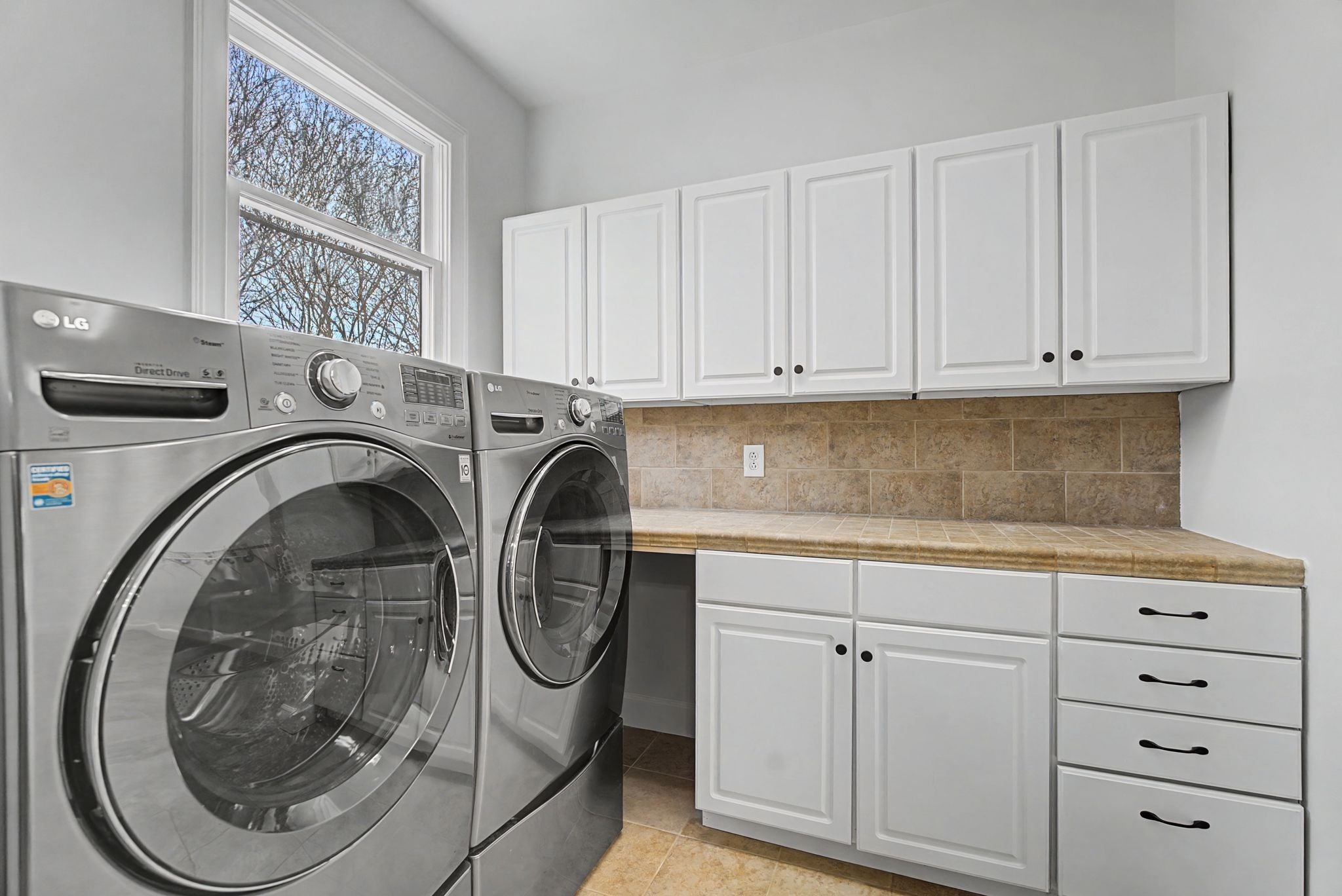 - Built-In Electric Oven, Built-In Gas Range, Dishwasher, Disposal, Dryer, Microwave, Refrigerator, Stainless Steel Appliance(s), Washer