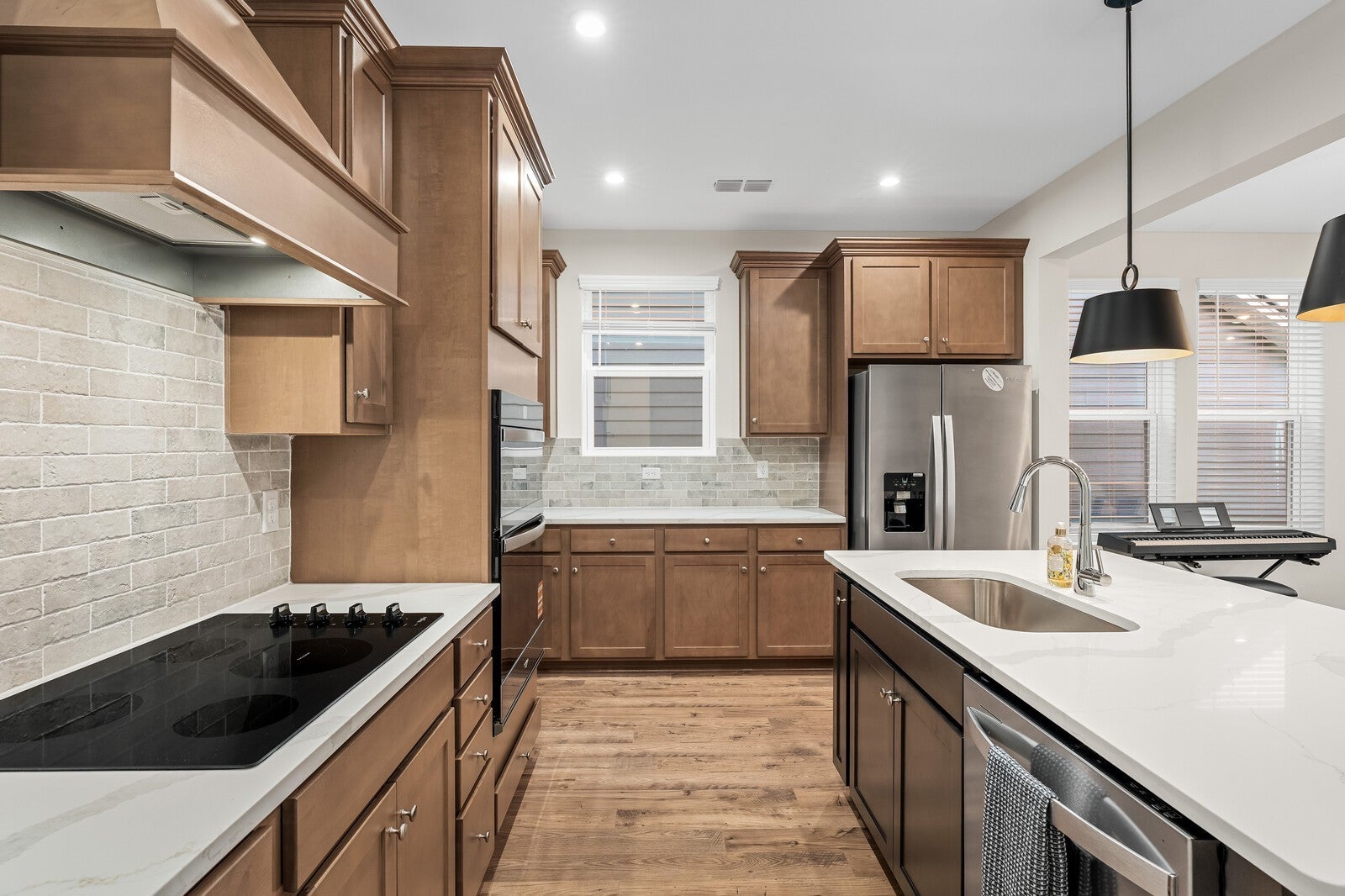 - Built-In Electric Oven, Cooktop, Electric Range, Dishwasher, Disposal, Dryer, ENERGY STAR Qualified Appliances, Microwave, Refrigerator, Stainless Steel Appliance(s), Washer, Smart Appliance(s)