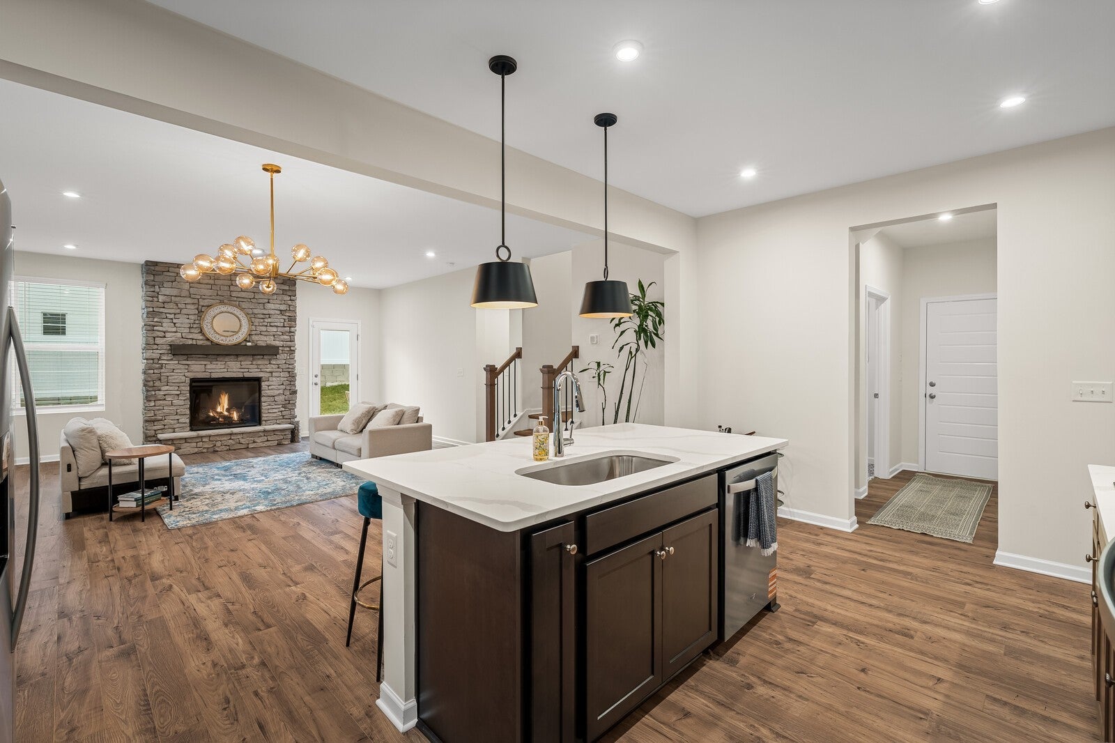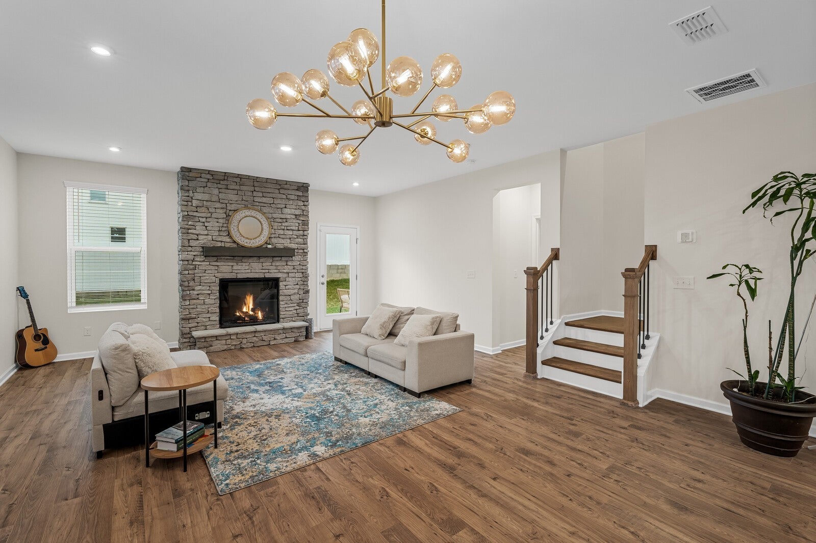 All the benefits of new construction without the wait. Completed in November 2025, this Beazer-built Charleston plan in the desirable Overlook at Aarons Cress community offers modern design, high-end finishes, & move-in-ready convenience. Builder design center upgrades already selected & installed mean buyers enjoy premium finishes without the added cost, decisions, or delays of building from scratch. The open-concept layout is designed for effortless entertaining & features a striking stone electric fireplace as the living room focal point. The chef-inspired kitchen showcases upgraded cabinetry, state-of-the-art smart appliances including an enhanced oven, microwave, & hood package, & a large island with upgraded white quartz countertops featuring elegant gray & gold marble-inspired veining & a coordinating stone backsplash that complements the fireplace surround. Hardwood flooring runs throughout the main living areas. The main-level primary suite offers the convenience of first-floor living & a luxurious retreat with marble flooring, designer tile in the oversized walk-in shower, two spacious walk-in closets, & additional linen storage. Additional highlights include a dedicated study, upstairs loft, luxury vinyl plank stair treads with decorative iron railings, premium interior paint, & an expanded concrete patio ideal for outdoor entertaining. Modern farmhouse elevation. Community pool. Convenient to I-40, Providence shopping & dining, Percy Priest Lake, & nearby greenway trails. Built as part of Beazer’s READY Energy Series, this home is ENERGY STAR certified & DOE Zero Energy Ready, offering modern efficiency designed to improve comfort & reduce utility costs. Enjoy the lifestyle & efficiency of a home completed in November 2025 without the timeline or uncertainty of building.