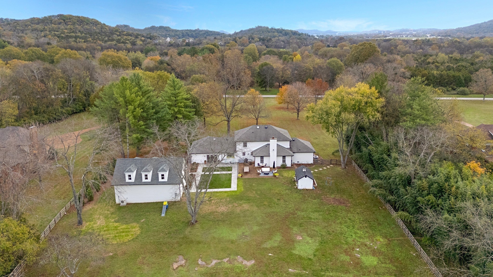 Ever dreamed of living in a Hallmark movie but with better appliances? Welcome to this masterfully renovated estate on 4.26 lush, level acres in the highly coveted Deerfield community—located just 5 minutes from the heartbeat of Historic Downtown Franklin. This property offers the rare trifecta of expansive country acreage, modern luxury, and city convenience. The experience begins at the picturesque tree-lined driveway, leading you to a home where no detail was overlooked. Inside, the residence exudes warmth with brick paver and refinished hardwood floors and a cozy wood-burning fireplace. The heart of the home is a chef’s dream: a fully upgraded kitchen featuring timeless marble and soapstone countertops, a professional-grade Viking range, and a built-in Keurig system within the refrigerator. Beyond the aesthetics, the home offers absolute peace of mind with significant infrastructure upgrades, including a NEW ROOF and a professionally ENCAPSULATED CRAWLSPACE. The exterior is a private resort and hobbyist's paradise. The property features a brand-new, massive 36x48 barn with a 12x48 open shed. This isn't just for storage; the barn interior features a painted half-court on one end, providing a perfect indoor practice space or recreational hub regardless of the weather. For outdoor play, the property also boasts a dedicated, lighted sport court. Gardeners will adore the charming cottage-style garden shed (complete with electricity) and new raised garden boxes. The detached 3-car garage offers immense versatility with 960 square feet of finished space above—an ideal setup for a high-end home office, art studio, or guest suite. (Note: Ask about existing plans to add a kitchenette and separate bedroom to convert this into a fully functioning in-law quarters!) As a resident of Deerfield, you’ll enjoy exclusive access to 45 acres of community pasture and scenic trails for walking, riding, and exploring the natural beauty of Middle Tennessee.