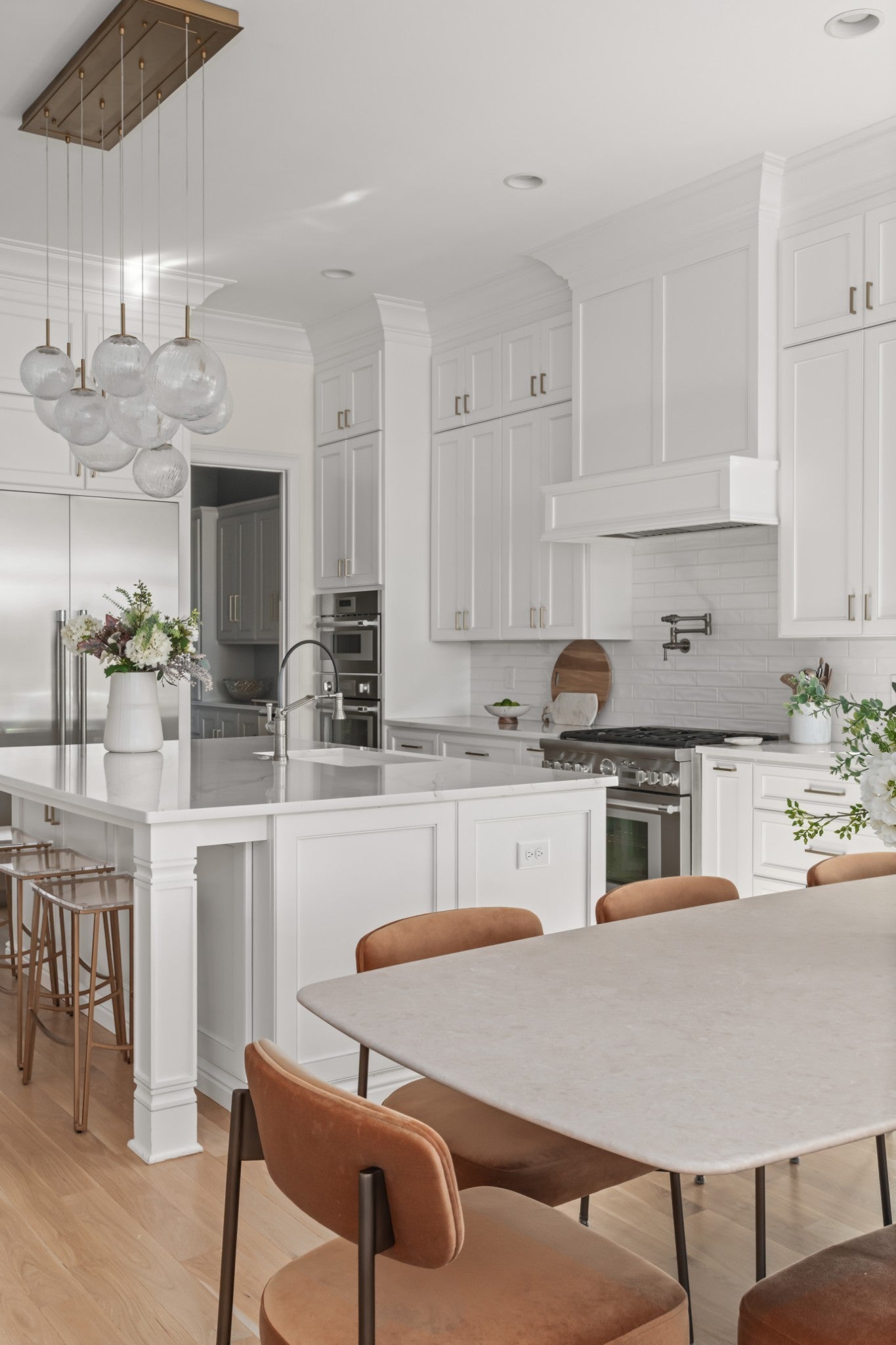 - Built-In Electric Oven, Built-In Gas Range, Dishwasher, Disposal, Freezer, Ice Maker, Microwave, Refrigerator, Stainless Steel Appliance(s)