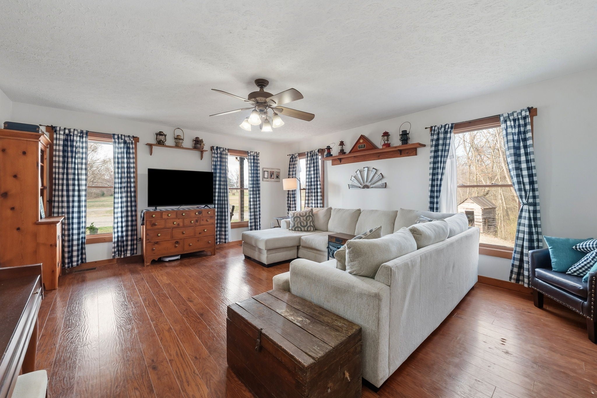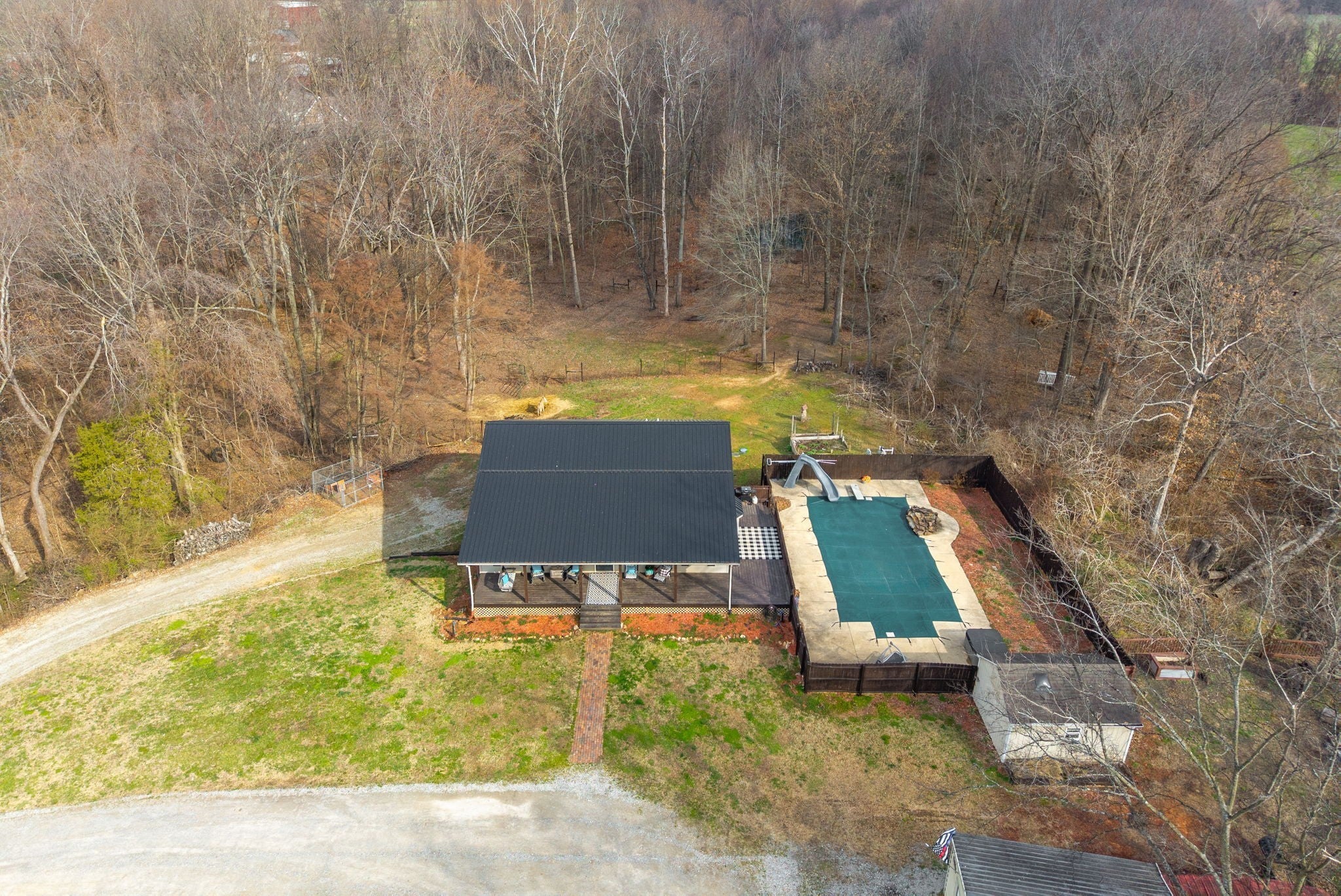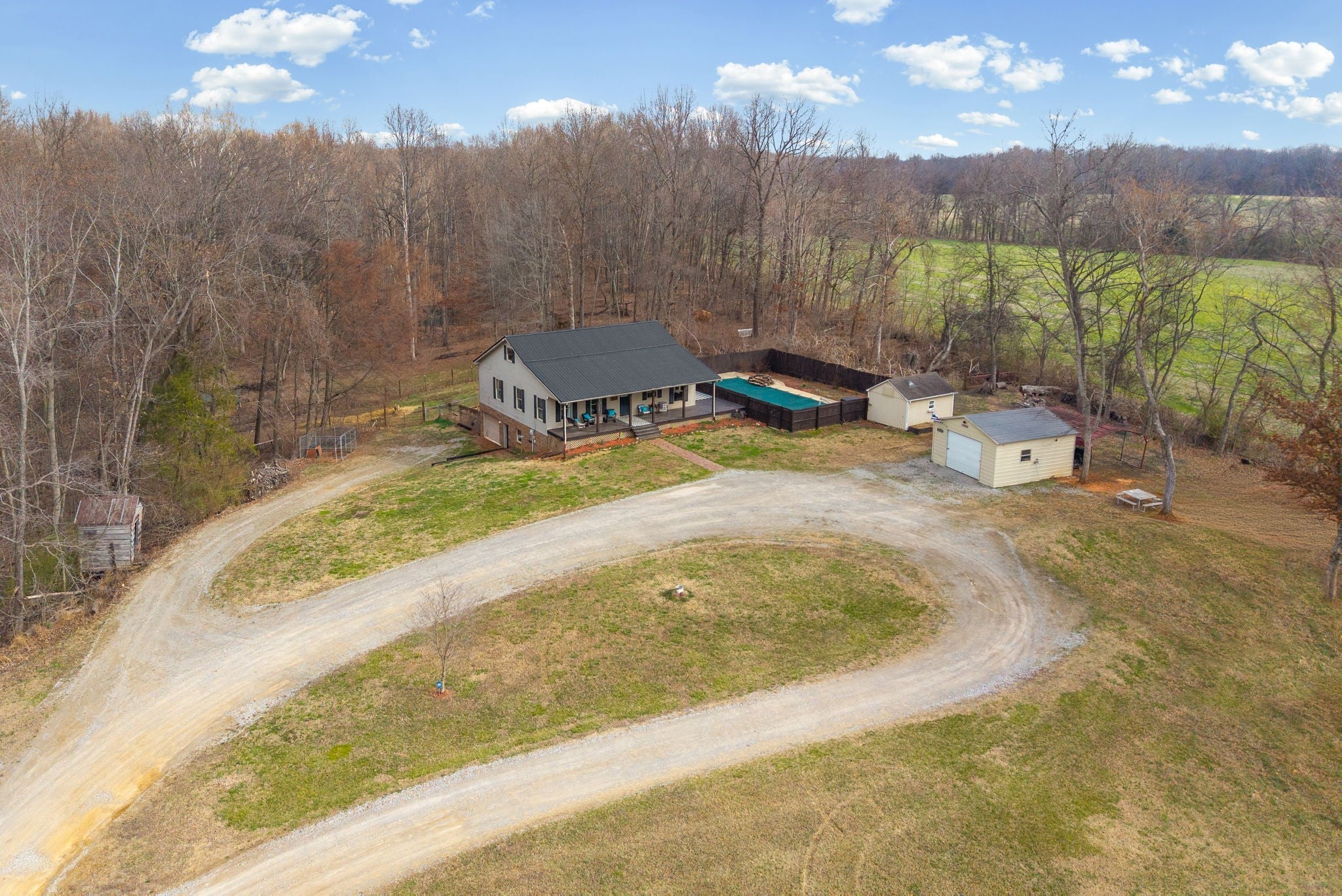 Private country living on 6 scenic acres with a stocked pond and inground pool to include waterfall & slide, offering the perfect blend of relaxation and outdoor enjoyment while conveniently located near Nashville and surrounding areas. Inside, incredible natural light pours through large windows, highlighting the spacious layout and beautifully finished hardwood floors. The home features a charming wrap around porch leading into the inviting entry foyer, transitional living room with tall ceiling, a large eat-in kitchen with walk-in pantry, and a dedicated utility room with great storage. Featuring oversized 4 bedrooms with walk-in closets, 3 full bathrooms, second floor office/craft room and a spacious bonus room with impeccable tongue-and-groove wood ceiling detail, there’s room for everyone. While the one-car basement garage provides abundant storage possibilities provide excellent functionality, how about a large storage shed located at the side of property offering more convenience to daily tasks? This property spares no detail. Add livestock, horses and pile in your family, embrace what this home has to offer!
