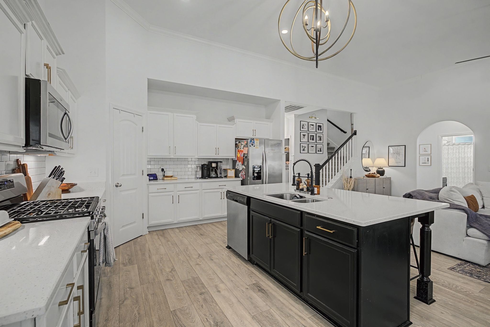 - Gas Oven, Gas Range, Dishwasher, Disposal, Microwave, Refrigerator, Stainless Steel Appliance(s)