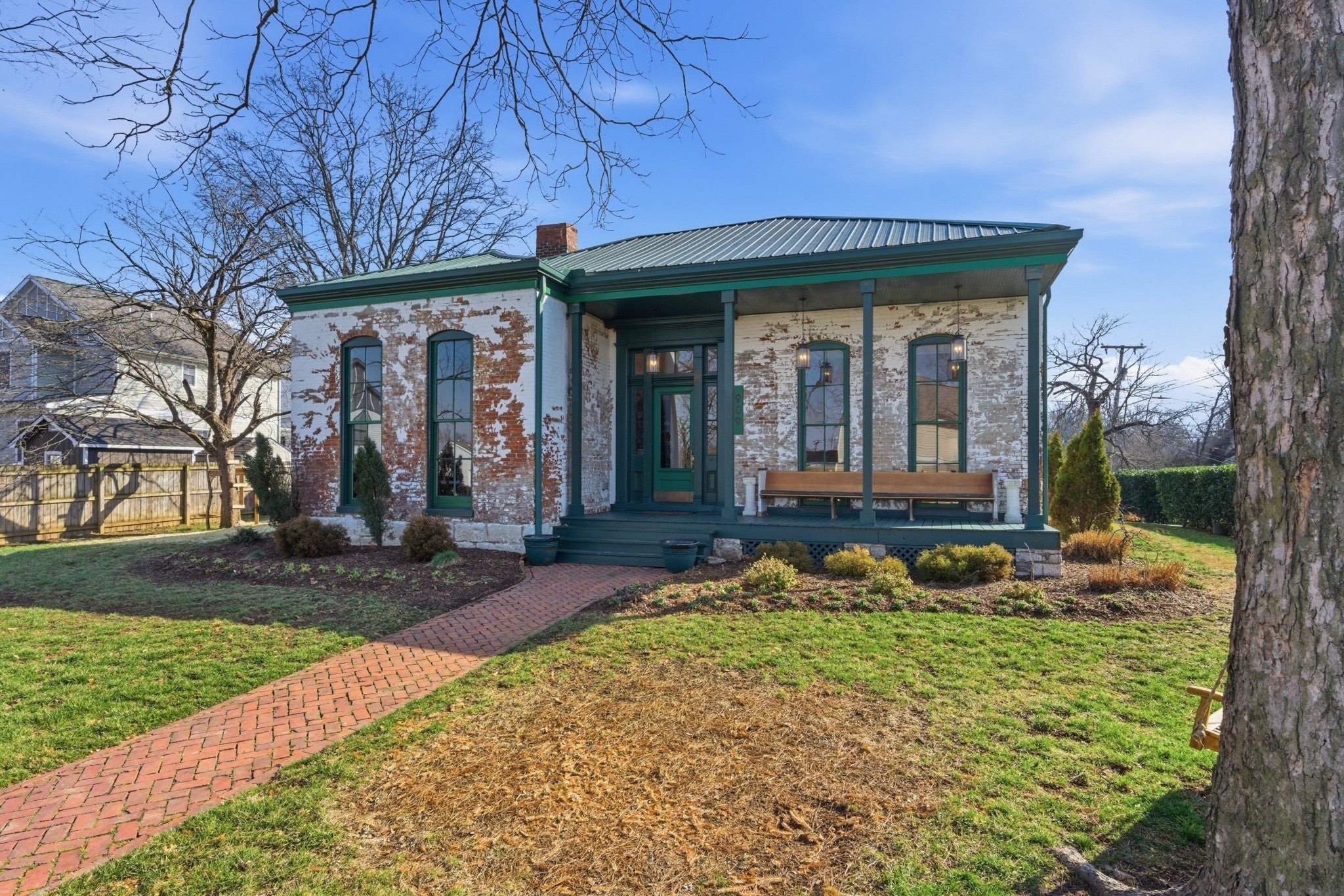 Welcome to ‘Look Away Estate’ | East Nashville Historic Stunner | Circa 1844 Meticulously restored to honor its jaw-dropping scale and historic character, this one-level masterpiece blends timeless architecture with thoughtful modern design. A seamless 1,300-square-foot addition creates an open, light-filled floor plan ideal for both everyday living and effortless entertaining. Soaring 13-foot ceilings, exposed brick walls throughout, and original/period finishes anchor the home’s character, while the spa-like primary suite stuns with a massive double shower, soaking tub, and custom vanities. Outdoors, a .5 acre fenced yard welcomes you in - add a staircase to enjoy a rooftop deck, and enjoy a private courtyard framed by a signature green fence. You also have the added bonus of a separate income-producing property with the attached apartment. Enjoy some of East Nashville’s favorite coffee shops, eateries and shops within quick walking distance - You truly can have it all! A rare opportunity to own a piece of East Nashville history—reimagined for modern living.