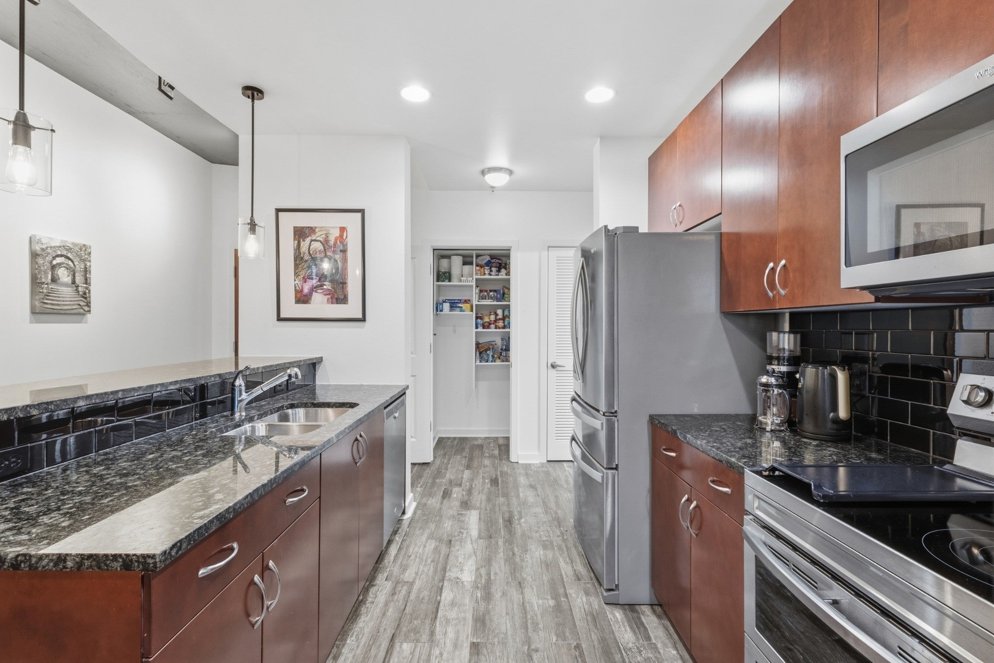 - Oven, Cooktop, Dishwasher, Disposal, Dryer, Microwave, Refrigerator, Stainless Steel Appliance(s), Washer