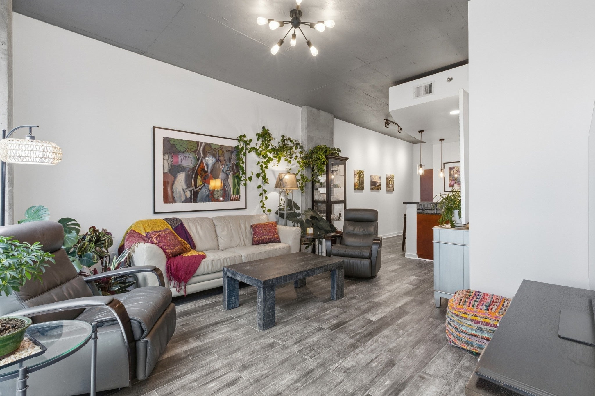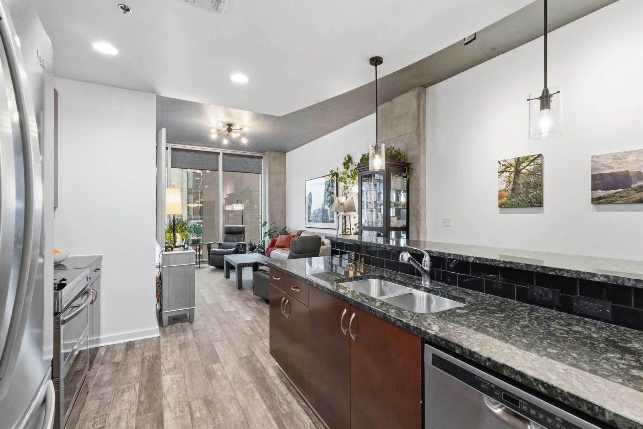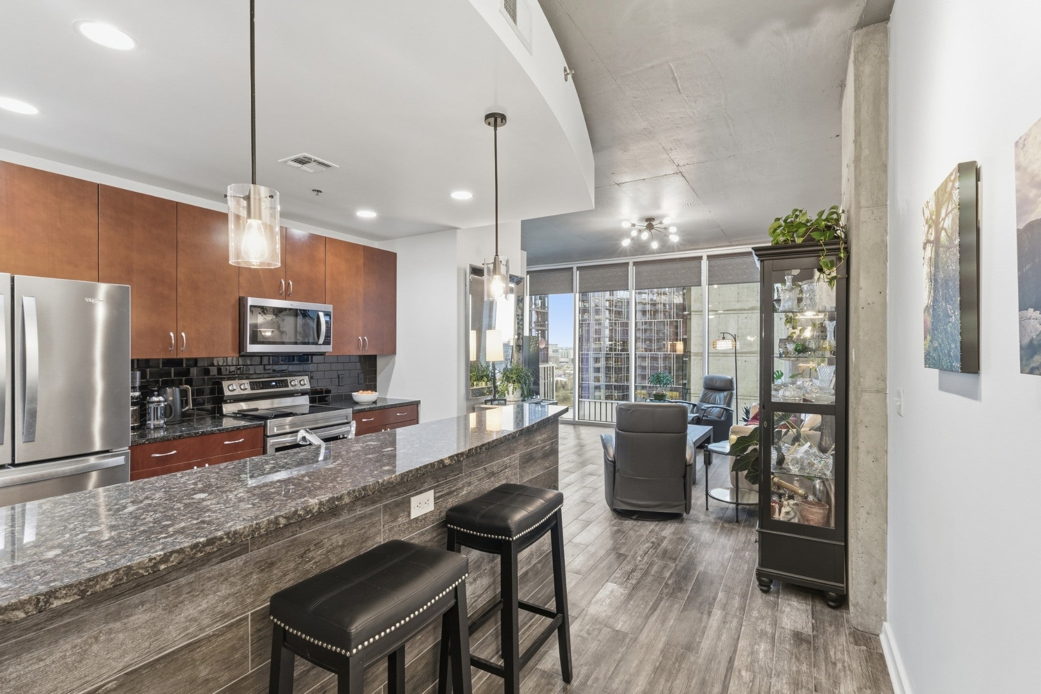 Experience the best of urban living in this spacious 1-bedroom, 1-bathroom condo located in the heart of Nashville. This beautifully designed residence offers stunning skyline views that showcase the vibrant energy of Music City right from your windows. Inside, you’ll find an open and inviting layout perfect for modern living and entertaining. Large windows fill the space with natural light while framing breathtaking views of the downtown skyline. The living area flows seamlessly into the kitchen and dining space, creating an ideal setting for both relaxing evenings and hosting friends before a night out in the city. Situated just two blocks from the world-famous Broadway, this condo places you steps away from live music, award-winning restaurants, entertainment, and all the excitement that makes Nashville one of the most sought-after cities in the country. Whether you're looking for a primary residence, a downtown retreat, or an investment opportunity, this urban condo offers an unbeatable location and incredible views in the center of it all. Enjoy the convenience of city living with shopping, dining, nightlife, and entertainment right outside your door—truly the perfect place to experience everything Music City has to offer. Updated lighting, flooring, custom blinds, custom entry coat closet/ storage, and bathroom.