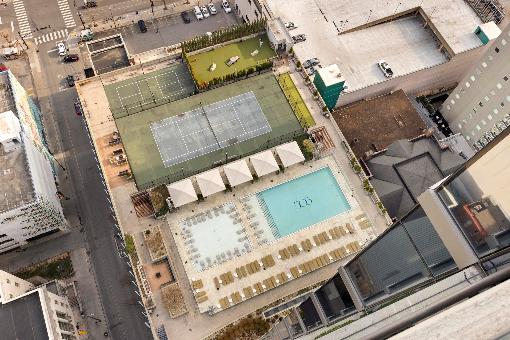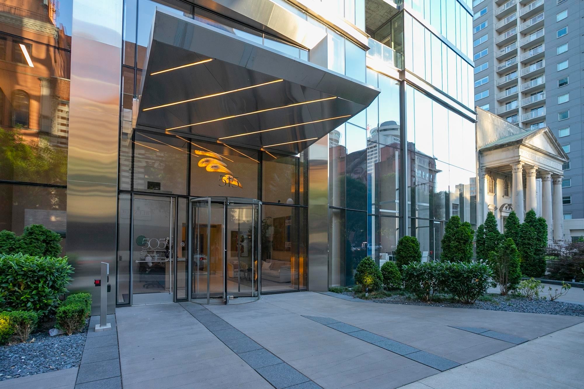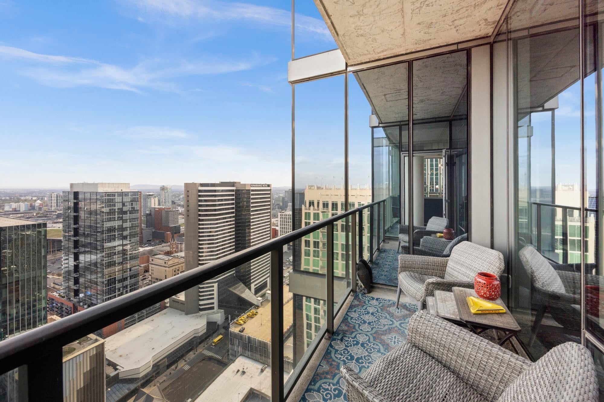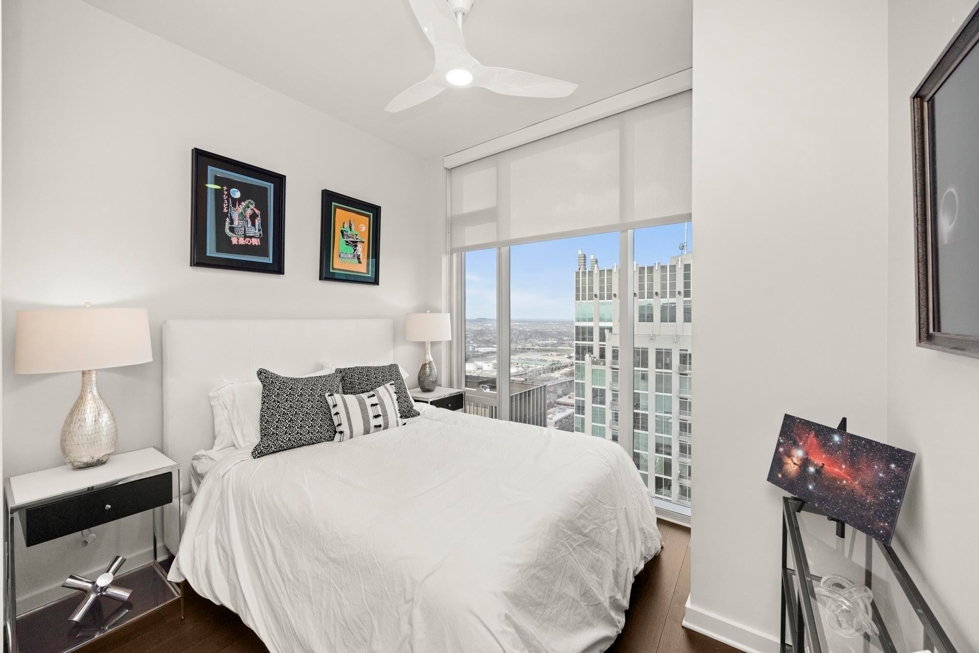 CORNER UNIT WITH BALCONY!! Rare offering on the coveted Southeast corner of the 505 Tower with floor to ceiling windows providing spectacular views of downtown Nashville and a front row seat to the city's many firework displays. This condo will convey furnished with Mitchell Gold designs. In addition, the condo has brand new flooring in the entry, kitchen, and living area. Both bedrooms are ensuite with large walk in closets. Private parking area is located on B1, with easy access to the elevator. The 505 Tower is perfectly situated with direct access to all things Nashville--Ryman Auditorium, Bridgestone Arena, Nissan Stadium, 5th and Broad/Assembly Hall, Broadway, the newly renovated Arcade, and Nashville Yards. Exterior amenities include a resort style pool with cabanas, tennis court, pickleball court, and dog park. Interior amenities include a private owners’ lounge, state-of-the-art fitness center, private training center, massage room, private Italian-inspired wine/dining room, 24 hour coffee bar, and a catering kitchen/dining room.