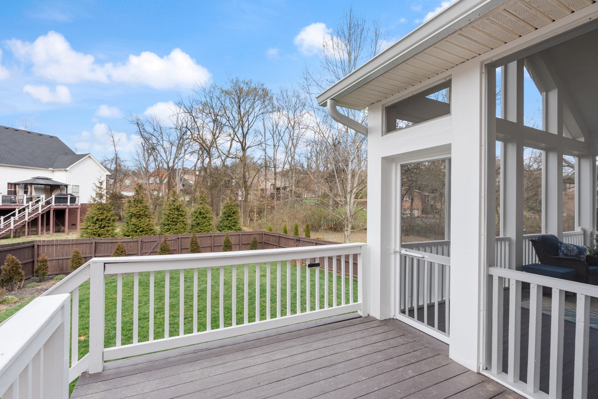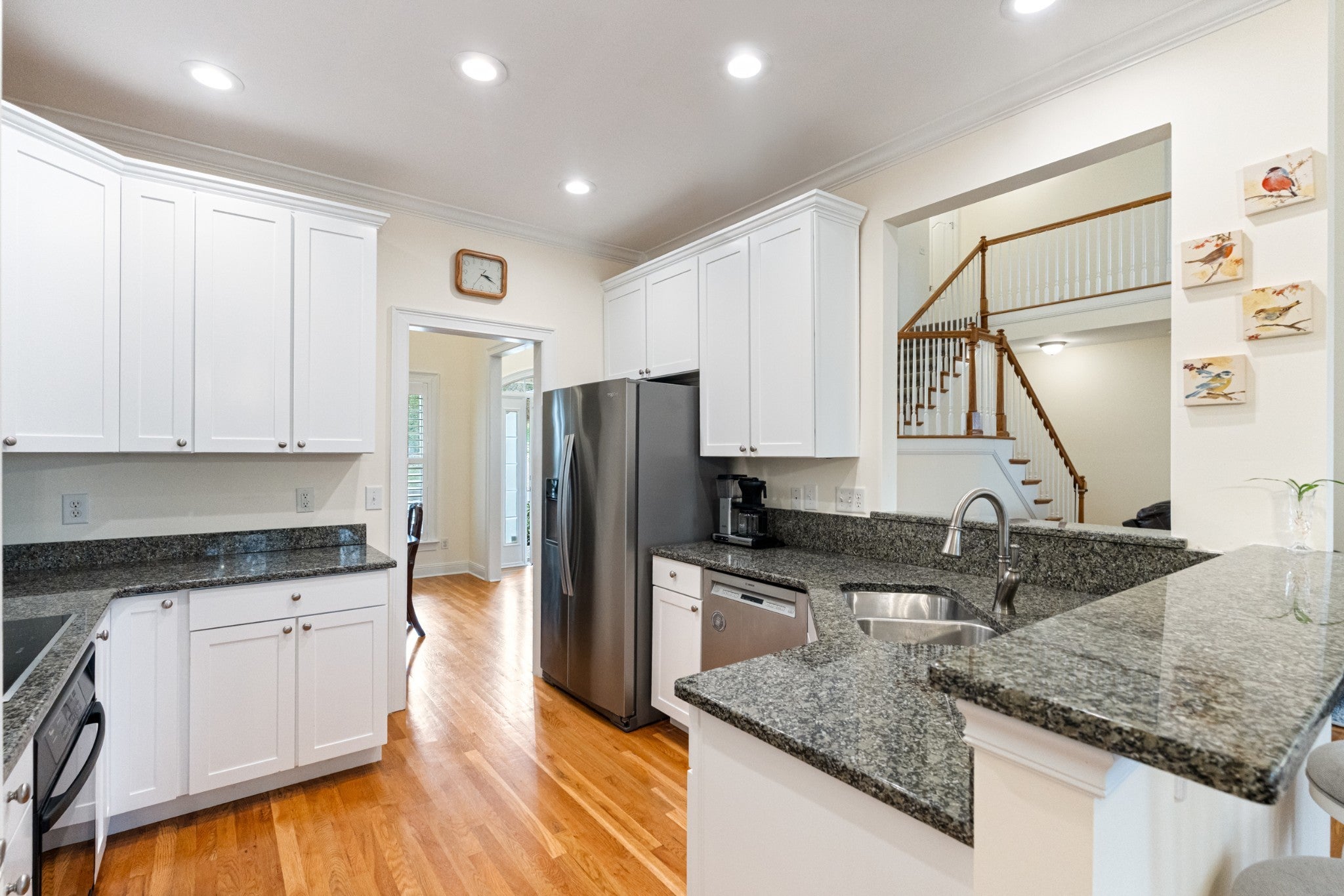 Located in a fantastic Nashville location, this beautifully maintained two-story home offers comfort, functionality, and numerous thoughtful upgrades. The primary suite is conveniently located on the main floor, featuring a completely remodeled bathroom with a large walk-in shower and heated tile flooring for a spa-like experience. The home’s inviting outdoor space includes a stunning screened-in back deck overlooking a fully fenced backyard—perfect for relaxing or entertaining. The level driveway offers easy access along with additional parking space. The versatile fourth bedroom offers flexible living space and could easily serve as a recreation room, bonus room, home gym, or media room depending on your needs. Recent upgrades and improvements include a new roof, new HVAC system, new appliances, and a hot water heater. The kitchen features a modern induction cooktop, and the home includes an LG washer and dryer. Additional updates include new carpet in the primary bedroom and throughout the upstairs. Outdoor enhancements include full yard irrigation and professionally designed landscaping with mostly native plants that attract butterflies and birds, along with screening trees for added privacy. Five large Green Giant evergreens have been planted along the fence line to create a natural privacy barrier. The garage has been upgraded with a new double garage door, durable metal shelving, and three 50-amp EV connections—one located inside the garage that can also double as a generator connection. This move-in ready home combines thoughtful upgrades, outdoor beauty, and a highly desirable Nashville location.