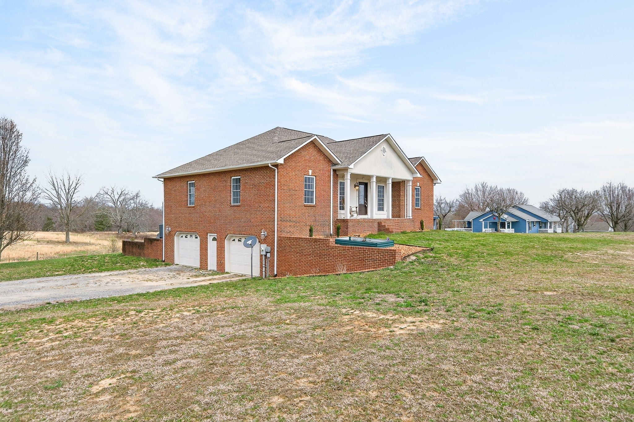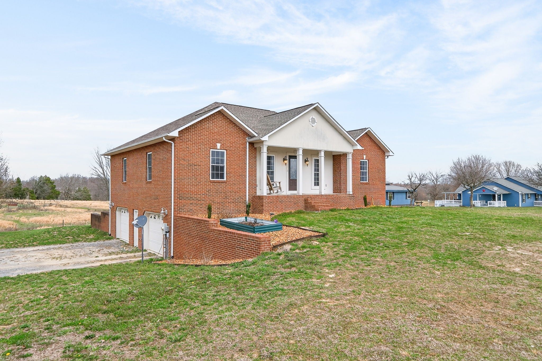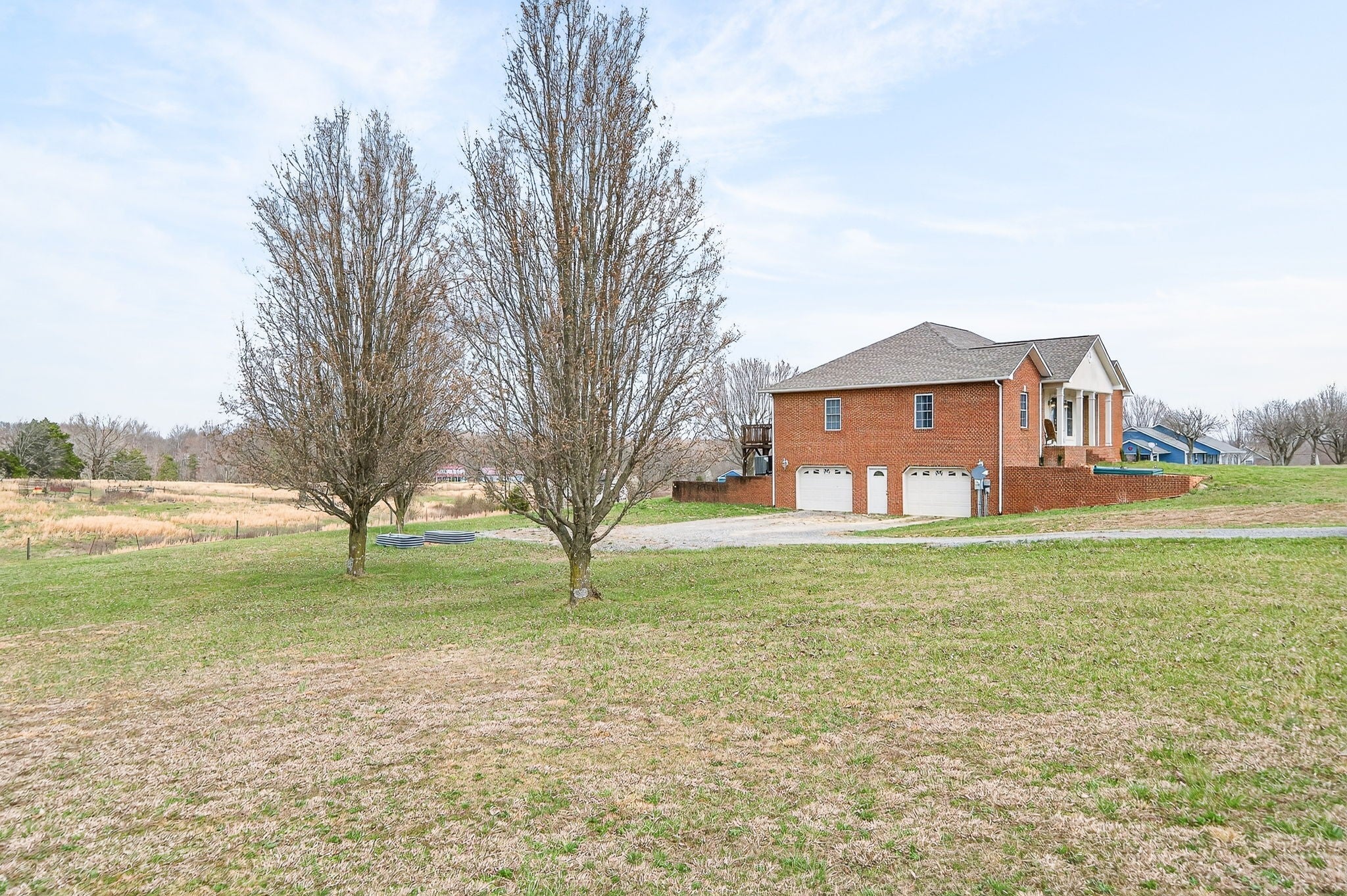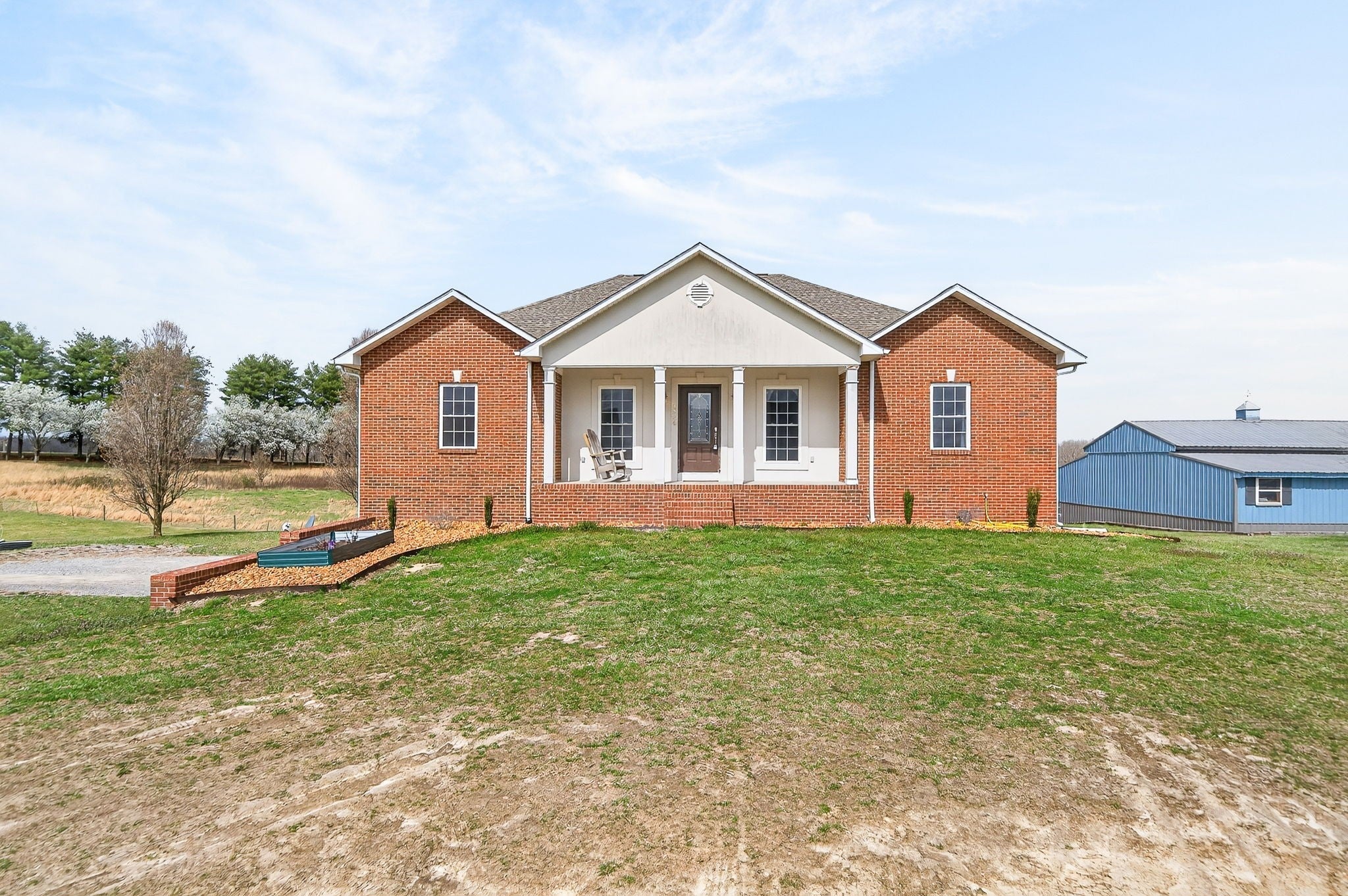 Step into this expansive 2900+ sq. ft. all brick residence, situated on 1.50 acres that presents beautiful views of the surrounding rolling farmland. Inside, discover three bedrooms, two full baths, and a pretty island kitchen equipped with hardwood floors, a pantry, all appliances, and generous cabinetry + counter space. A cozy fireplace and arched doorways make the living room a warm and inviting space. The primary suite offers a walk-in closet with the primary bath featuring dual sinks & relaxing jet tub. Privacy is ensured through a thoughtful split bedroom plan. The finished lower level encompasses a family room with a fireplace, pretty crafted wood ceilings, a versatile bonus room offering multiple possibilities & a full bathroom. Conveniently located just minutes to Cookeville or Baxter, this property also boasts a newer gas tankless water heater, an oversized garage perfect for extra storage, an exterior storage building and a charming covered front porch. Come and see soon! Tankless gas water heater 2025. Roof and HVAC per seller is year 2019. Immediate possession and no HOA dues.