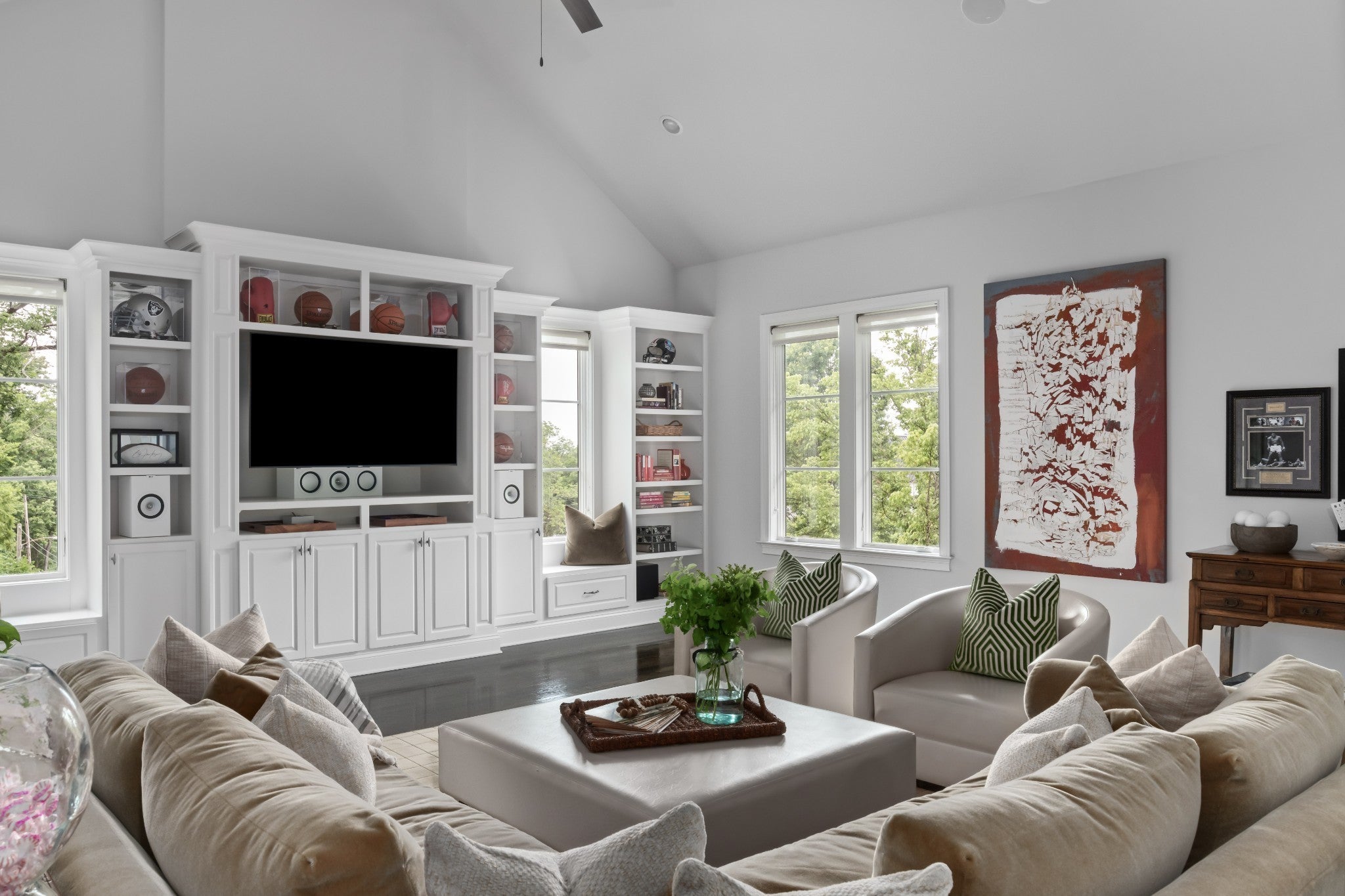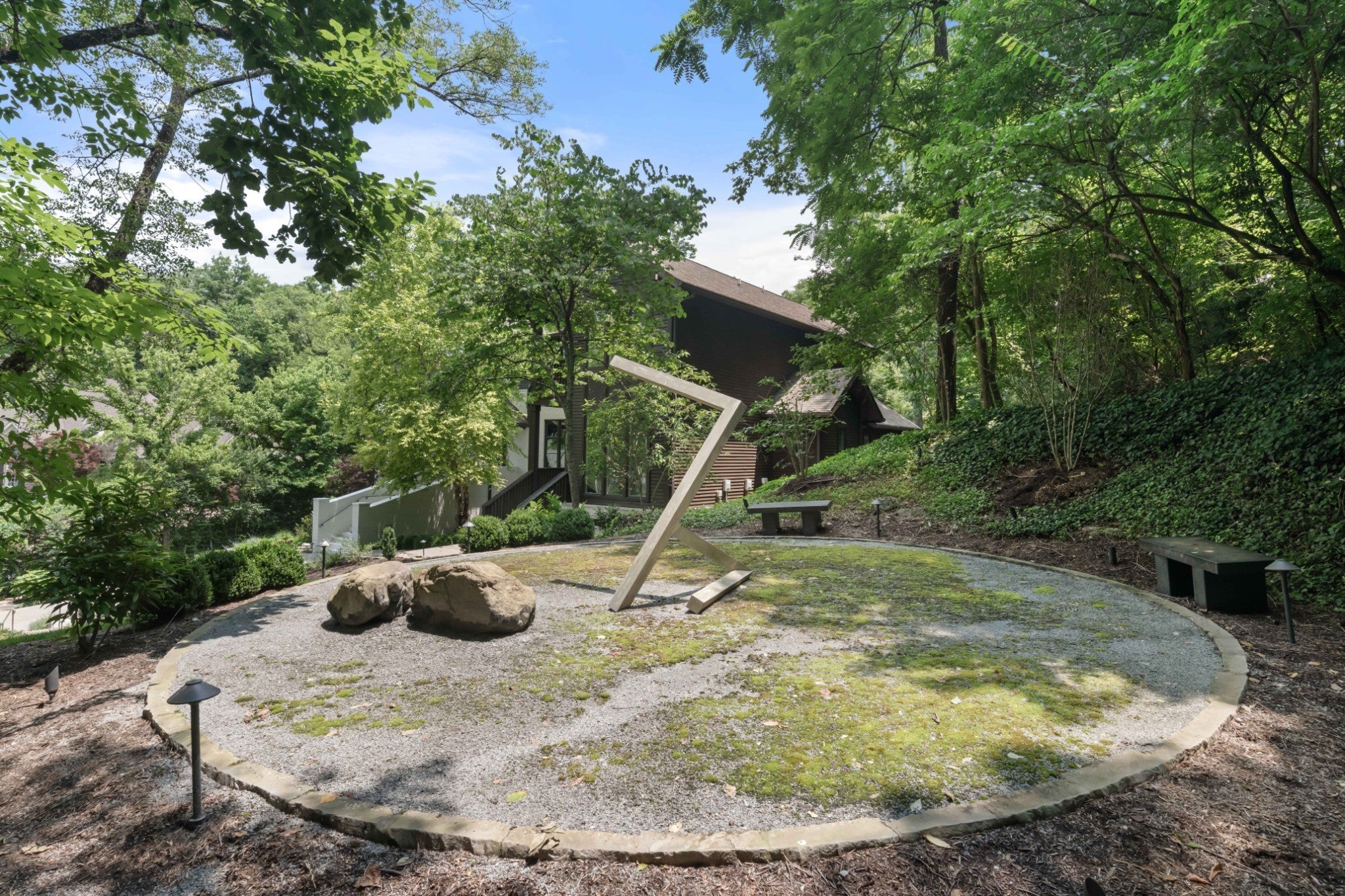Tucked in a peaceful cul-de-sac in coveted Green Hills, this home is a your oasis in Nashville, a living narrative of grace, intention, and elevated Southern living. Step inside and let the natural light lead you through wide-plank hardwood floors, soaring ceilings, and warm, open spaces. A main-level office offers a quiet escape while a breezy upstairs loft provides the perfect flex space for reading, relaxing, or play. The main floor primary suite offers serenity & seclusion, with quiet elegance and spa-inspired finishes. But the story takes its most inspired turn downstairs where artistry and utility intertwine. First, step into the speakeasy and temperature controlled wine cellar, where a striking root sculputre—“Rooted in Connection”—anchors the space, a space made not just for tasting with friends but for telling stories and creating memories that will last a lifetime. Steps away, discover a hidden treasure: a custom-designed closet/dressing room. This boutique-inspired space offers both function & fantasy—a sanctuary for curated collections, seasonal wardrobe changes, or private reflection. Also on this level, you’ll find a state-of-the-art golf simulator, and easy access to the 3-car garage. In the main living room stands Jacob’s Ladder—a monumental 700-pound root sculpture from the Osage Orange Tree, revered as the hardest wood in North America. It’s more than a piece of art—it’s a spiritual statement, anchoring the home in reflection, elevation, and strength. Outside, the magic continues across 1.14 acres of landscaped grounds—lush, private, and designed for everything from peaceful mornings to spirited evening gatherings beneath Tennessee skies. In a city where life is lived like a song, 3530 Trimble Court is a rare composition of architectural beauty, emotional resonance, and intentional living. It’s not just a home. It’s the beginning of your next chapter.