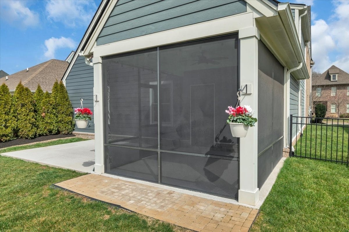 Backs to Open Green Space in Ladd Park + Main-Level Living. Move-in ready with screened porch. Feels like new construction without the wait. A brand-new 30-year architectural shingle roof (May 2025) tops off a long list of recent improvements. The freshly painted interior features custom built-ins and closets by Tailored Living Nashville in the entryway, pantry, coat closet, laundry room, primary bedroom, and upstairs guest room, offering exceptional storage and organization. The home is enhanced with all new light fixtures and ceiling fans, elegant window treatments throughout, and a whole-home speaker system with VSSL in the kitchen, patio, and bonus room. The kitchen is equipped with new refrigerator and dishwasher, and the washer and dryer convey with the home. Outdoor living is just as impressive with a custom screened porch featuring Hunter Douglas shades, a pebble all-weather floor, and an expanded concrete patio area perfect for entertaining. The 4-foot black iron fence and fresh landscaping complete the beautifully maintained exterior. Enjoy added privacy and a scenic backdrop as the home backs to a sports field/common area rather than directly to another home, providing open views and additional green space without the upkeep. Additional features include dual HVAC systems (gas downstairs, electric upstairs) and a garage racking system for optimal storage. This truly move-in-ready home offers thoughtful upgrades, immaculate condition, and exceptional outdoor living. Floor plan, Room dimensions and square footage taken digitally and buyer to verify.