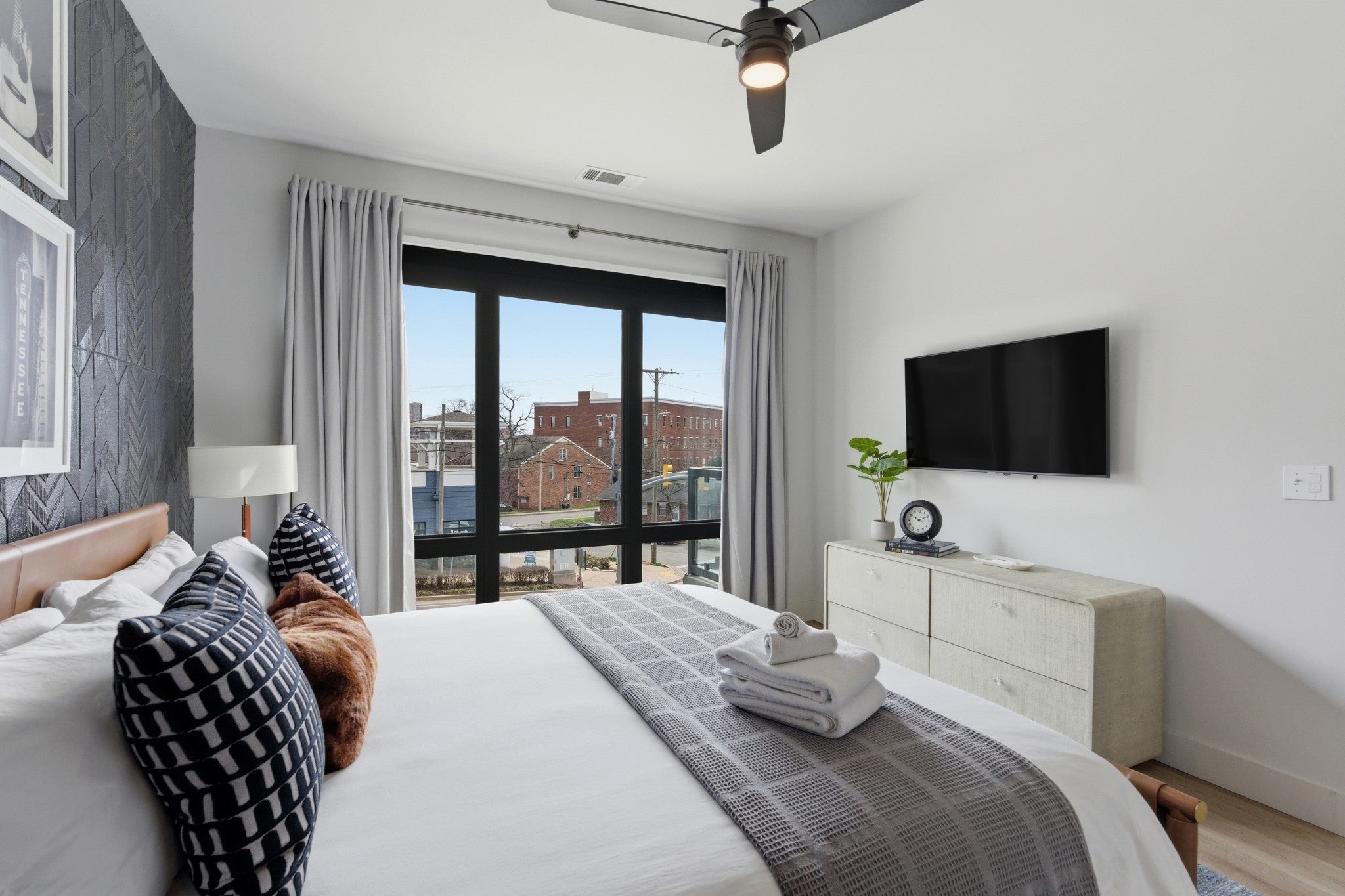 Welcome to Odyssey at the Park, a stunning condominium in Nashville’s highly desirable West End neighborhood. This fully furnished 2-bedroom, 2-bath residence offers the perfect blend of luxury, comfort, and convenience. Professionally furnished and thoughtfully designed, the unit features high-end furnishings and a stylish, move-in-ready living space. One of only four units in the building with a rare wraparound balcony, this home is filled with natural light. For added privacy and comfort, electric blinds throughout the unit can be lowered with the touch of a button. Ideally positioned on the second floor—on the same level as the building’s amenities—enjoy convenient access to the parking garage, fitness center, and pool. A reserved parking space is located just a short, direct path from the unit’s front door, allowing easy entry without the need for stairs or an elevator. Just around the corner from Centennial Park and within close reach of Vanderbilt University, major medical centers, dining, and shopping, the location offers exceptional convenience in the heart of West End. Only two blocks away, The Local hosts live performances from Nashville’s rising artists and songwriters. Nearby attractions include The Mall at Green Hills, Belmont Mansion, and the iconic Bluebird Cafe, while downtown Nashville and the stadium are only a short ride away. Situated in one of Nashville’s premier non-owner-occupied (NOO) short-term rental (STR) communities, Odyssey at the Park offers exceptional flexibility for personal use or investment, with many neighboring units successfully operating as Airbnb and VRBO rentals. Experience the ideal combination of neighborhood charm and city living in one of Nashville’s most sought-after locations. Your West End home at Odyssey at the Park is ready and waiting. *Please see the link to the 3D tour and interactive floor plan in the media section.