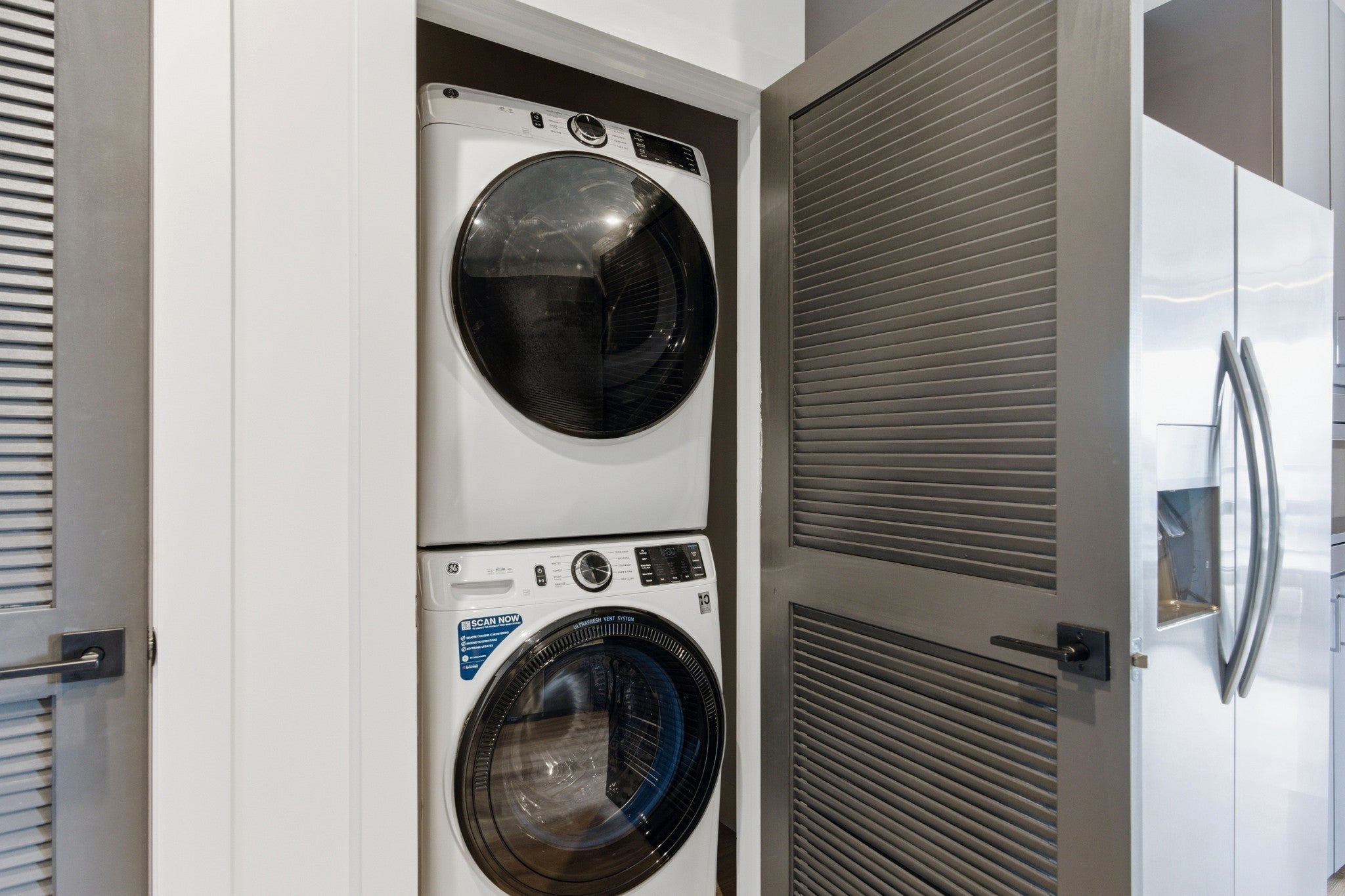 - Built-In Electric Oven, Built-In Electric Range, Dishwasher, Disposal, Dryer, Freezer, Ice Maker, Microwave, Refrigerator, Stainless Steel Appliance(s), Washer