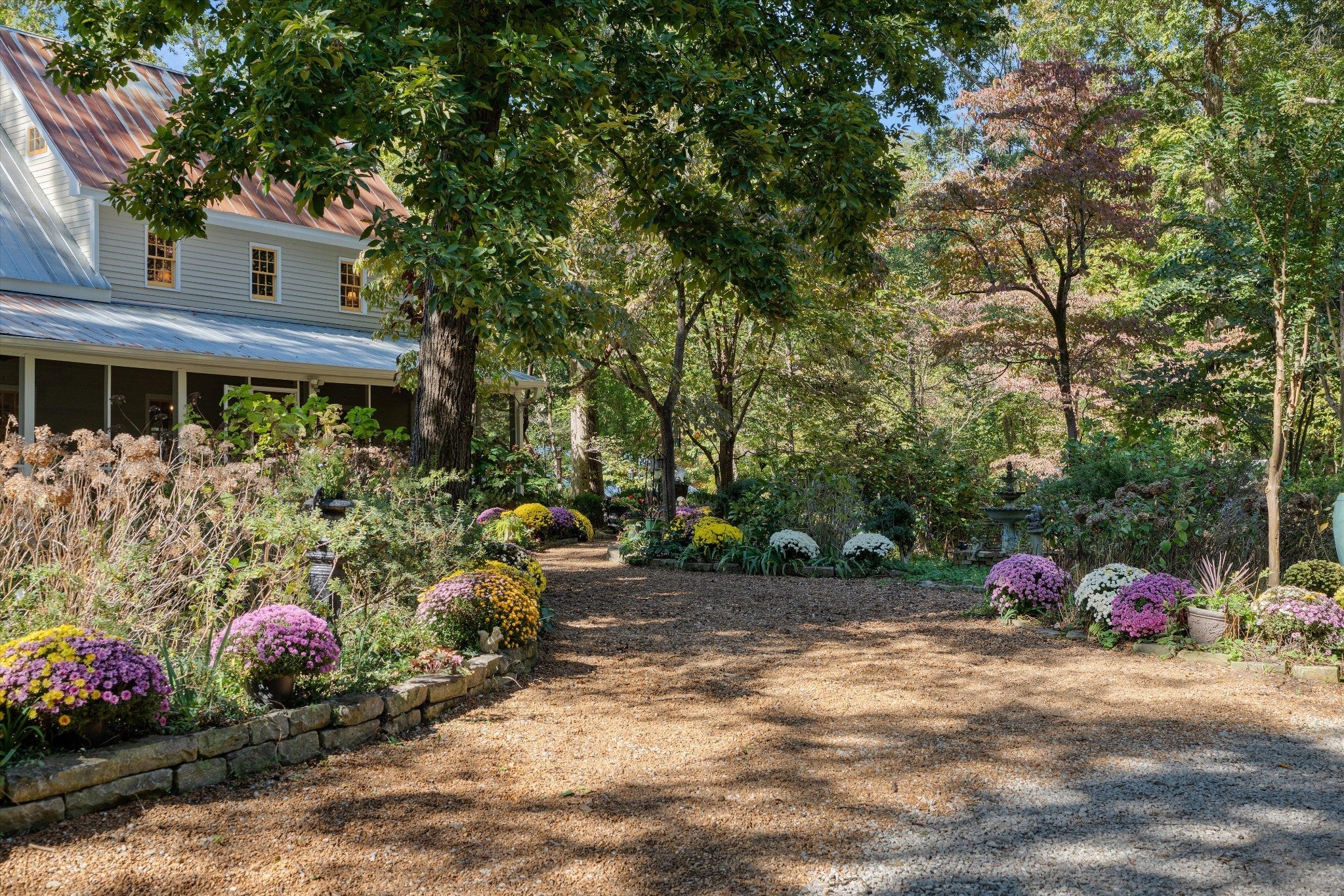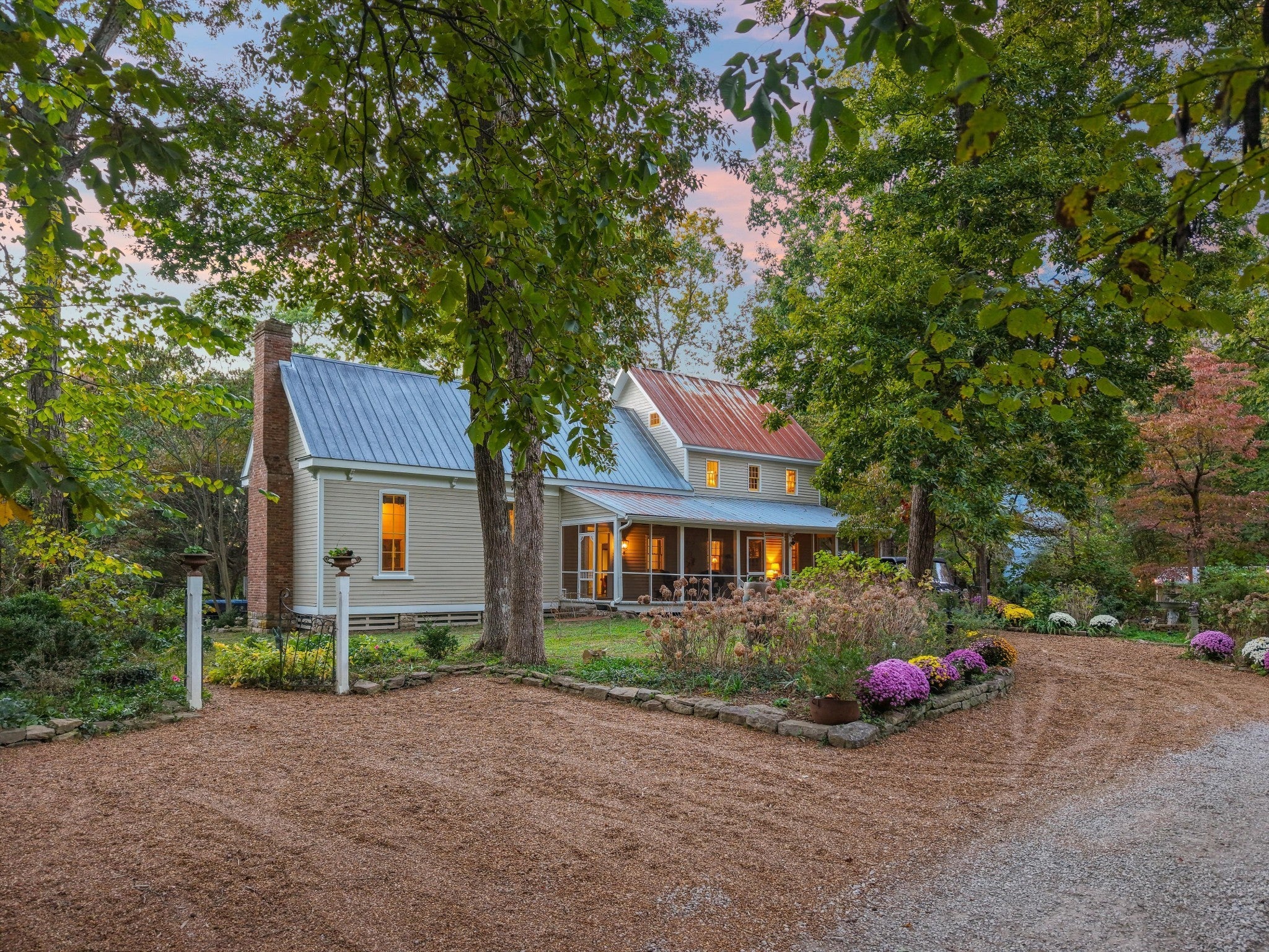Over 51 acres with two 5-6 bedroom preliminary perc sites, plentiful gardens, outbuildings, and the most charming and timeless storybook Farmhouse located in one of two ideal clearings. The over 2300-square-foot Farmhouse gives a nod to the early 1900s—yet was originally built in 1978 with additions in 1985 and 2002. It's rooted in history and encircled by lush gardens, mature hardwoods, and magically curated gathering areas. It features wrap-around porches and a dramatic living room with soaring ceilings and a Rumford fireplace. It's a place where one could imagine the likes of Truman Capote, Robert Penn Warren, and Alice Walker trading stories around the fire, sipping a fine whiskey. A second and third fireplace anchor both the kitchen and the home's original "summer kitchen," now reimagined as an intimate speakeasy and wine room. Down a short hallway lies the powder room and an office that opens to the back porch and hot tub. Upstairs, you find the main bedroom and bath, a charming library, and a loft with closets that doubles as a second bedroom. Additional outbuildings include a 30' x 46' workshop with roll-up doors, a loft, and a 400-amp panel in both the workshop and home, along with a 240-volt EV plug. An additional hobby room is located near the firepit, while another storage shed with antique doors houses garden equipment. Trails weave through the acreage, one leading down the holler to a picnic table by the creek. Beyond its existing magic, the property offers remarkable potential—ideal for a family compound, guest retreat, multi-generational living, or a private grand estate. The possibilities are endless.