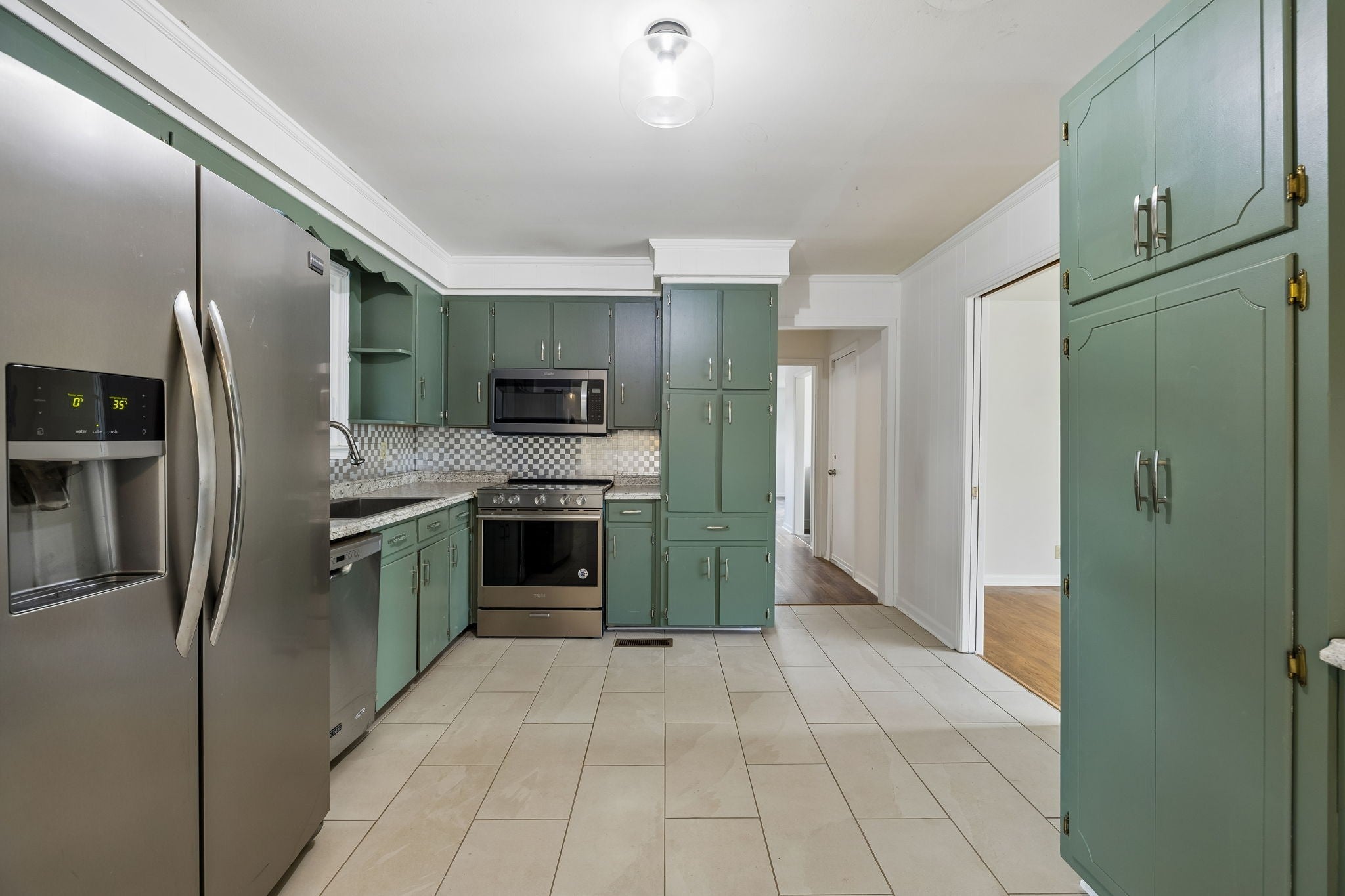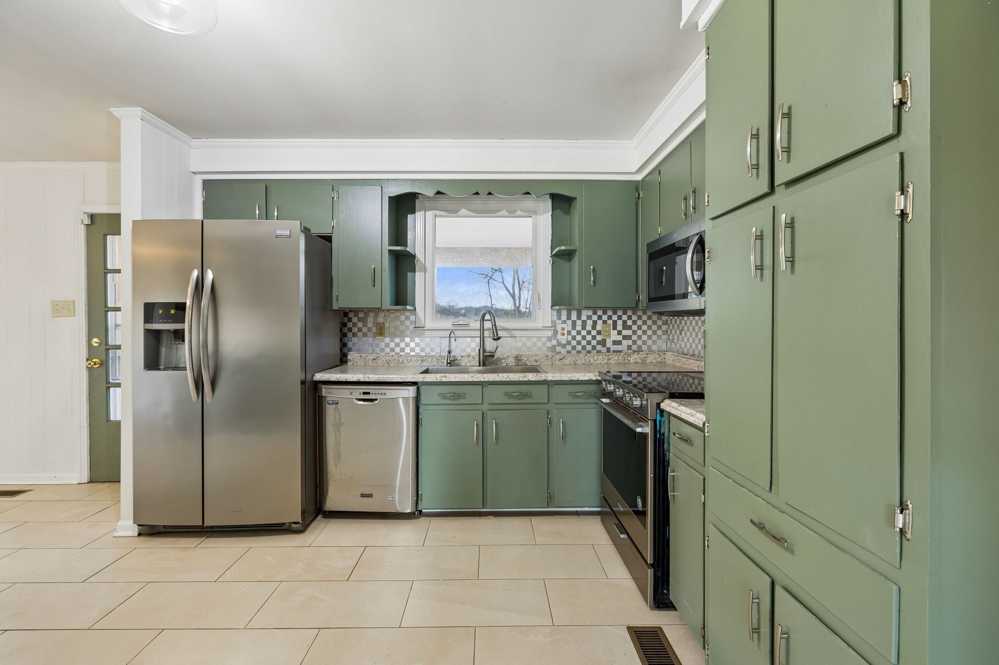 - Electric Oven, Electric Range, Dishwasher, Microwave, Refrigerator, Stainless Steel Appliance(s)