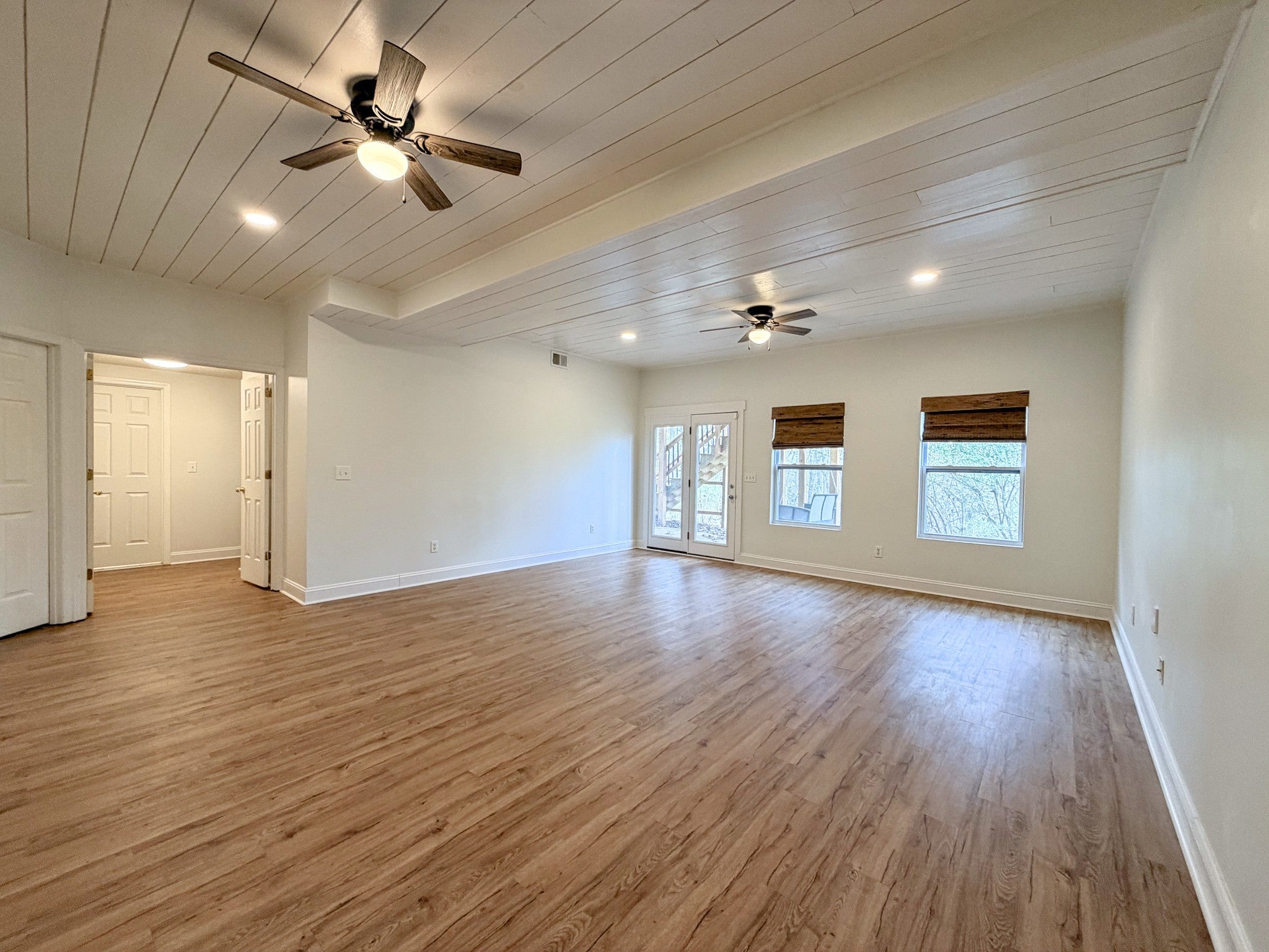This spacious 4-bedroom, 3-bath home offers an exceptional layout designed for comfort, flexibility, and modern living. Featuring two primary suites, it’s perfect for households needing extra privacy or multi-generational living. The main level primary suite includes two closets, a double sink vanity, and a well-appointed bath, while the downstairs suite offers a spa-like retreat with walk-in closets, double vanities, a soaking tub, and a separate shower. A versatile flex room can easily serve as a 5th bedroom, home office, or creative space, giving you the flexibility to fit your lifestyle. Inside, the home showcases upscale fixtures and finishes throughout with durable solid-surface flooring that adds both style and easy maintenance. The open living area flows seamlessly into a beautiful kitchen with a breakfast island, perfect for gathering or casual dining, along with a dedicated dining room for entertaining. A huge bonus room downstairs provides even more living space for a media room, game room, or second living area. Step outside and enjoy the peaceful setting with a large outdoor deck overlooking a wooded backyard, offering privacy and a relaxing place to unwind. The walk-out patio downstairs adds another outdoor living option, perfect for enjoying great spring days. Go for a swim on those hot summer days at the community pool. Additional conveniences include laundry hookups and a two-car garage.