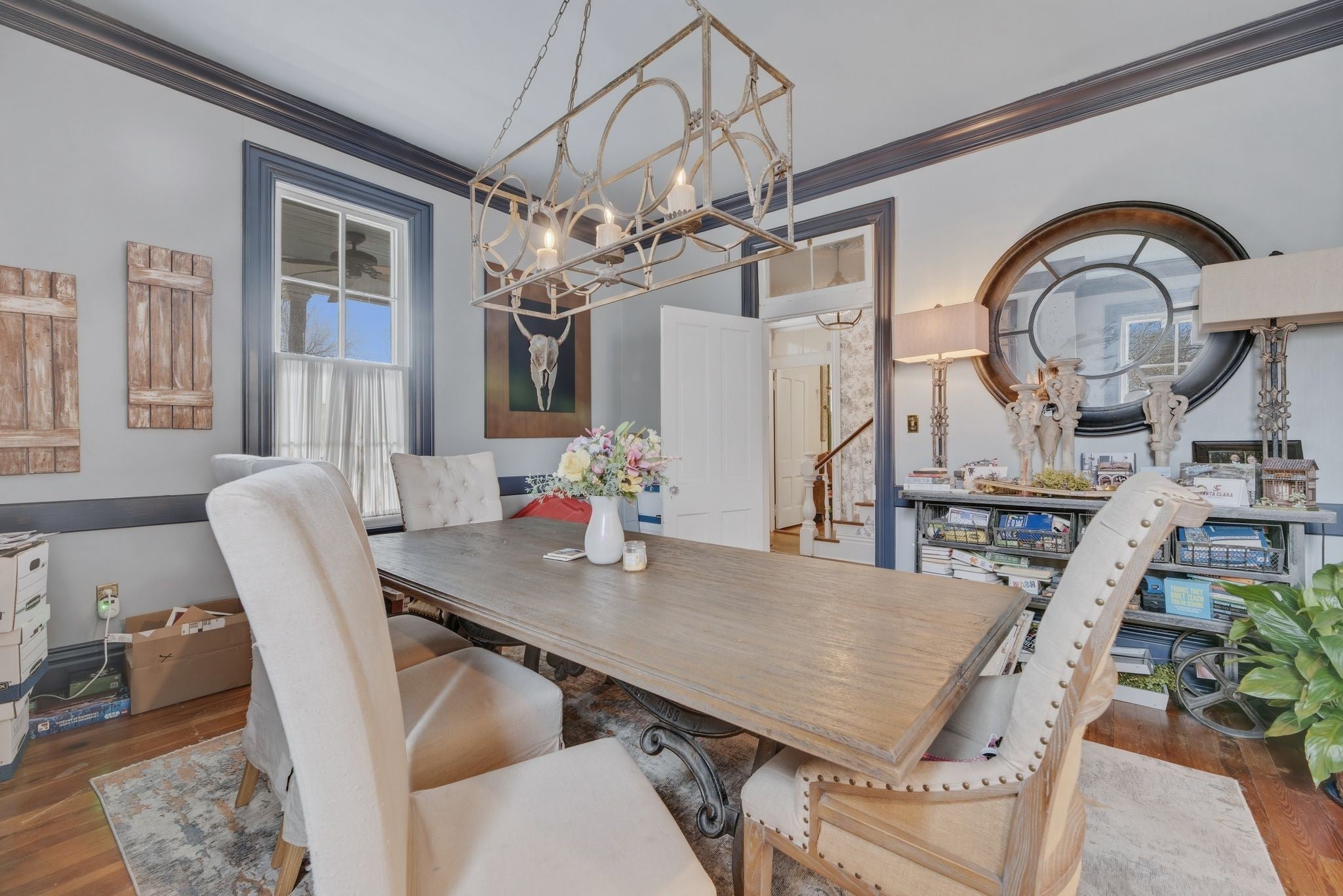 Welcome to the Kirkpatrick Estate — a historic Franklin home that clearly decided life was too short to be boring. Located just one block from the heart of Downtown Franklin and offered fully furnished as a 1-year rental, this 3-bedroom, 2.5-bath home mixes timeless character with the kind of personality most houses only dream about. Inside you’ll find tall ceilings, original 1800s trim, bold wallpaper, and themed rooms that make every corner feel like it has a story to tell. It’s the kind of place where guests walk in and immediately say, “Wait… this house is awesome.” The chef’s kitchen features a stunning Lacanche French range, which basically means if you can’t cook well on it, at least you’ll look impressive trying. The living spaces flow easily for everyday life or entertaining friends who conveniently decided to “stop by” after hearing where you live. Step outside and you’re less than a 5-minute walk to the restaurants, shops, and energy of Downtown Franklin. Close enough to enjoy it whenever you want, but just far enough away to retreat back to your quiet street. The private backyard is ready for relaxing evenings with a spa and Green Egg BBQ, and the home is wired for a generator—because historic charm doesn’t mean giving up modern practicality. And just when you think you’ve seen it all… downstairs you’ll find a Chicago-style speakeasy themed basement, the perfect spot for entertaining, unwinding, or pretending you’re running a very classy 1920s operation. Homes like this rarely come available — especially this close to downtown Franklin. Once you see it, you’ll understand why people don’t want to leave.
