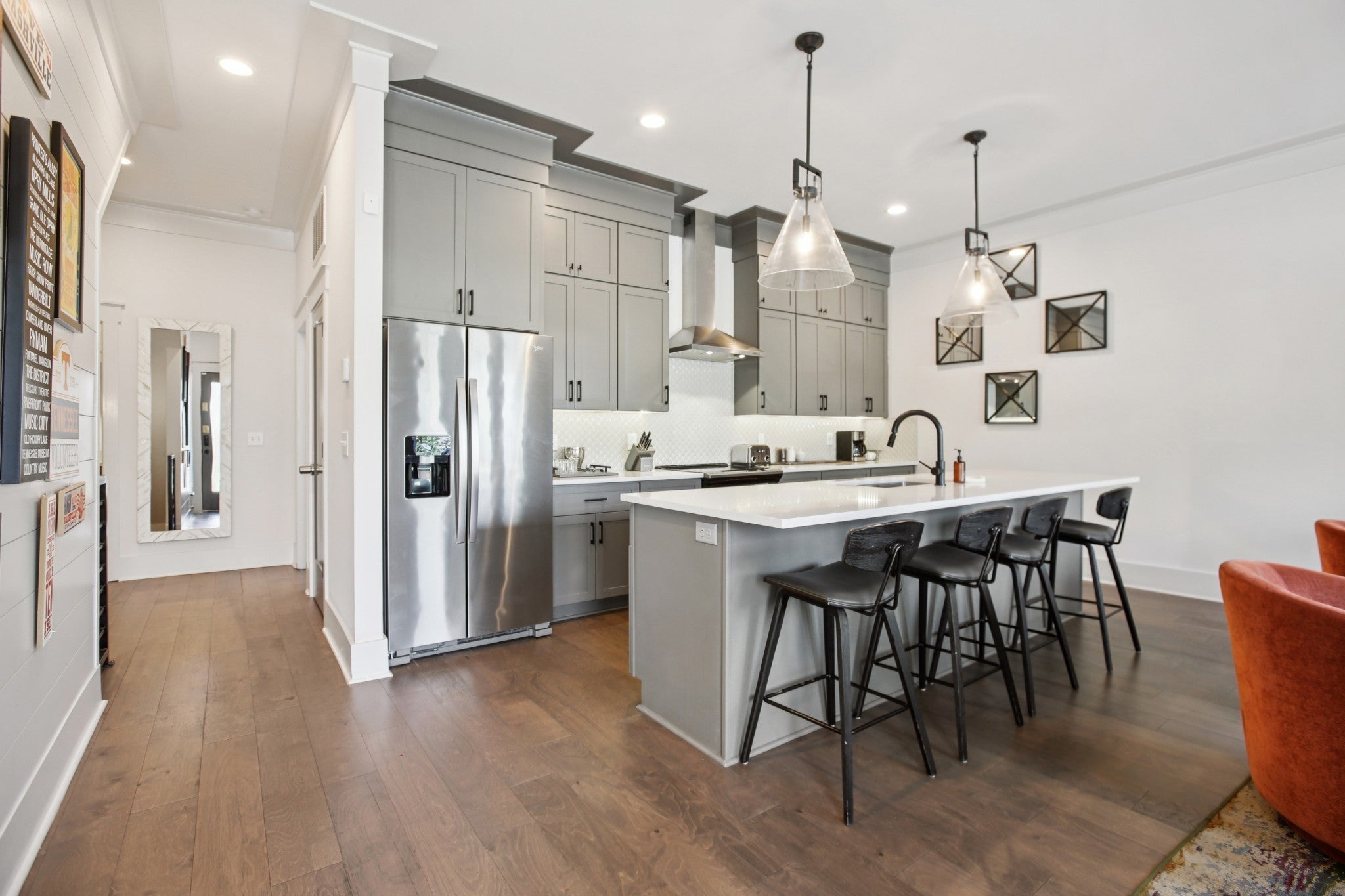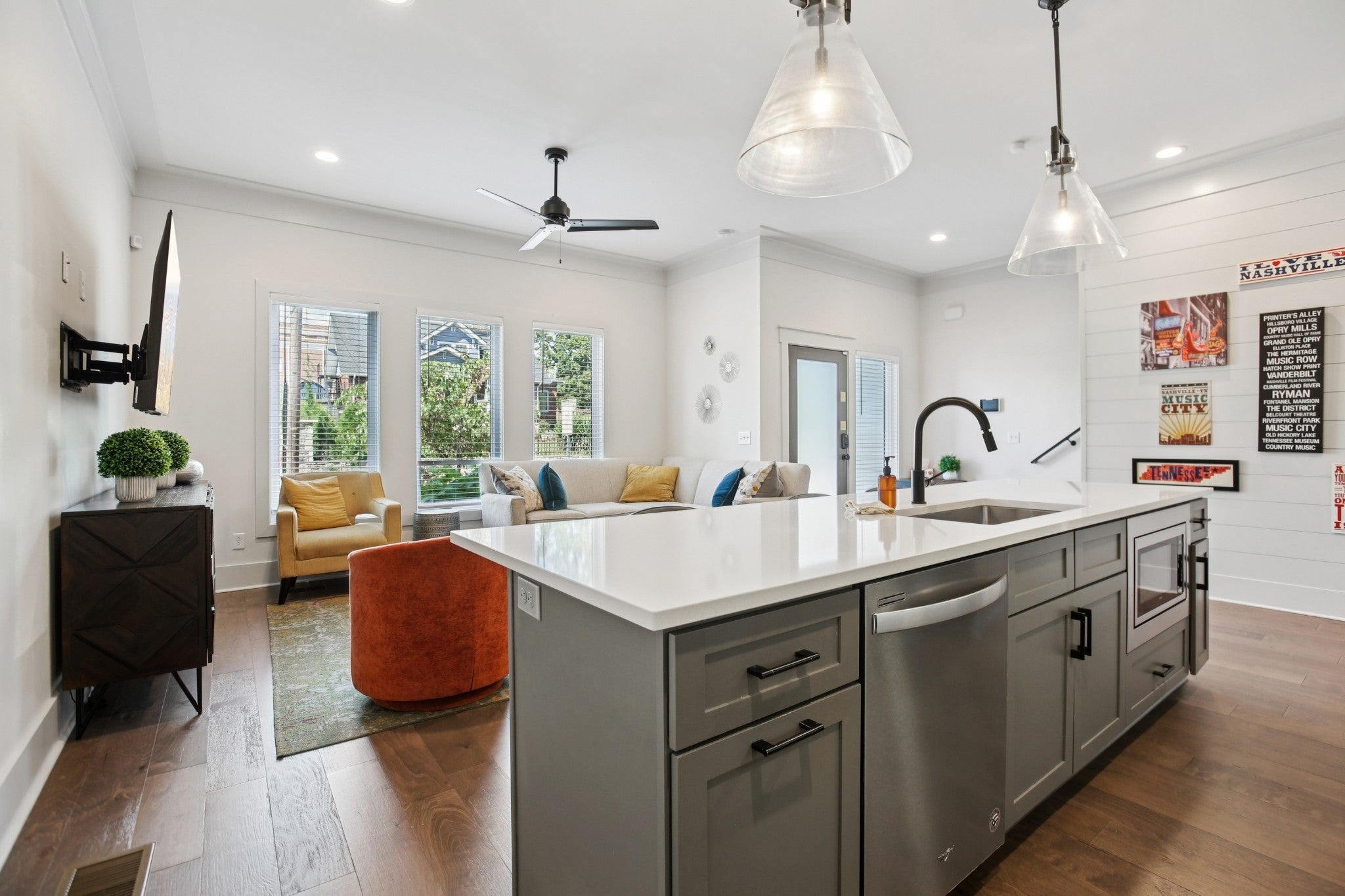 Unlock an exceptional investment opportunity with this turnkey, non-owner occupied short-term rental (NOO-STR) in the heart of walkable East Nashville. This premier asset is projected to generate approximately $85,000+ in gross rental revenue for 2026, a pro forma backed by 30+ current bookings and strong forward projections. Meticulously crafted by the reputable Tudor Building Group, this stunning townhome impresses with a modern California-contemporary aesthetic. The open-concept floor plan is defined by soaring 10-foot ceilings and hardwood flooring, creating a sophisticated and inviting atmosphere. The chef’s dream kitchen boasts a dual-fuel range, premium appliances, an oversized quartz island, and an elegant pearl tile backsplash. The thoughtful layout includes multiple spacious bedrooms and a luxurious primary suite. This is a truly turnkey sale, including over $40,000 in designer furniture and decor, ready to generate income from day one. As a highly-rated, managed Airbnb, the investment is on auto-pilot for a seamless transition. The prime location in the vibrant Greenwood area means all neighborhood amenities are within walking distance, including Publix, Starbucks, Chase Bank, and East Nashville's acclaimed dining and nightlife. Downtown Nashville is only 4 miles away. Benefit from ideal investment zoning, it is eligible for a non-owner occupied STR permit, a designation that is increasingly rare. A proven rental history and high-efficiency systems complete the package, positioning this as a premier asset for any investment portfolio.