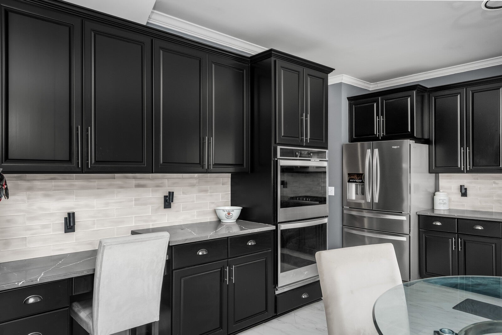 - Built-In Electric Oven, Double Oven, Built-In Gas Range, Refrigerator, Stainless Steel Appliance(s)