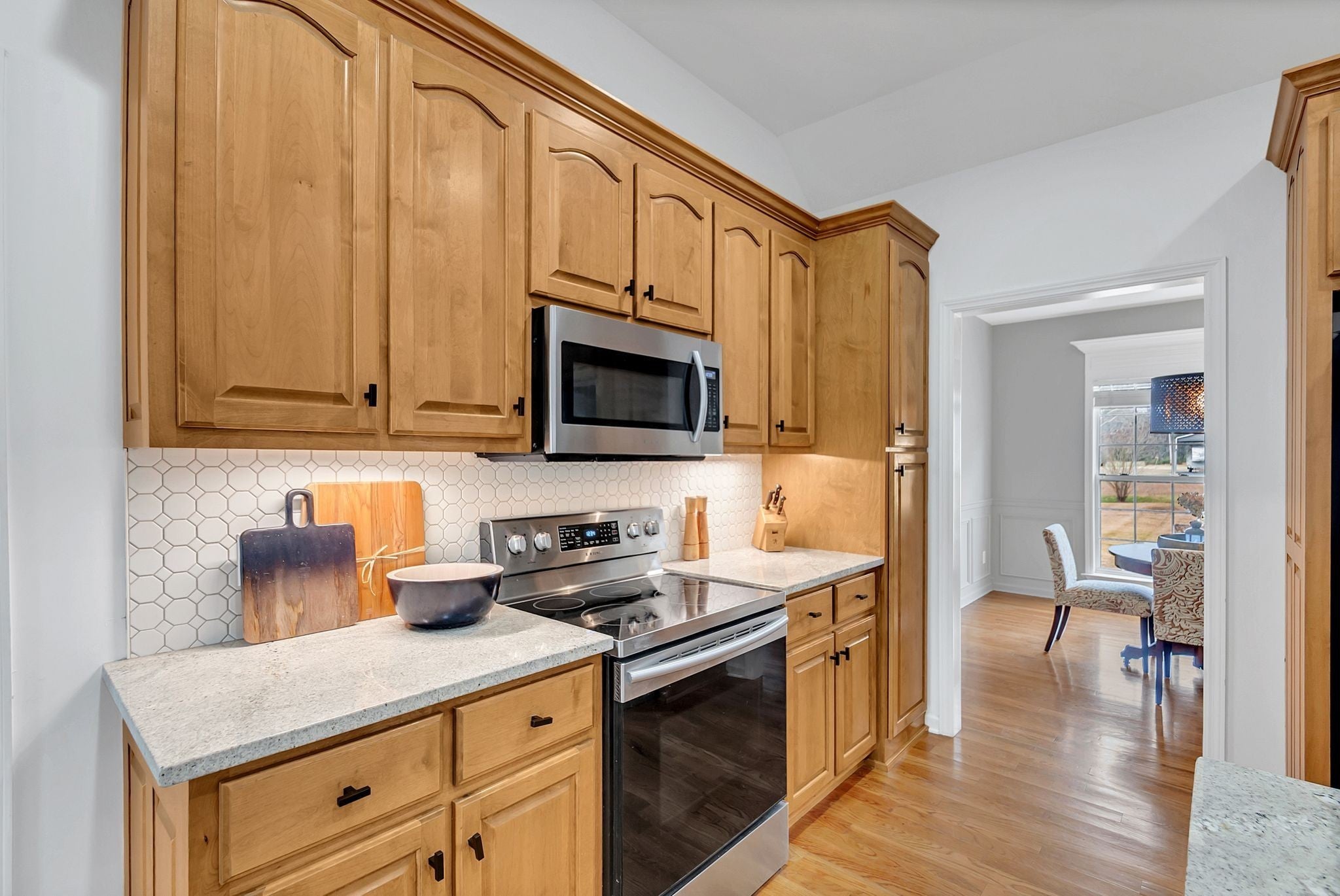 - Built-In Electric Oven, Electric Range, Dishwasher, Disposal, ENERGY STAR Qualified Appliances, Microwave, Refrigerator, Stainless Steel Appliance(s)