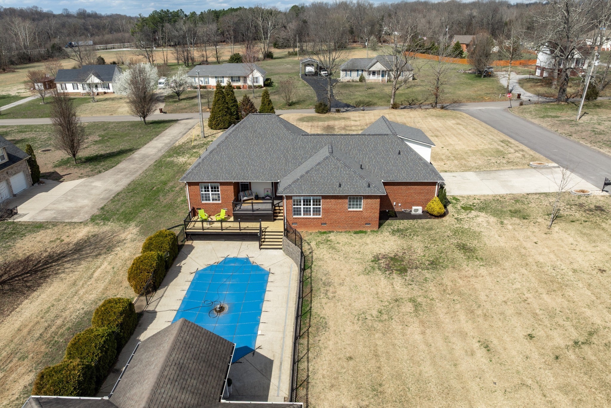 Custom All-Brick Home on 1.25 Acres with Resort-Style Saltwater Pool nestled in the serene countryside of Spring Hill, Tennessee—just moments from top schools, upscale boutiques, renowned restaurants, & lively cultural offerings—embodies the essence of refined family living. Luxury & practicality unite in a peaceful retreat that feels removed from everyday living, yet just minutes to Middle Tennessee’s premier destinations. Begin each day with the tranquil ritual of coffee on the classic rocking-chair front porch. Inside, sunlit rooms of superior craftsmanship with high ceilings, lustrous hardwood floors, fresh designer paint, modern lighting, & a welcoming fireplace create an ambiance of timeless warmth & sophisticated ease. Your private backyard sanctuary includes a stunning sports-style saltwater pool designed for joyful family moments & refined relaxation. Crystal waters dance under elegant fountains; shallow ends welcome young swimmers, curved entry stairs add grace, and intimate cove pockets encourage play, laughter, & leisurely floats. A low-maintenance saltwater system keeps it pristine effortlessly. The updated double-tiered deck elegantly frames this oasis, offering the perfect stage for grand summer parties, special celebrations, cozy gatherings, or starry evenings of pure serenity. Lush gardens highlight a spectacular hydrangea tree in seasonal splendor, paired with premium, ornamental shrubs that provide lasting beauty & privacy with minimal upkeep. A premier luxury highlight is the separate all-brick pool house/garage with 884 sq.ft. of heated & cooled, which features soaring ceilings, high-speed internet wiring, and a practical roll-up garage door. Already plumbed for in-floor radiant heating, this versatile space invites customization for a private gym, artisan workshop, or climate-controlled vehicle storage. This rare estate offers outstanding outdoor entertaining areas with custom indoor elegance and beauty. Don't wait. Schedule your tour today!