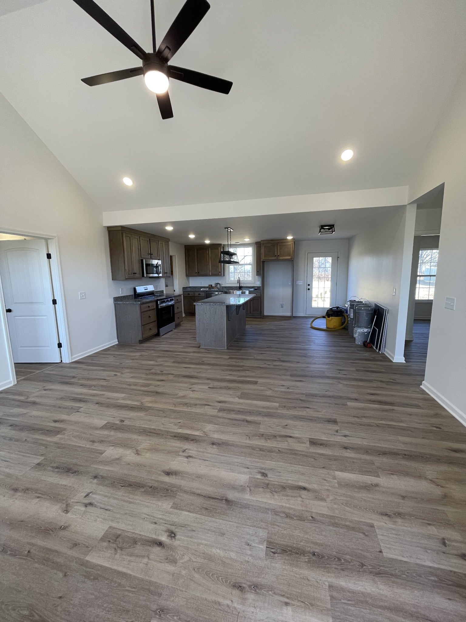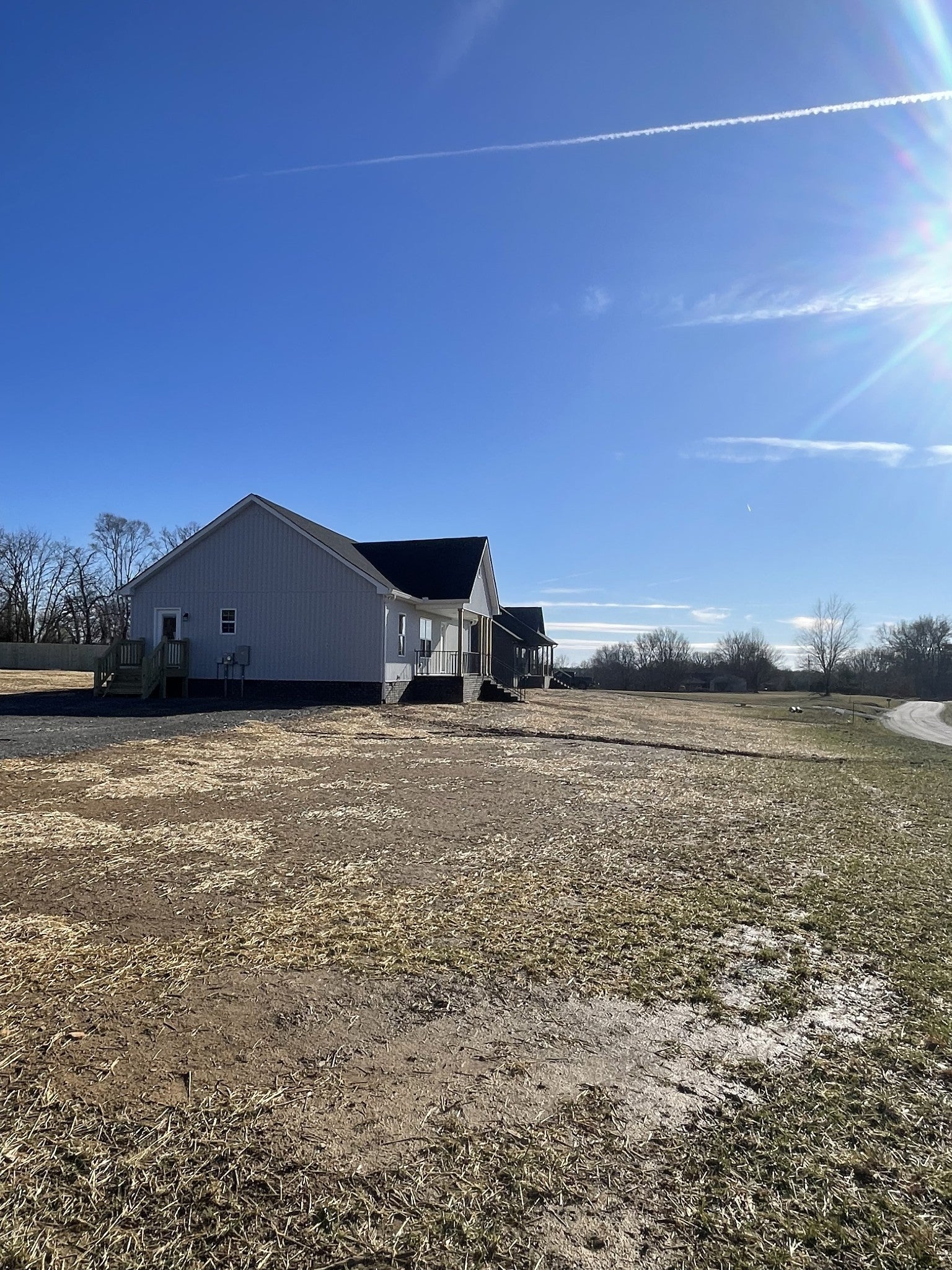 Beautiful New Construction Ranch on Over an Acre. Welcome to this brand - new ranch - stye home offering comfort, quality and modern upgrades throughout. this 3 - bedroom, 2 - bath home features an open and inviting layout with a cathedral ceiling in the living room and a stunning quad tray ceiling in the master bedroom. The kitchen and bathrooms boast custom cabinetry, granite countertops, and stainless steel appliances, while luxury vinyl flooring flows seamlessly throughout the entire home. Large closets throughout. enjoy outdoor living with a spacious back deck, a covered front porch perfect for relaxing, and a detached garage. Situated on 1.09 acres in a peaceful country setting, this home offers privacy while still being conveniently close to town.