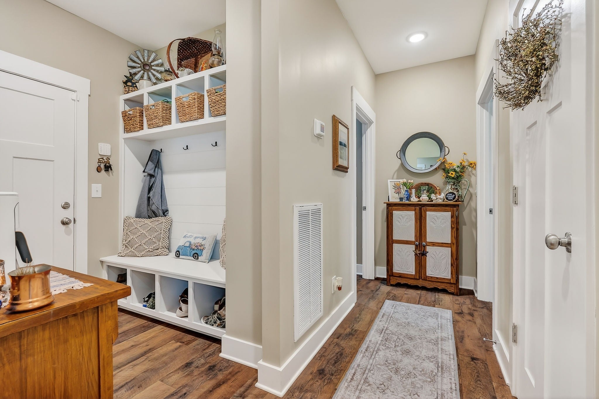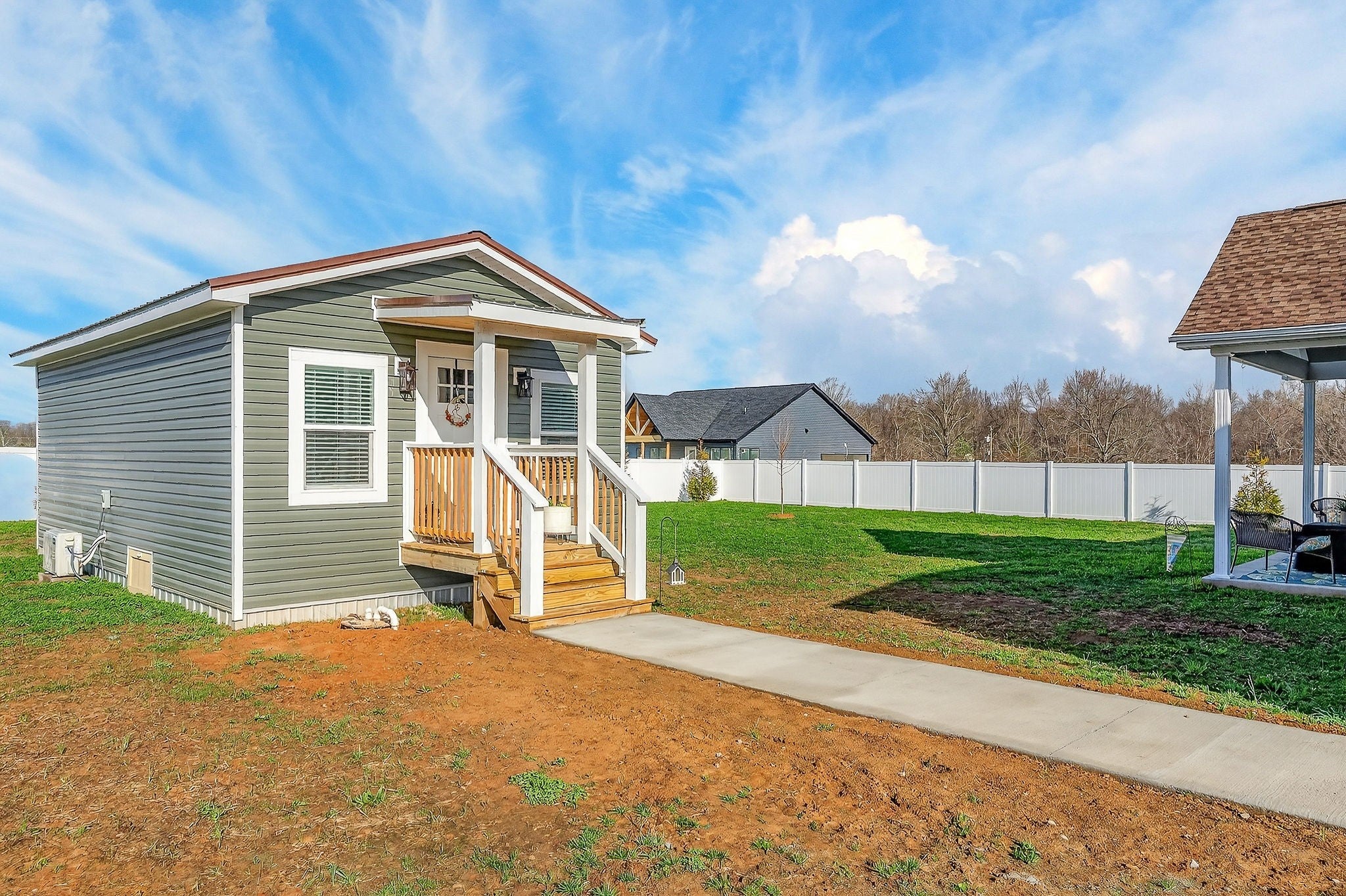 Rare Find! Newly Constructed + Detached Backyard Cottage on Over ½ Acre Properties like this don’t come along often. Built in 2025, this beautiful 3-bedroom, 2-bath home on a slab construction with zero entry, sits on just over half an acre and offers the perfect combination of modern design, custom finishes, and flexible living space. Inside, you’ll find a bright open layout with a spacious vaulted great room. The kitchen was custom designed with both style and function in mind, featuring upgraded stainless steel appliances, a large island with great storage, tile backsplash, beautiful quartz countertops, and a generous walk-in pantry. The private primary suite offers a tray ceiling, large walk-in closet, and a well-appointed bath with double vanity, quartz countertops, tile floors, oversized shower, and separate water closet. Additional highlights include a mud area off the garage, large closets throughout, and a spacious laundry room with custom cabinetry and ample folding and hanging space. Step outside and enjoy the covered front porch or relax on the impressive rear porch featuring a vaulted tongue-and-groove wood ceiling and ceiling fan—perfect for entertaining or quiet evenings at home. The level lot includes beautiful new landscaping, concrete driveway and sidewalks, and a vinyl privacy-fenced backyard. One of the standout features of this1407 sq. ft. home is the charming detached backyard cottage (adding an additional 256 sq. ft.) offering a spacious main room, full bath, walk-in closet, and additional rear storage. Whether you need space for guests, in-laws, a private office, or a creative studio, this flexible space opens up countless possibilities. Conveniently located near Bridgestone and ideally situated between McMinnville and Manchester, this home offers peaceful living with easy access to nearby employers, dining, and shopping. Newly constructed , custom finishes, and a detached guest cottage.