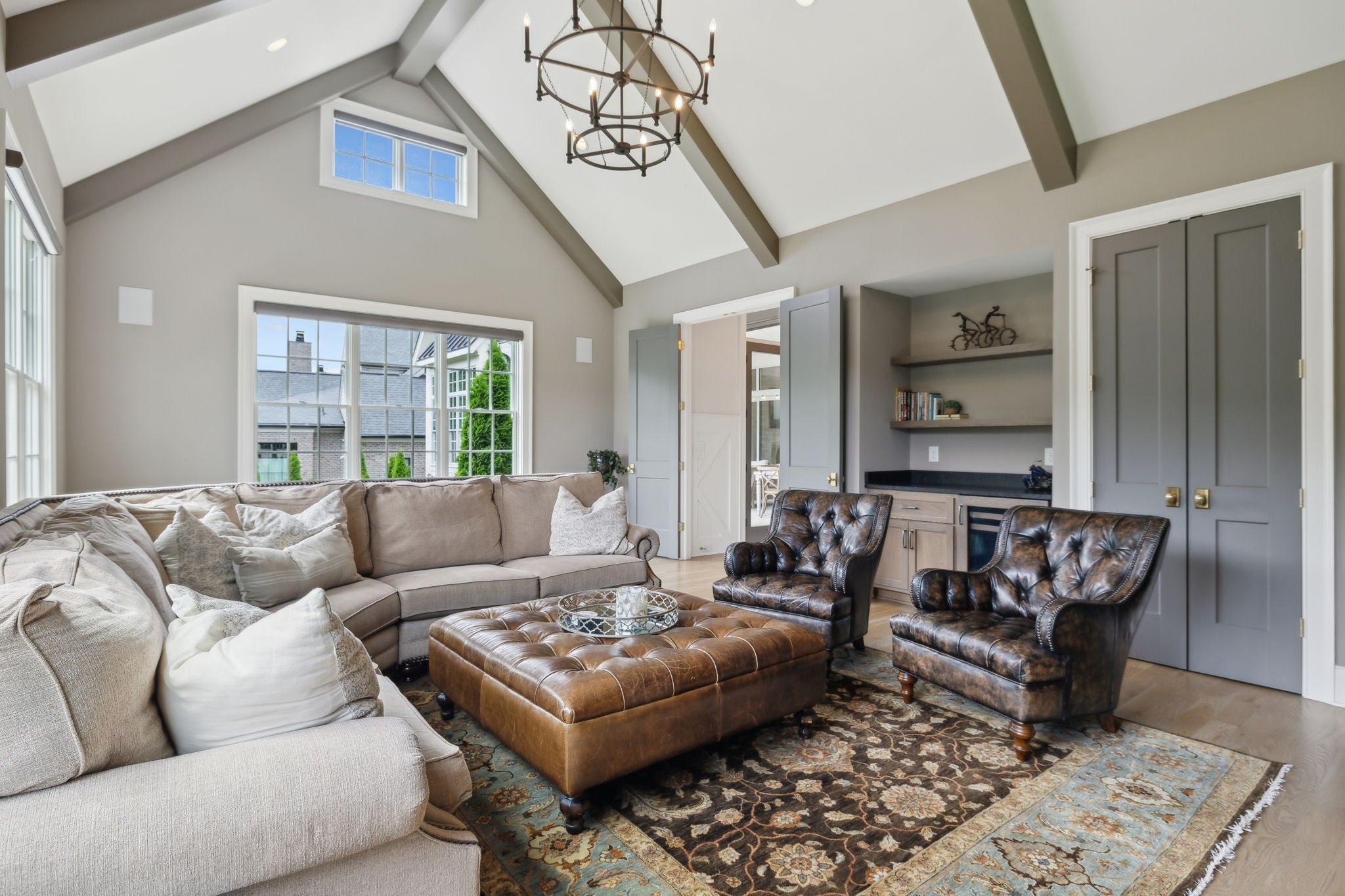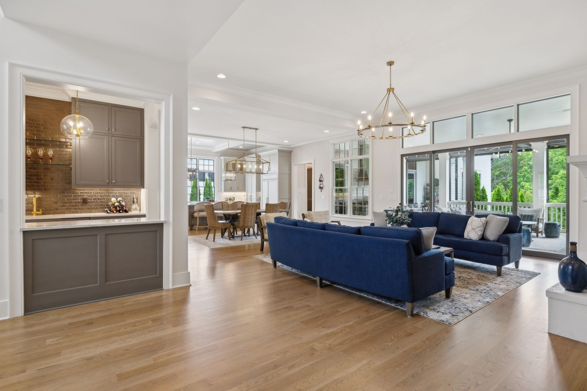 8118 Heirloom Blvd is an elegant custom retreat in The Grove—Middle Tennessee’s premier gated golf and luxury lifestyle community. Built by Davis Properties, this timeless residence blends classic craftsmanship with modern sophistication, offering 5 bedrooms, 5.5 baths, and over 5,500 sq. ft. of refined living space. A dramatic curved staircase sets the stage, leading into light-filled living areas designed for both everyday comfort and sophisticated entertaining. The chef’s kitchen showcases Wolf and Sub-Zero appliances, dual dishwashers, a hidden walk-in pantry, and a butler’s bar with beverage fridge and ice maker—ideal for gatherings of any size. The main-level owner’s suite provides a spa-like retreat with heated floors and elegant finishes, while the main-level bonus room overlooks the private, fenced backyard. Outdoor living is seamlessly integrated with a covered porch, built-in grill, fireplace, and retractable screens, creating the perfect year-round retreat. Life at The Grove includes resort-style amenities: championship golf, a full-service spa, tennis courts, fitness center, equestrian facilities, swimming pools, and curated dining—all just minutes from historic Franklin and Nashville. This luxury home in The Grove offers the ultimate in Middle Tennessee living—sophisticated, private, and thoughtfully designed for both relaxation and entertaining. (Note: Two pool rendering options are included at the end of the photos.)