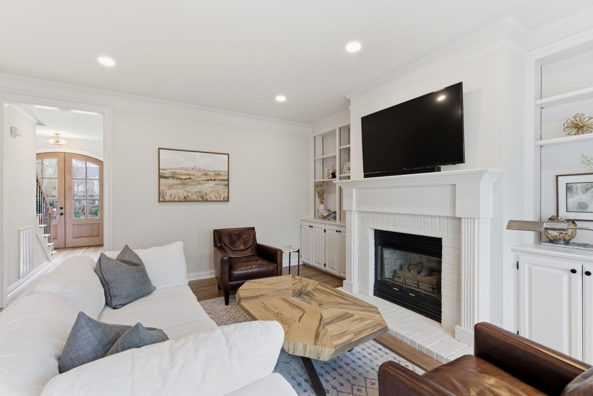 Fully renovated all-brick home in the highly sought-after Forrest Crossing community in Franklin, TN, ideally situated on a quiet cul-de-sac. This move-in-ready 4-bedroom home with a dedicated home office and spacious bonus room offers exceptional functionality, thoughtful design, and high-end upgrades throughout. The brand-new kitchen features marble countertops, tile backsplash, farmhouse sink, gas range, and upgraded stainless steel appliances — seamlessly blending timeless style with modern convenience. Hardwoods run throughout all main living areas and the primary bedroom, adding warmth and continuity. The primary suite features a completely renovated spa-like bath with soaking tub, dual-head tiled shower, and updated fixtures, creating a true retreat. Designer lighting throughout elevates each space with a fresh, curated feel. Exterior highlights include a side-entry garage, back patio ideal for entertaining, and a fenced backyard offering privacy and usable outdoor space. Located just minutes from I-65, Cool Springs Galleria, Historic Downtown Franklin, parks, shopping, and dining, this home delivers the perfect combination of location, layout, and luxury updates in one of Williamson County’s most established neighborhoods. Move-in ready homes in Forrest Crossing with this level of renovation are rare — this is one you don’t want to miss. All major systems are newer. Windows 2019. 1st floor HVAC Fall 2025. 2nd floor HVAC 2024. 3rd floor mini split 2024. Roof is 2024.